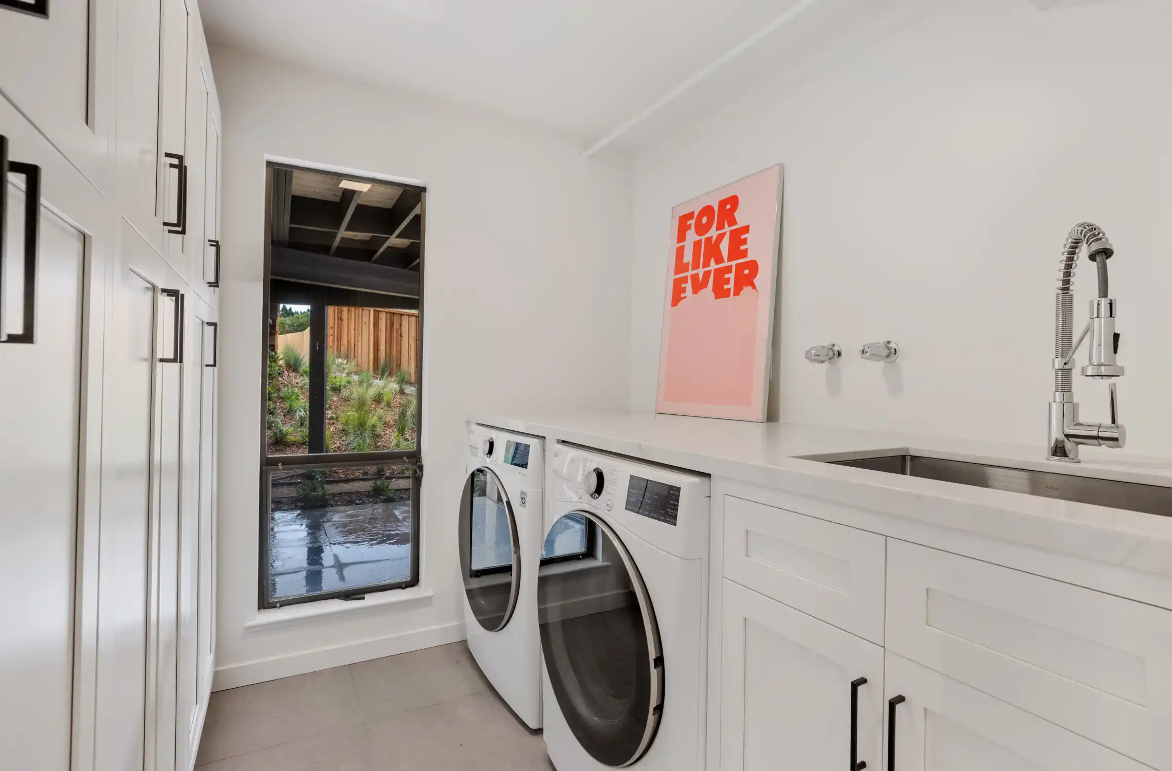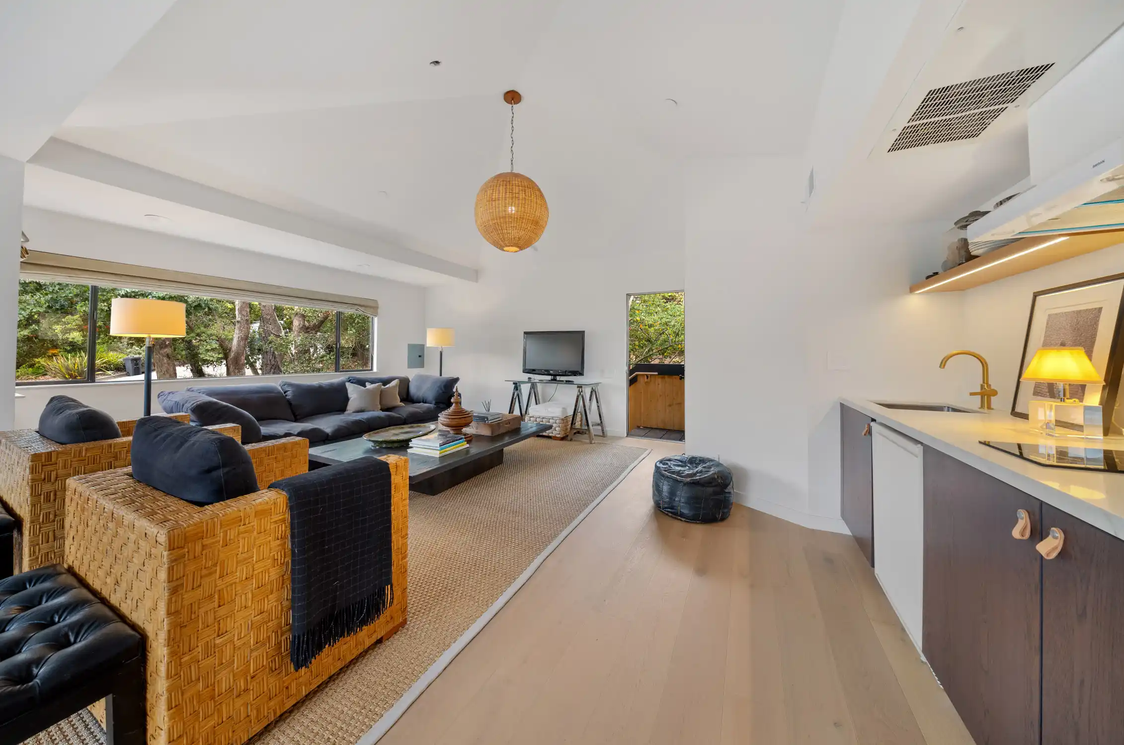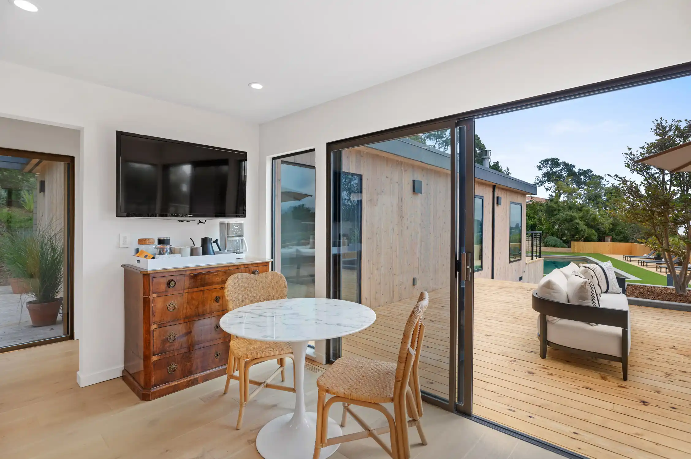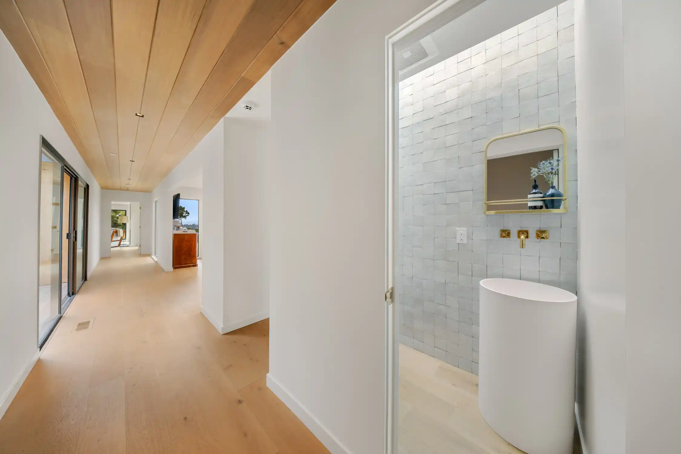 Enriched by a seamless blend of contemporary style and rustic flair, this exceptional renovation epitomizes the pinnacle of luxury living, where breathtaking architectural design and superior finishes merge effortlessly to elevate it to a league of its own.Significantly renovated and completed in 2024, this impressive residence exemplifies meticulous attention to detail and the highest level of craftsmanship, boasting state-of-the-art finishes and an elevated design aesthetic.This extraordinary home is an entertainer's dream, offering unrivaled amenities and seamlessly connected indoor/outdoor living spaces that elevate your lifestyle to unparalleled levels of luxury and relaxation. The expansive private grounds evoke a resort-like ambiance, featuring a stunning pool, a pool deck perfect for lounging and soaking up the sun, a sprawling turf lawn, an expansive entertainment deck, manicured landscaping, patios, and picturesque views of the San Francisco skyline, the Bay, and Belvedere Island.The main level of the residence unfolds with a series of open and light-filled rooms, creating an ideal setting for both everyday living and grand-scale entertaining.The expansive great room showcases the remarkable architectural elements and high-quality craftsmanship found throughout the residence, featuring a soaring open-beam ceiling with a central skylight, a gas-start fireplace, and large windows framing breathtaking views.One of the most breathtaking kitchens on the Tiburon Peninsula, this culinary haven elevates the art of entertaining with its sleek aesthetic, defined by clean lines, custom wood cabinetry with brass hardware, and an impeccable design that seamlessly integrates indoor and outdoor living spaces, harmonizing effortlessly with the natural landscape of this private residence.The state-of-the-art chef's kitchen features quartz countertops, an expansive center island with counter seating, skylights, two sinks, extensive cabinetry offering ample storage, windows that frame stunning views of the city skyline, and high-end stainless steel appliances, including a Sub-Zero refrigerator and wine fridge, two Thermador dishwashers, a wall-mounted pot filler, a Zephyr range hood, and a Wolf 6-burner gas range with griddle, oven, and convection oven.An inviting breakfast area opens directly to the entertainment deck, perfect for indoor-outdoor dining.The magazine-worthy primary suite is a luxurious sanctuary of unparalleled comfort, boasting a gas-start fireplace, oversized windows, a walk-in closet with a custom wardrobe system, an additional closet with an LG washer/dryer and steam closet, and sliding glass doors that open to a deck with views of the beautiful grounds, the Golden Gate Bridge towers, and Belvedere Island.Indulge in a spa-like retreat within the lavish primary bathroom, featuring stone floors, dual vanities with quartz countertops and wood cabinetry, and timeless Waterworks fixtures. The partially enclosed shower and soaking tub wet room is a true centerpiece, with glass walls framing a Badeloft tub and an expansive rain shower. The shower is equipped with a built-in bench, highlighted by a recessed niche with soft lighting, while skylights above fill the space with natural light, beautifully illuminating the room's elegant stone walls.Three comfortable bedrooms, a full bathroom, and a chic powder room complete the main level of the residence.Tucked away on the third floor, an incredible ADU boasts its own exterior entrance, vaulted ceilings, hardwood floors, and a stylish full bathroom with a stall shower. The well-appointed kitchenette features a sink, U-line mini fridge, two-burner electric cooktop, built-in cabinetry, and floating shelves.The fifth bedroom, or ideal guest suite, is located on the entry-level and features a walk-in closet, an en-suite bathroom with a stall shower, and sliding glass doors that open to a private patio.A wine cellar and laundry are located on the entry-level.Two car attached garage with Tesla charger.