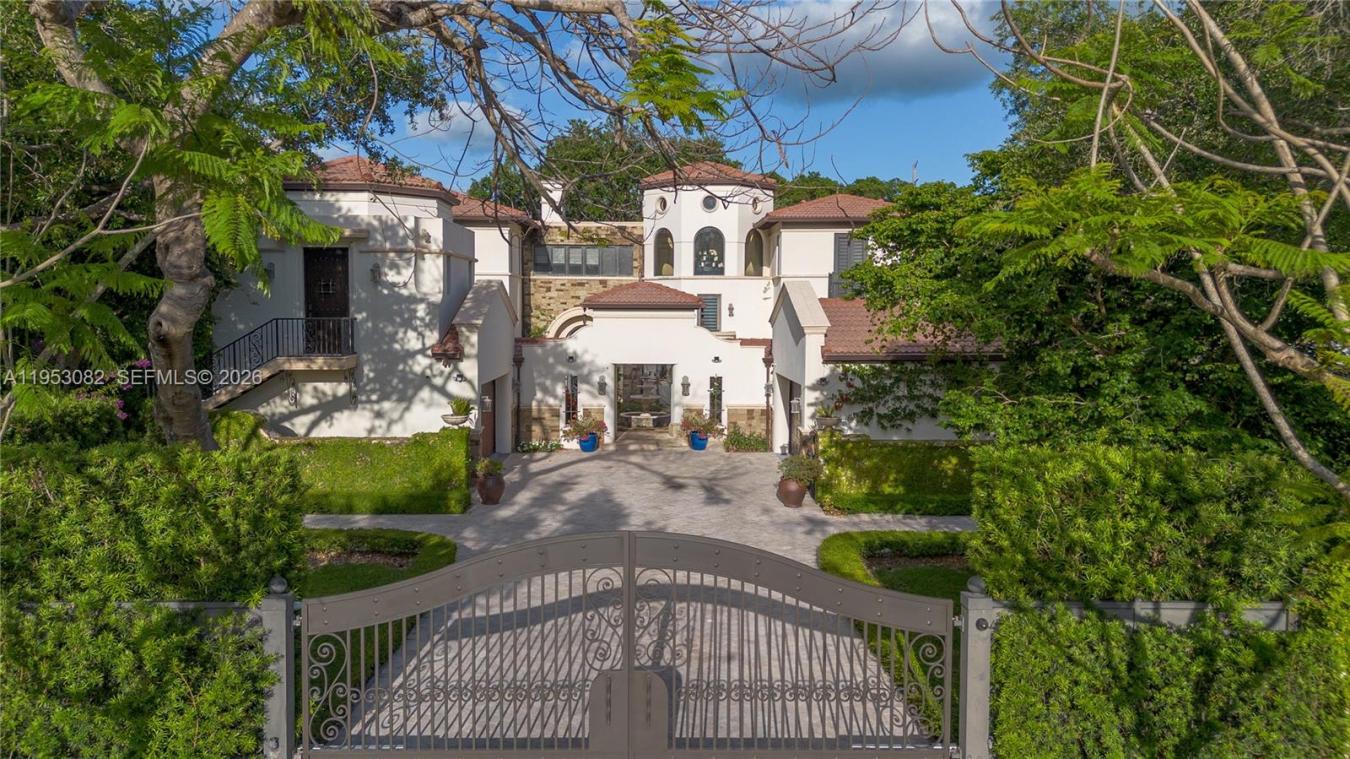 Spectacular Mediterranean-inspired estate in the highly coveted Pinecrest community. Nestled on a beautifully landscaped, oversized 0.73-acre lot, this custom masterpiece offers unparalleled luxury living with 9 bedrooms and 9 bathrooms. Grand foyer with soaring ceilings welcomes you into a two-story layout featuring marble and wood floors, a chefs kitchen with high-end appliances, elegant living and dining spaces, media/theater room, wine cellar, and elevator. Resort-style outdoor living with pool, spa, lush gardens, and multiple entertaining areas. Property includes 2 separate guest houses, each with 1 bedroom, 1 bathroom, and full kitchen, plus a separate in-law suite with ensuite bathroom. Abundant parking with 4-car garage. Prime location near top-rated schools and premier dining and shopping. A true Pinecrest showpiece.