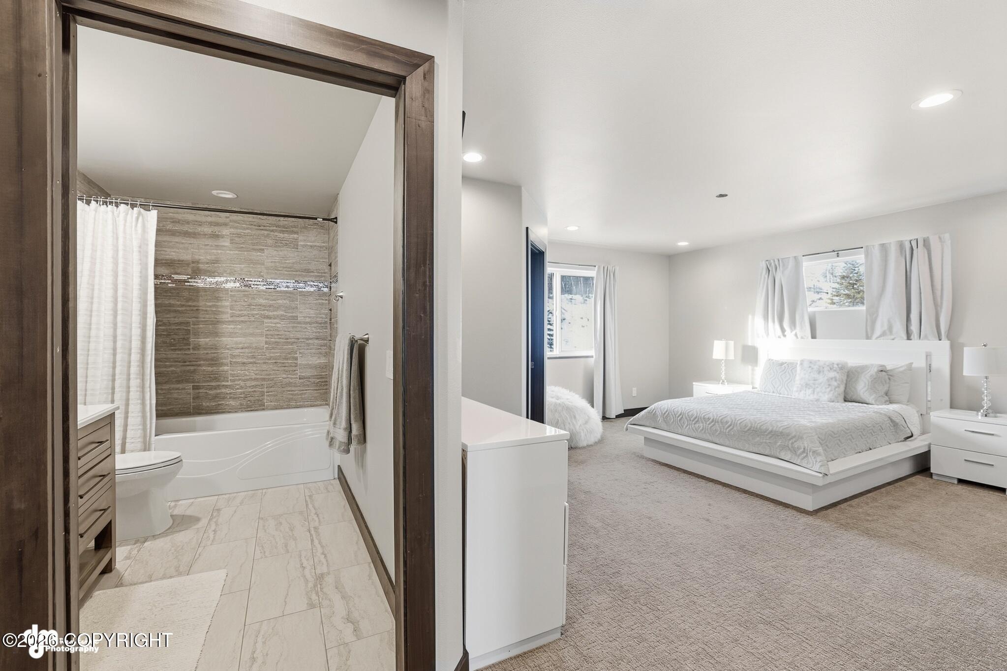 Experience luxury lakefront living on the shores of Longmere Lake in this 100% custom-built home offering 5,676 SF with 5 bedrooms, 6 baths-including 3 private ensuites. This home blends elevated comfort with unforgettable views. The primary suite on the main level is a true retreat, showcasing killer views & a spa-inspired bath complete with walk-in double shower, soaking tub & walk-in closet. The open-concept living, dining & kitchen areas are flooded with natural light & framed by breathtaking lake views. The living room boasts 24 vaulted ceilings, custom granite stairs with chiseled edges & a stunning full-height stone fireplace that anchors the space with warmth and style. The chefs kitchen is equally remarkable, featuring high-end features, bar top seating, 2 dishwashers, a side-by-side full freezer & refrigerator unit, an induction cooktop, and an oversized walk-in pantry. Enjoy over 1,400 SF of deck with a hot tub, plus a 960 SF private dock for ultimate lakefront living. Additional features include a main-floor office with French doors, spacious great room with wet bar, two laundry rooms, attached 4-car garage & a detached 1,320 SF shop with 12 x14 overhead doors. Exceptional craftsmanship, storage galore & premier lakefront lifestyle - this home is truly special!