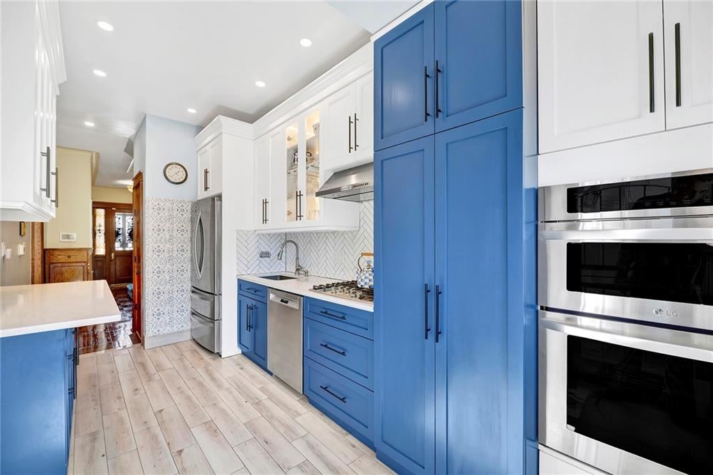 Welcome to 146 Senator Street, a distinguished barrel-front residence offering four bedrooms and a garage, where timeless architectural elegance meets refined modern living. This exceptional home is rich in character, showcasing original parquet floors, exquisitely restored woodwork, and a dramatic coffered dining room ceilingeach detail thoughtfully preserved to honor its classic design heritage.The main level unfolds with a gracious formal living room and an elegant dining room, ideal for sophisticated entertaining. At the heart of the home, a meticulously renovated chefs kitchen features premium stainless steel appliances, double convection ovens, and radiant heated flooring, delivering both beauty and performance. Expansive windows and a glass door bathe the space in natural light and open to a serene, private outdoor retreat complete with a deck and landscaped gardenan inviting sanctuary perfect for al fresco dining and quiet moments alike, enhanced by seasonal blooms.A beautifully appointed powder room with radiant heated floors adds an additional layer of comfort and convenience.The upper level offers four well-proportioned bedrooms, each providing a sense of tranquility and flexibility. The spa-inspired primary bathroom is designed for indulgence, featuring a jacuzzi soaking tub, a separate glass-enclosed shower, and a remote-controlled skylight that fills the space with soft, natural light. An additional skylight in the hallway further enhances the homes airy, light-filled ambiance.The fully finished lower level extends the homes livability with a luxurious, spa-like bathroom, a dedicated laundry room, and generous storage. This versatile space is ideally suited for a private guest, executive home office, fitness studio, or media lounge.146 Senator Street is a rare offering that seamlessly blends historic charm with contemporary sophistication, delivering a truly elevated living experience in a beautifully curated setting.