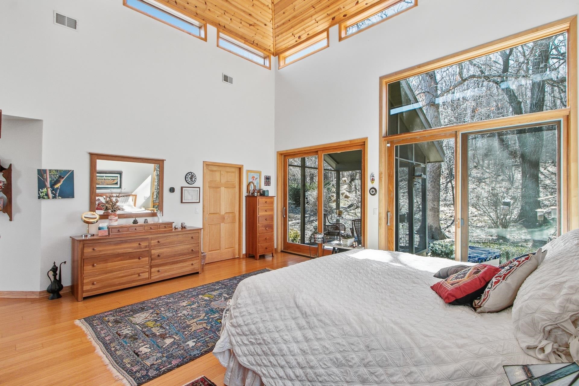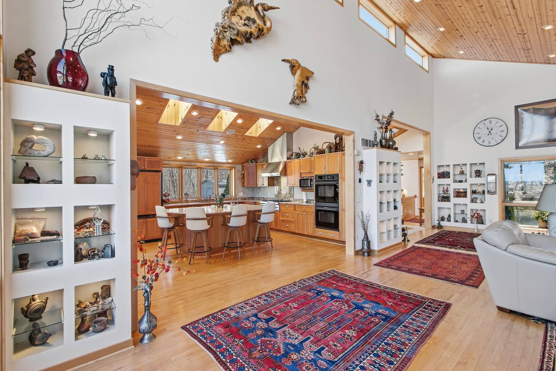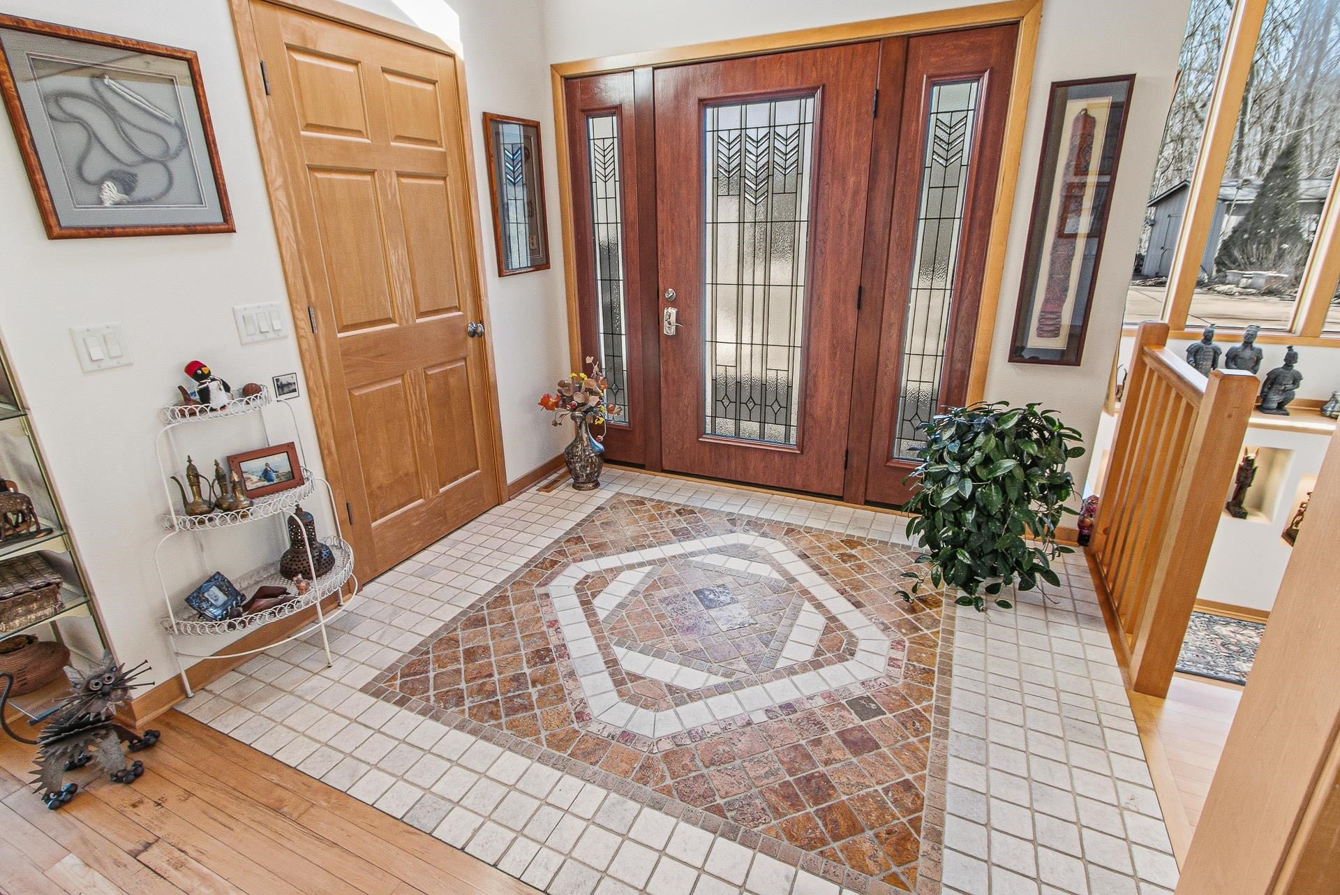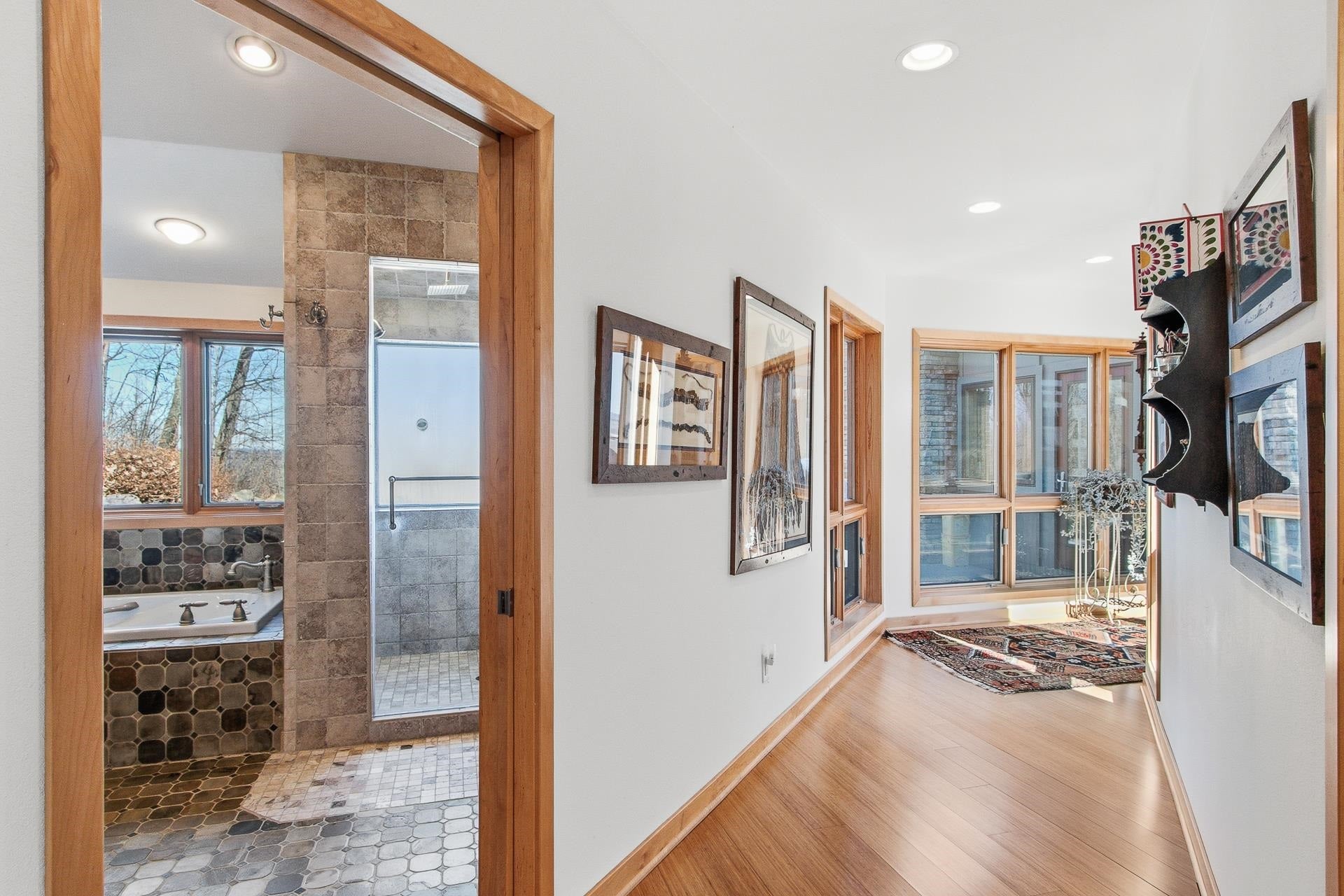Discover remarkable serenity & privacy at this custom meticulously designed 5,500 sq. ft. Ranch home w/4 bedrms & 3.5 baths set on 57 acres! Abundance of wildlife w/30 wooded acres & creek, ideal for hunting, residence or for STR/Airbnb. Just mins from Cascade, Wisc. Dells & Devils Lake. Exquisite home offers a seamless blend of architectural charm & nature viewing. M.L. offers a blend of warm wood flooring thru out. Enormous chefs kitchen w/massive center island, granite counters & cherry cabinetry that seamlessly connects to the expansive Great rm w/soaring high ceilings & wall of transom windows for incredible vistas & views! Open dining area, perfect for entertaining! Office, utility rm w/ built-ins & screen porch.Lg. lavish owners suite w/spa tub, tiled steam shower & 2 walk-in closets. Entertaining walk out LL boasts lg rec rm w/gas fpl, 3 bdrms & 2 full baths. Enjoy the huge patio, firepit, gardens for serene outdoor living. Spacious wrap around deck & sauna! Roof 6 yrs old.