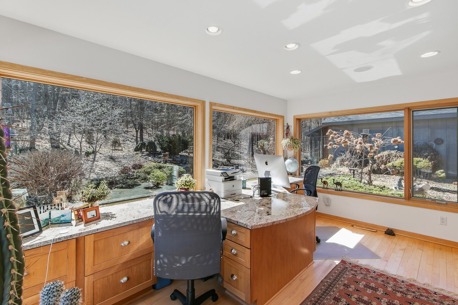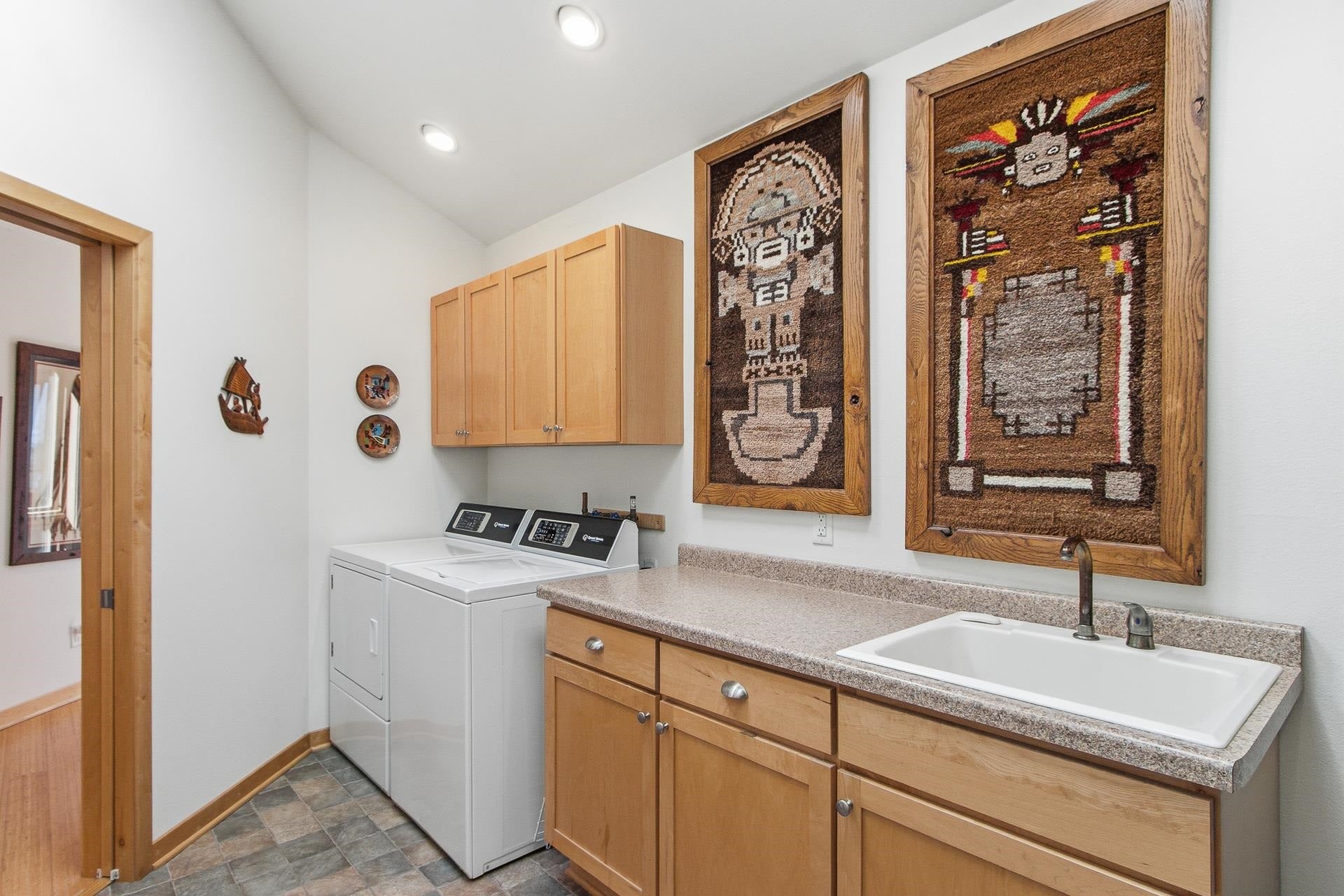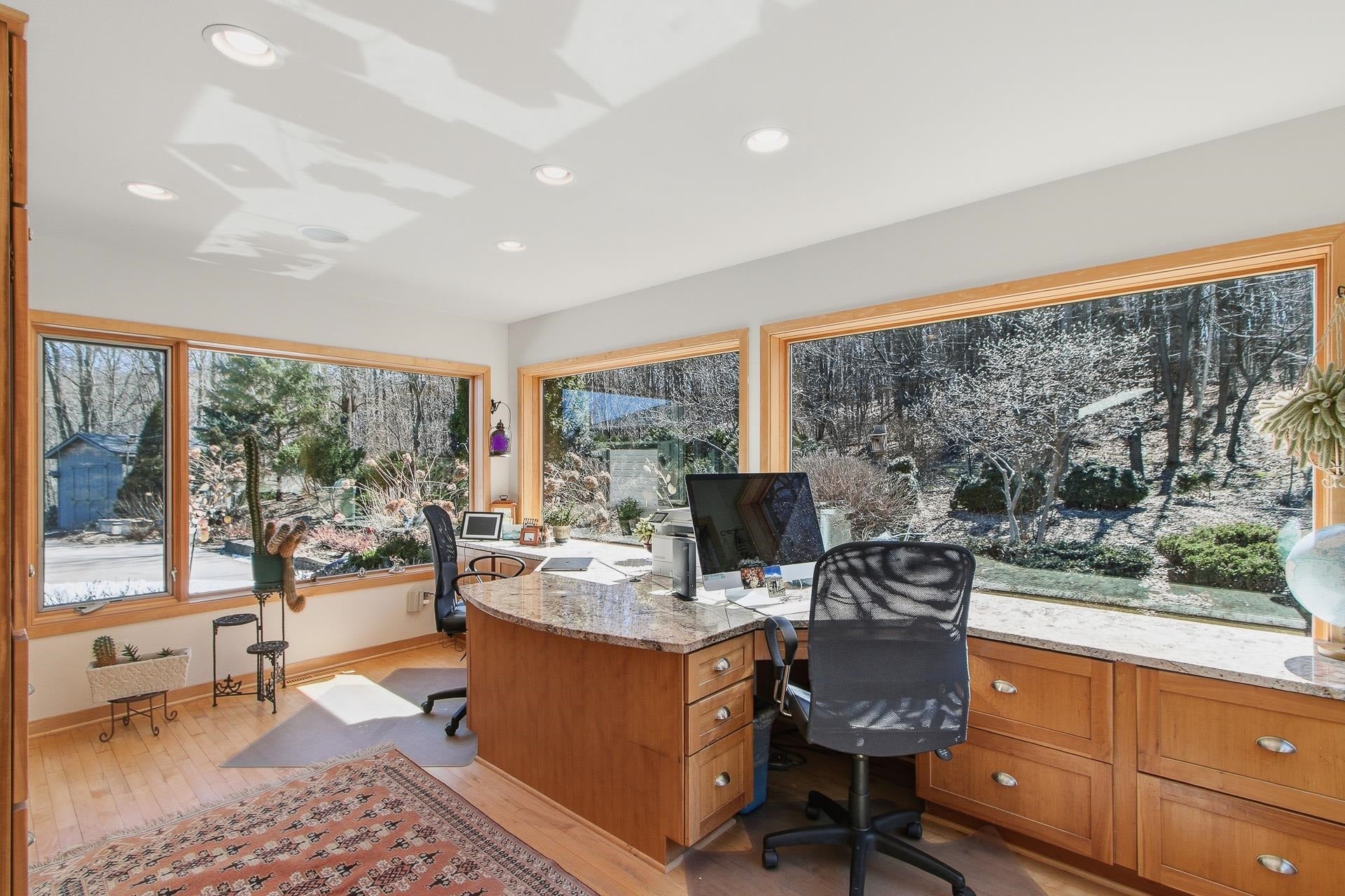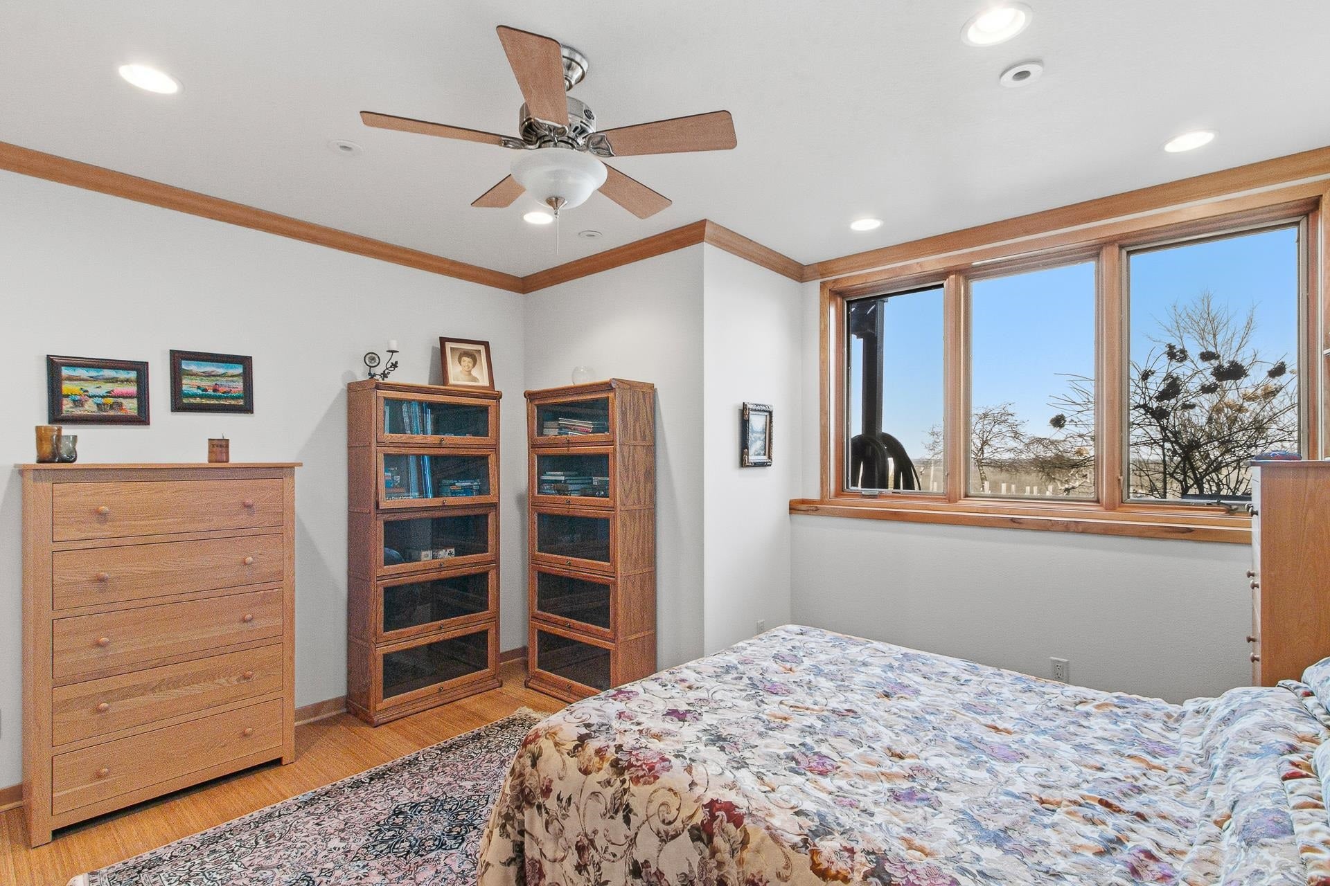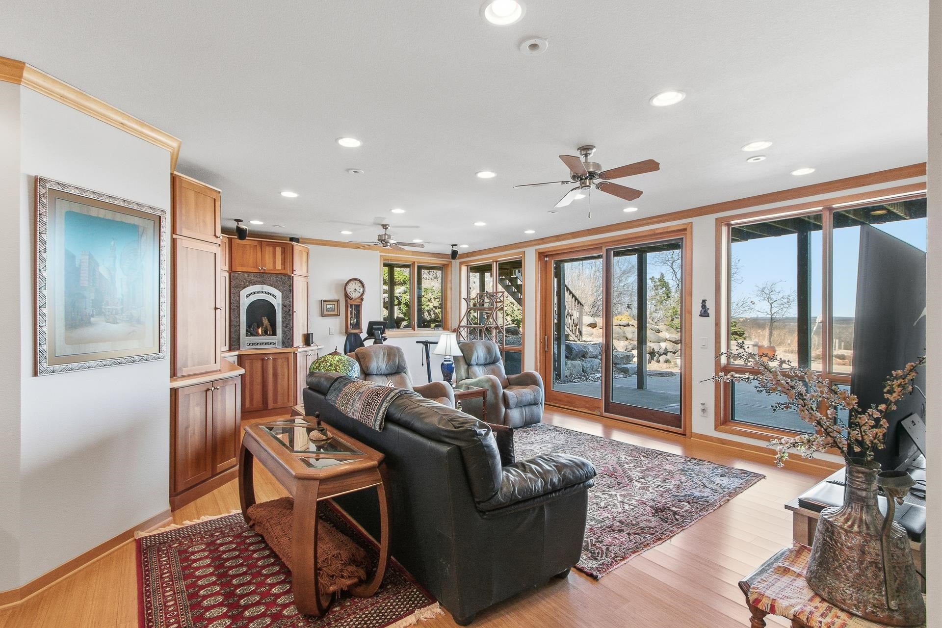 Discover remarkable serenity & privacy at this custom meticulously designed 5,500 sq. ft. Ranch home w/4 bedrms & 3.5 baths set on 57 acres! Abundance of wildlife w/30 wooded acres & creek, ideal for hunting, residence or for STR/Airbnb. Just mins from Cascade, Wisc. Dells & Devils Lake. Exquisite home offers a seamless blend of architectural charm & nature viewing. M.L. offers a blend of warm wood flooring thru out. Enormous chefs kitchen w/massive center island, granite counters & cherry cabinetry that seamlessly connects to the expansive Great rm w/soaring high ceilings & wall of transom windows for incredible vistas & views! Open dining area, perfect for entertaining! Office, utility rm w/ built-ins & screen porch.Lg. lavish owners suite w/spa tub, tiled steam shower & 2 walk-in closets. Entertaining walk out LL boasts lg rec rm w/gas fpl, 3 bdrms & 2 full baths. Enjoy the huge patio, firepit, gardens for serene outdoor living. Spacious wrap around deck & sauna! Roof 6 yrs old.