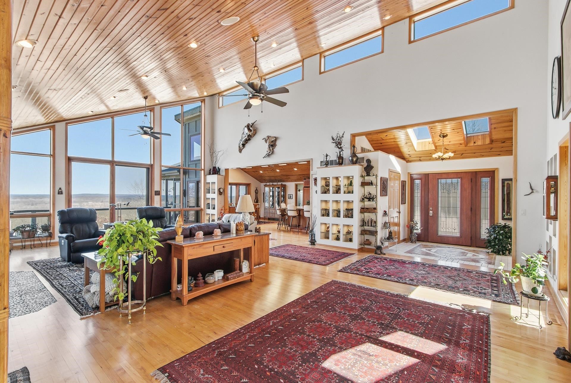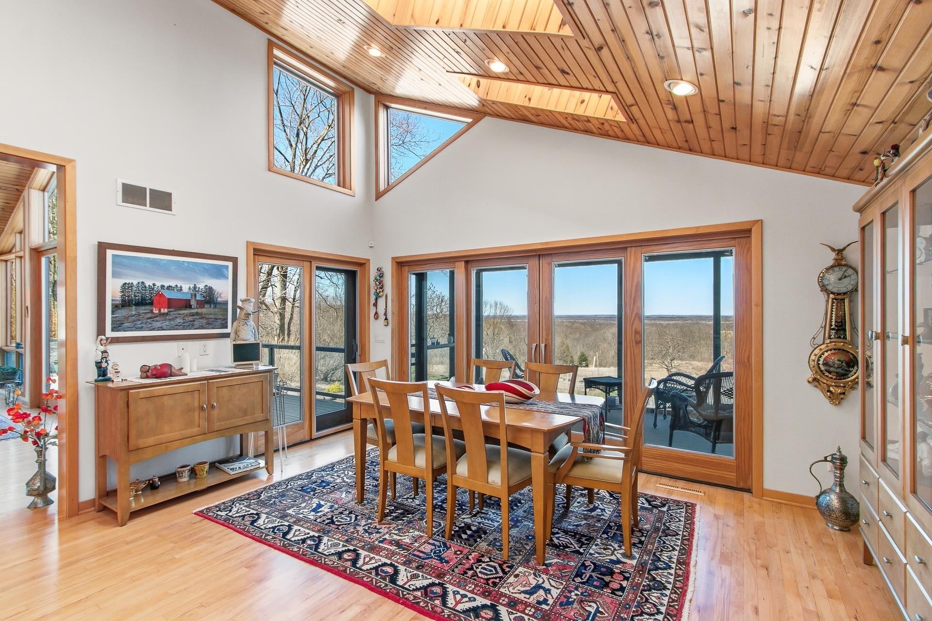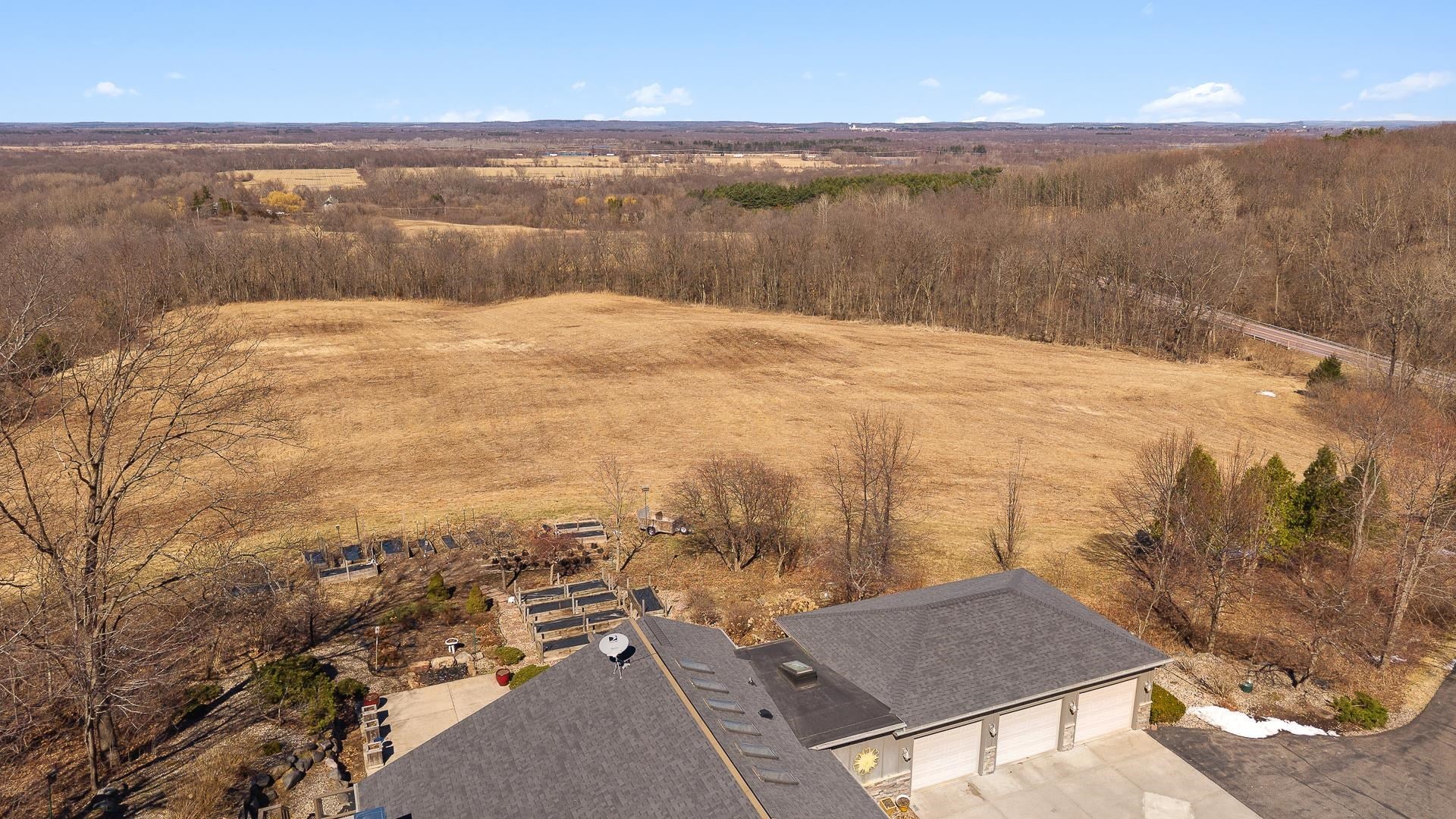 Discover remarkable serenity & privacy at this custom meticulously designed 5,500 sq. ft. Ranch home w/4 bedrms & 3.5 baths set on 57 acres! Abundance of wildlife w/30 wooded acres & creek, ideal for hunting, residence or for STR/Airbnb. Just mins from Cascade, Wisc. Dells & Devils Lake. Exquisite home offers a seamless blend of architectural charm & nature viewing. M.L.