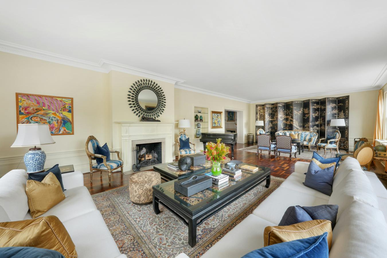 Be sure to reference the video for additional context. At the foot of Lenox Hill is 640 Park Avenue, which was originally developed by the Fullerton Weaver Realty Company in 1914. A century ago, The Real Estate Record & Guide, the industry rag of its day, wrote that architect J.E.R. Carpenter "was the father of the modern large apartment here in New York." Later Christopher Gray of The NYT wrote that, "In 1914 Mr. Carpenter designed, and again partly owned, the impressive 640 Park, at 66th Street. It is all limestone, with double sets of Florentine-style windows and one five-bedroom apartment per floor. This marked his arrival into the stratosphere of luxury apartments, with a separate gallery, reception room, wine closet and six servants rooms, including a separate section for the butler and the second man." Upon arriving on the 9th floor and your own private elevator landing, Grays description of Carpenters design comes off the page. Once you indeed enter into the commodious, nearly 375 sqft gallery, which is perfect for art, you are struck by the extraordinary volume of this home. As you immerse yourself into the space you realize that your experiencing something different, something special, 10 ceilings and innumerable large outward facing windows, four exposures, views and streams of sun and light throughout. The gorgeous and dramatic SE facing living room and oversized dining room were designed and intentionally positioned lengthwise along Park Avenue to enhance that light. These rooms span nearly 70 with open views overlooking the historic Armory which was built in 1879. Just off the gallery is a lovely south facing library and an unusual and seductive 7 wide and nearly 48 long corridor which leads you to the secluded private wing and further reveals the unique proportion and expansiveness of this full floor residence, currently 15 rooms, inclusive of 5 bedrooms, 6 baths and two staff rooms. To fully grasp the wonders of this home, it must be experienced. This boutique cooperative on the NW corner of 66th Street, is one of the select-few truly exclusive and distinguished cooperatives on all of Park Avenue. In close proximity to world class restaurants, shopping, entertainment, art and culture, including the Metropolitan Museum of Art, The Frick Collection, Lincoln Center the list goes on the location is unparalleled. There are full time doormen, a resident manager, and a large storage bin is included. There are no summer work rules and pied-a-terres and 35% financing are permitted. There is a 2.5% flip tax payable by the purchaser.