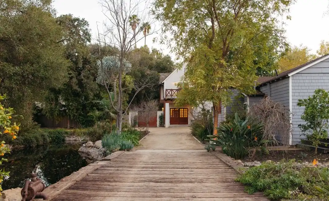 Seller will consider accepting other assets as part of the purchase price including properties, crypto currency, gold and the like. Spanning nearly 2.5 acres of private, gated grounds, this extraordinary estate merges two properties into one unforgettable sanctuary a rare offering in the heart of Encino. Tucked behind mature trees and a winding drive, the compound features a remarkable collection of structures, including two grand main residences, two charming guest houses, a professional recording studio, barn and bunkhouse, writers cottage, pool and spa retreat, corrals, and a wealth of bespoke amenities. At the center, a romantic, ivy-draped courtyard with fireplace welcomes you into a world of timeless elegance. Inside, expansive living areas, a fully equipped chefs kitchen, butlers pantry, library, and pub evoke warmth and sophistication. With six bedrooms, a dedicated studio, maids quarters, and a workshop, the estate offers both creative inspiration and luxurious comfort. Adding to its allure are three distinct guest residences including a beautifully restored mid-century home with a recording studio perfect for artists, guests, or multi-generational living. A picturesque barn, complete with bunkhouse and horse turn-out, completes the pastoral dream. Rarely does a property of this scale, privacy, and character become available a true legacy estate designed for those who seek space, serenity, and soul.