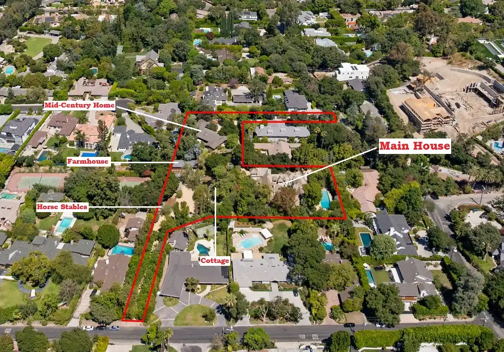 Seller will consider accepting other assets as part of the purchase price including properties, crypto currency, gold and the like. Spanning nearly 2.5 acres of private, gated grounds, this extraordinary estate merges two properties into one unforgettable sanctuary a rare offering in the heart of Encino. Tucked behind mature trees and a winding drive, the compound features a remarkable collection of structures, including two grand main residences, two charming guest houses, a professional recording studio, barn and bunkhouse, writer’s cottage, pool and spa retreat, corrals, and a wealth of bespoke amenities.At the center, a romantic, ivy-draped courtyard with fireplace welcomes you into a world of timeless elegance. Inside, expansive living areas, a fully equipped chef’s kitchen, butler’s pantry, library, and pub evoke warmth and sophistication. With six bedrooms, a dedicated studio, maid’s quarters, and a workshop, the estate offers both creative inspiration and luxurious comfort.Adding to its allure are three distinct guest residences including a beautifully restored mid-century home with a recording studio perfect for artists, guests, or multi-generational living. A picturesque barn, complete with bunkhouse and horse turn-out, completes the pastoral dream.Rarely does a property of this scale, privacy, and character become available a true legacy estate designed for those who seek space, serenity, and soul.