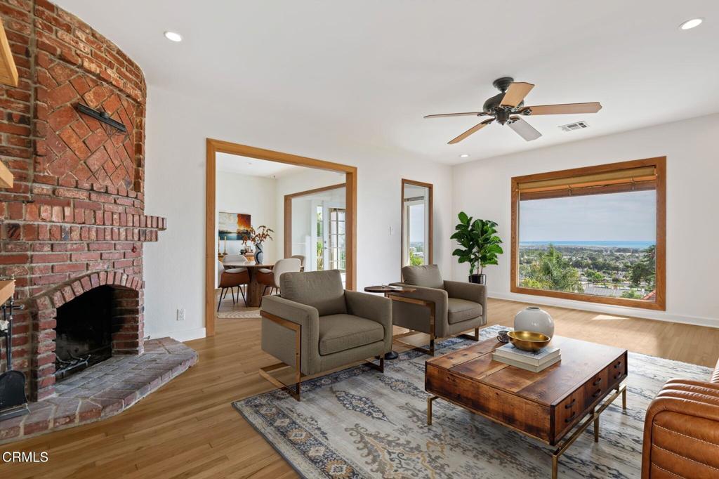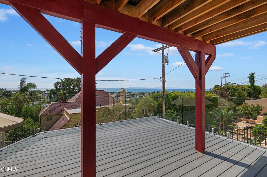Custom ocean and Island view hillside home above Ventura High school. Two new viewing decks with glass panels for wind protection. Highly upgraded bathrooms with granite and glass tile. Primary lower level suite with sitting area and deep soaking tub and walk-in closet with panoramic ocean views. Gourmet kitchen with granite and oak. Hardwood floors in living room, office and dining area.