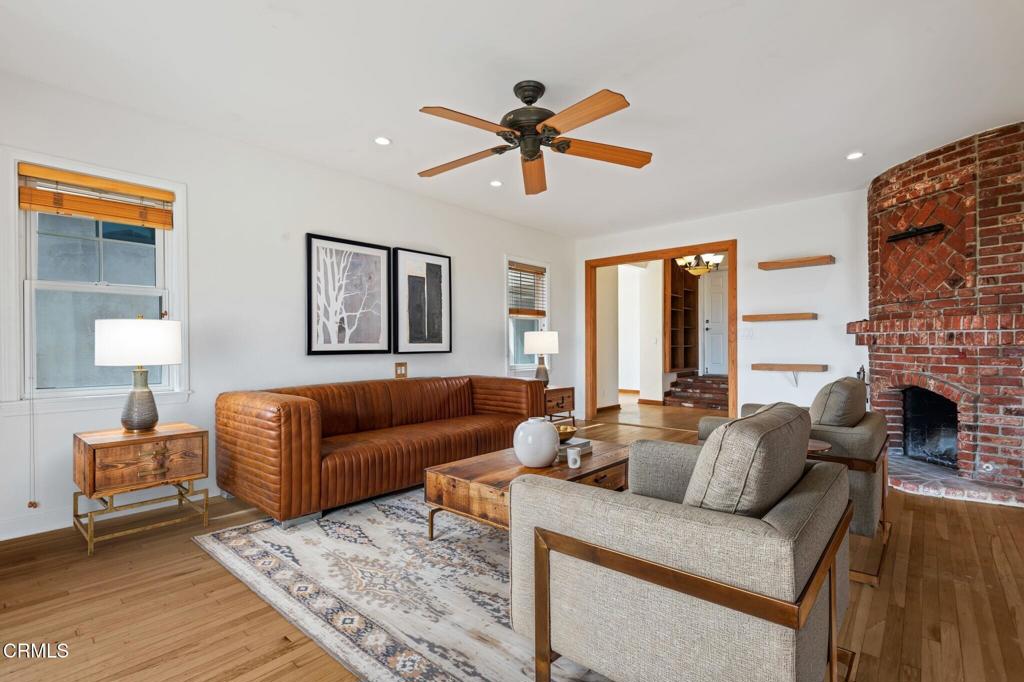 Custom ocean and Island view hillside home above Ventura High school. Two new viewing decks with glass panels for wind protection. Highly upgraded bathrooms with granite and glass tile. Primary lower level suite with sitting area and deep soaking tub and walk-in closet with panoramic ocean views. Gourmet kitchen with granite and oak. Hardwood floors in living room, office and dining area. Dual pane windows, High end 50 year roof installed in 2008 with 32 years left. Lushly landscaped front and rear with auto sprinklers. Two laundry area hook-ups with one washer and dryer included. Indoor laundry plus office. Wood burning fireplace.