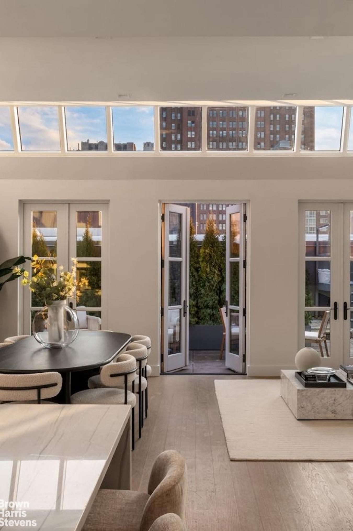 A rare opportunity to own a true penthouse duplex in the heart of the SoHo Cast Iron Historic District, this 2,588-square-foot loft offers an exceptional blend of volume, privacy, and outdoor space. Spanning an entire floor with private keyed elevator access, the home features over 1,200 square feet of dedicated outdoor living across multiple terraces, creating an experience that feels more like a private residence than a typical apartment.The main level is designed for scale and light, with dramatic ceiling heights exceeding 11 feet and a wall of French doors that open directly onto a private terrace. The living and dining areas flow effortlessly, making the space ideal for both everyday living and large-scale entertaining. Upstairs, the duplex layout continues with an expansive grand room framed by floor-to-ceiling windows.The primary bedroom suite occupies the mezzanine level and functions as a private retreat, complete with a generous walk-in closet and dressing area. The en-suite bathroom is finished with refined, spa-inspired details, including a freestanding soaking tub by Waterworks.The kitchen is sleek, modern, and built for serious use, centered around a seven-foot island and outfitted with high-end Miele appliances, including a six-burner gas cooktop, vented professional hood, integrated refrigerator, dishwasher, and wine storage. Wide-plank white oak floors, central air conditioning, custom lighting, in-unit vented washer/dryer, and a video security system complete the interior.Above it all, the roof deck delivers a truly special outdoor setting with an outdoor kitchen and gas grill, panoramic city views, and ample space for dining, lounging, and entertaining. Additional basement storage is available for purchase.74 Grand Street sits at the heart of SoHo, surrounded by the neighborhoods iconic cast-iron architecture. The home is moments from world-class shopping along Broadway and Prince Street, renowned art galleries, and some of downtown Manhattans most sought-after dining destinations, with easy access to Nolita, Tribeca, and multiple subway lines nearby. Behind its restored 19th-century cast-iron facade lies a modern loft conversion of exceptional quality, recognized with the 2022 Preservation Award by the New York Landmarks Conservancy.