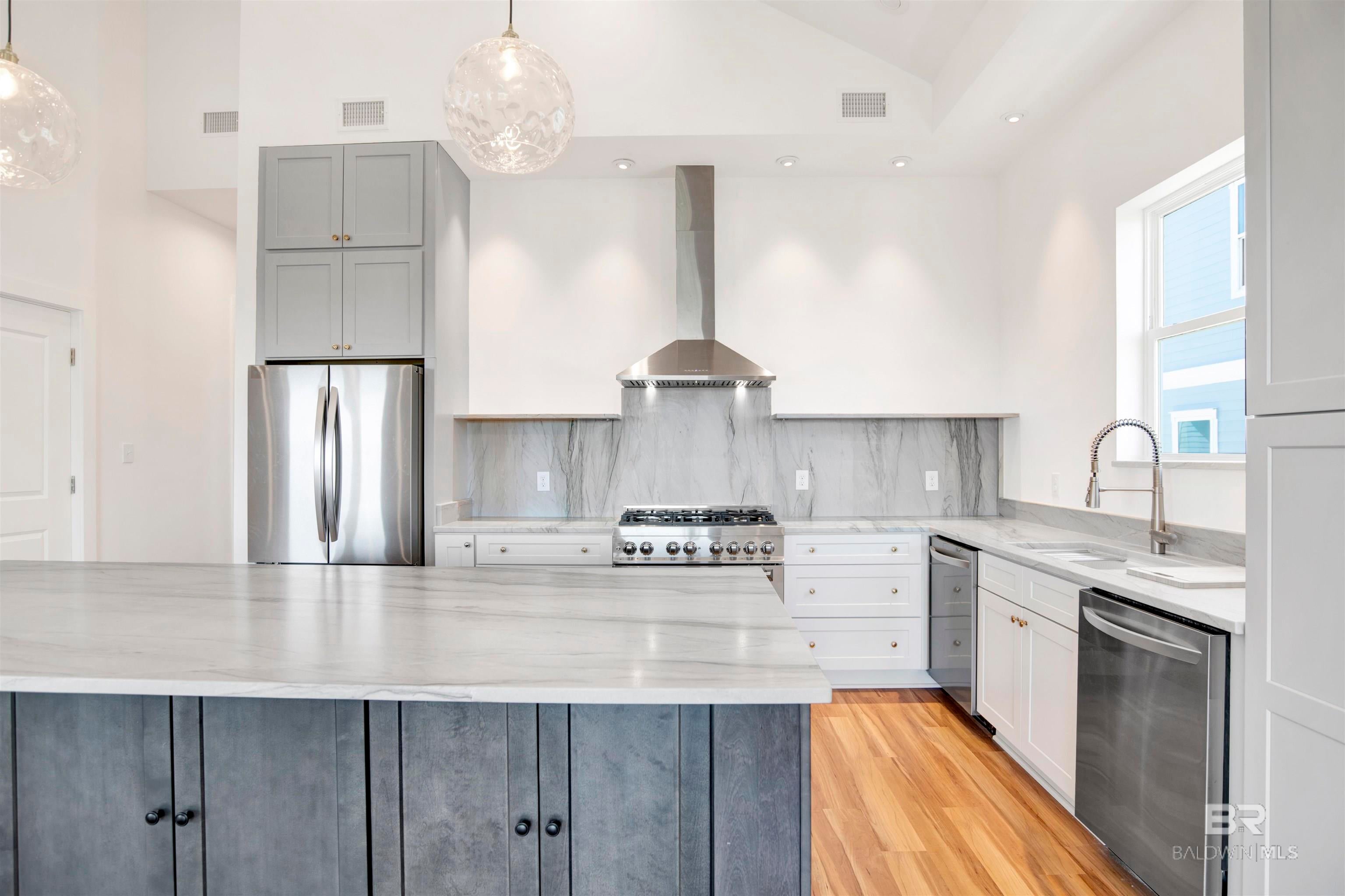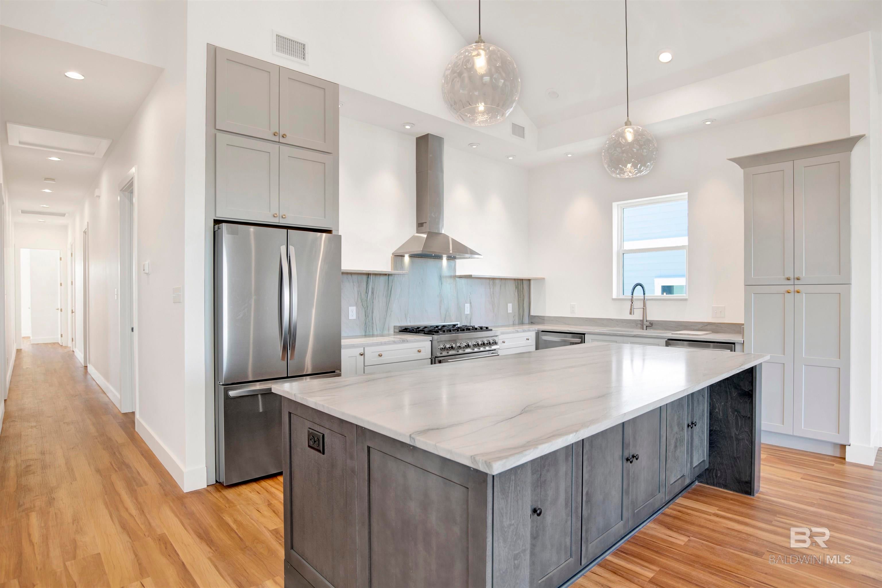 Just completed! Brand new Gold Fortified 4 bedroom, 4 bathroom waterfront home on beautiful Little Lagoon in Gulf Shores, AL. This stunning residence features top-of-the-line finishes throughout, spacious open-concept living, and a PRIVATE ELEVATOR for added convenience. Enjoy serene water views from the covered porch and easy access to the beach, just a short walk away. Add in a pool and your own private Pier/Boat Dock and make this your dream waterfront oasis at the beach. Whether youre looking for a full-time residence, vacation getaway, or investment property, this home offers the perfect blend of style, comfort, and location. *Custom vent hood in kitchen to be installed soon and photos will be updated* Buyer to verify all information during due diligence.