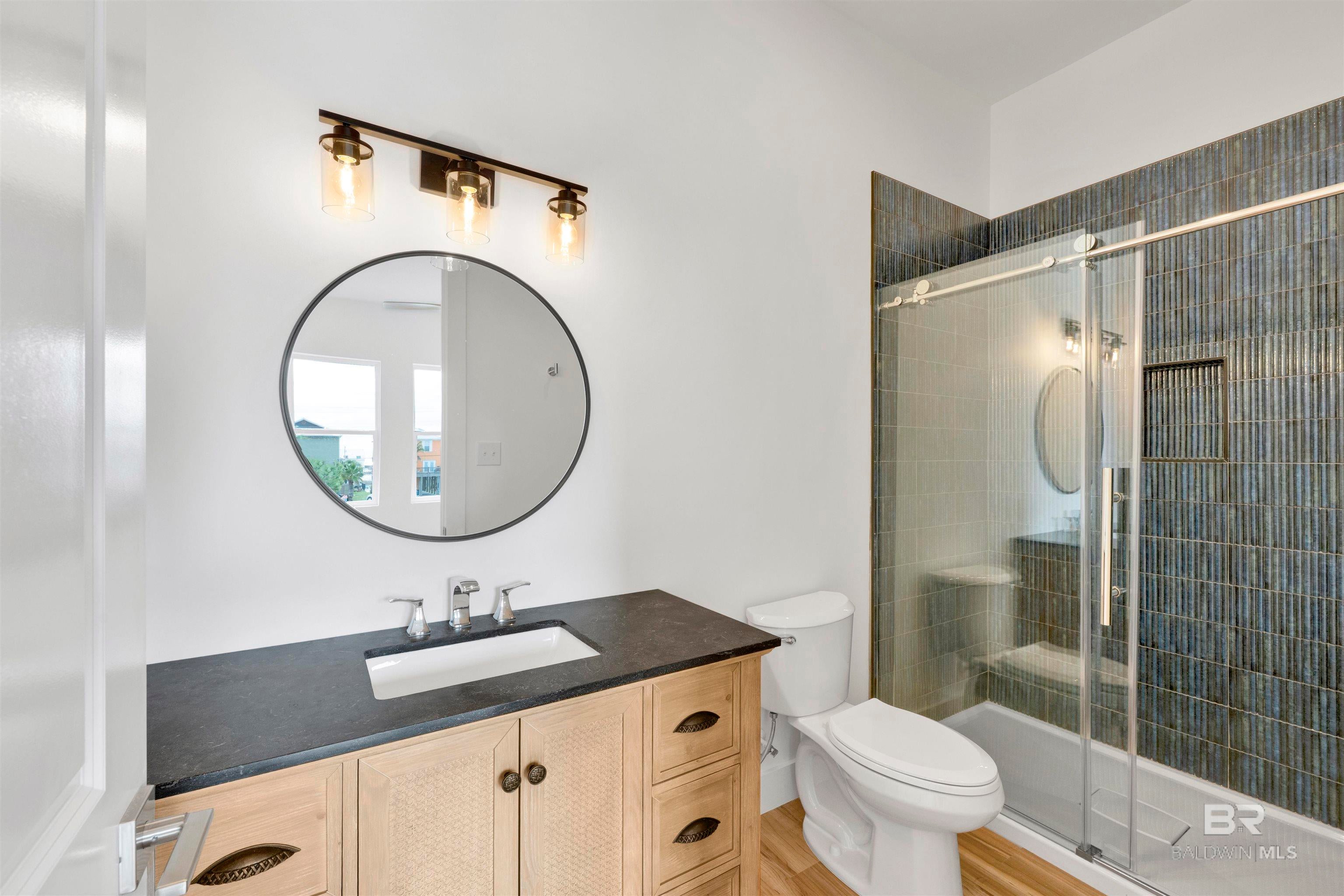 Just completed! Brand new Gold Fortified 4 bedroom, 4 bathroom waterfront home on beautiful Little Lagoon in Gulf Shores, AL. This stunning residence features top-of-the-line finishes throughout, spacious open-concept living, and a PRIVATE ELEVATOR for added convenience. Enjoy serene water views from the covered porch and easy access to the beach, just a short walk away.