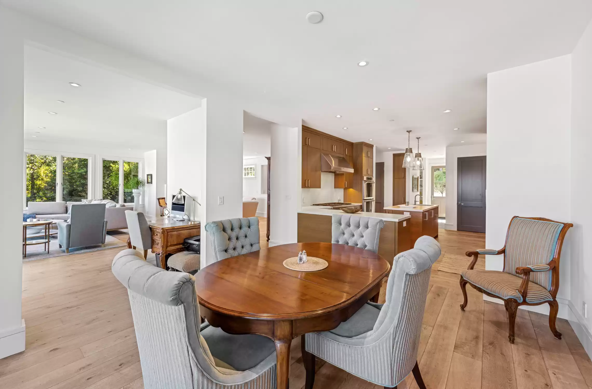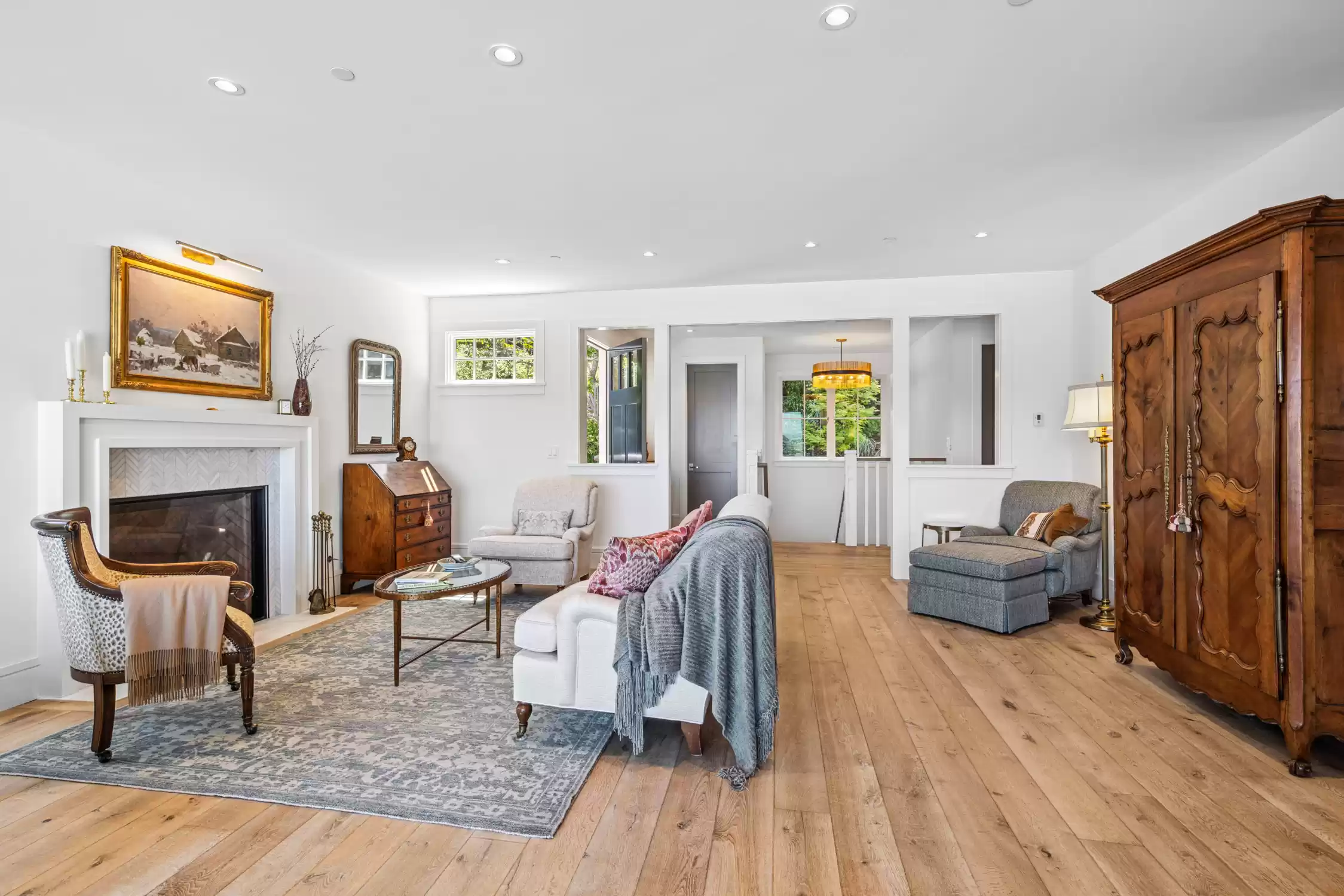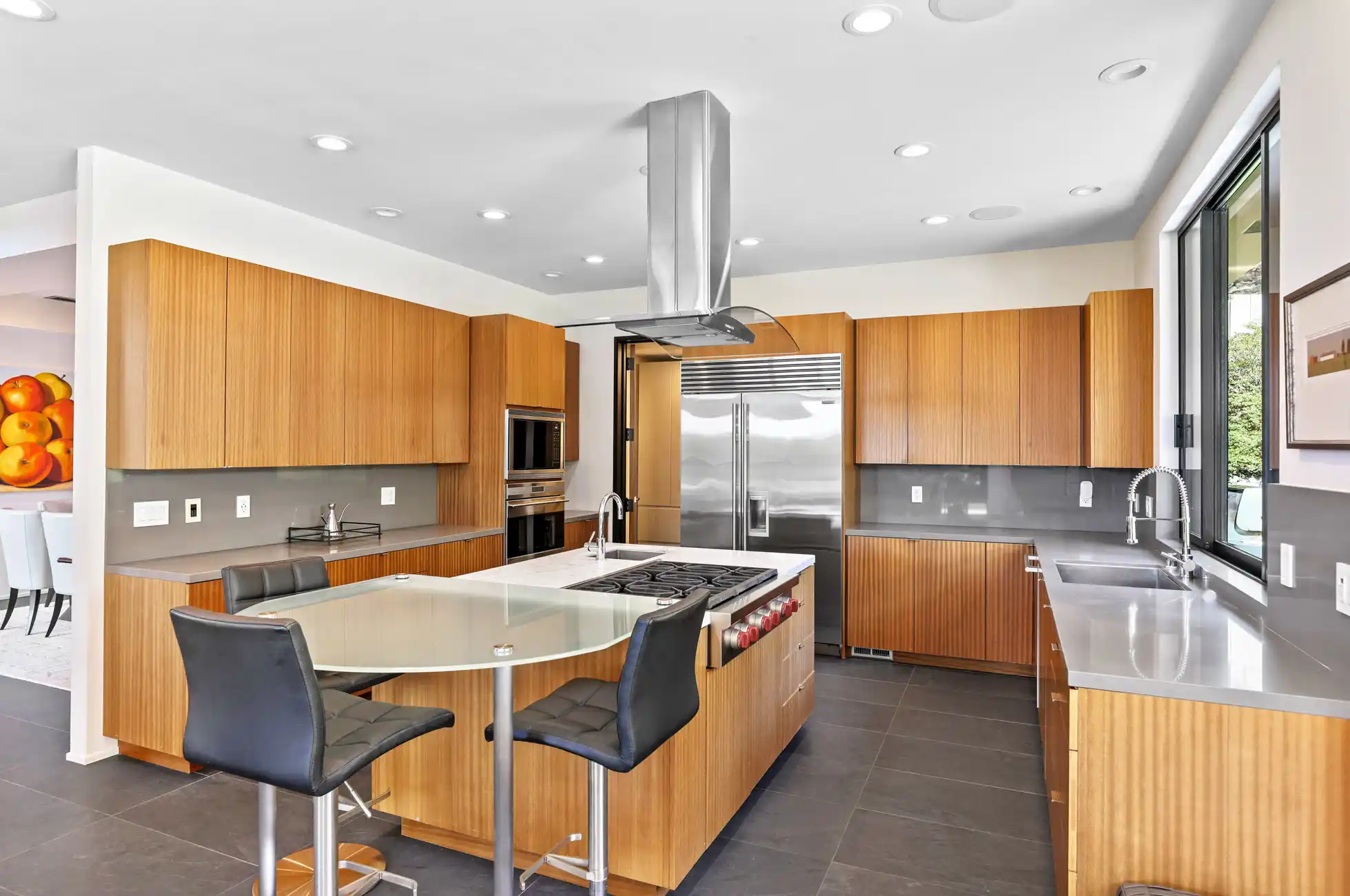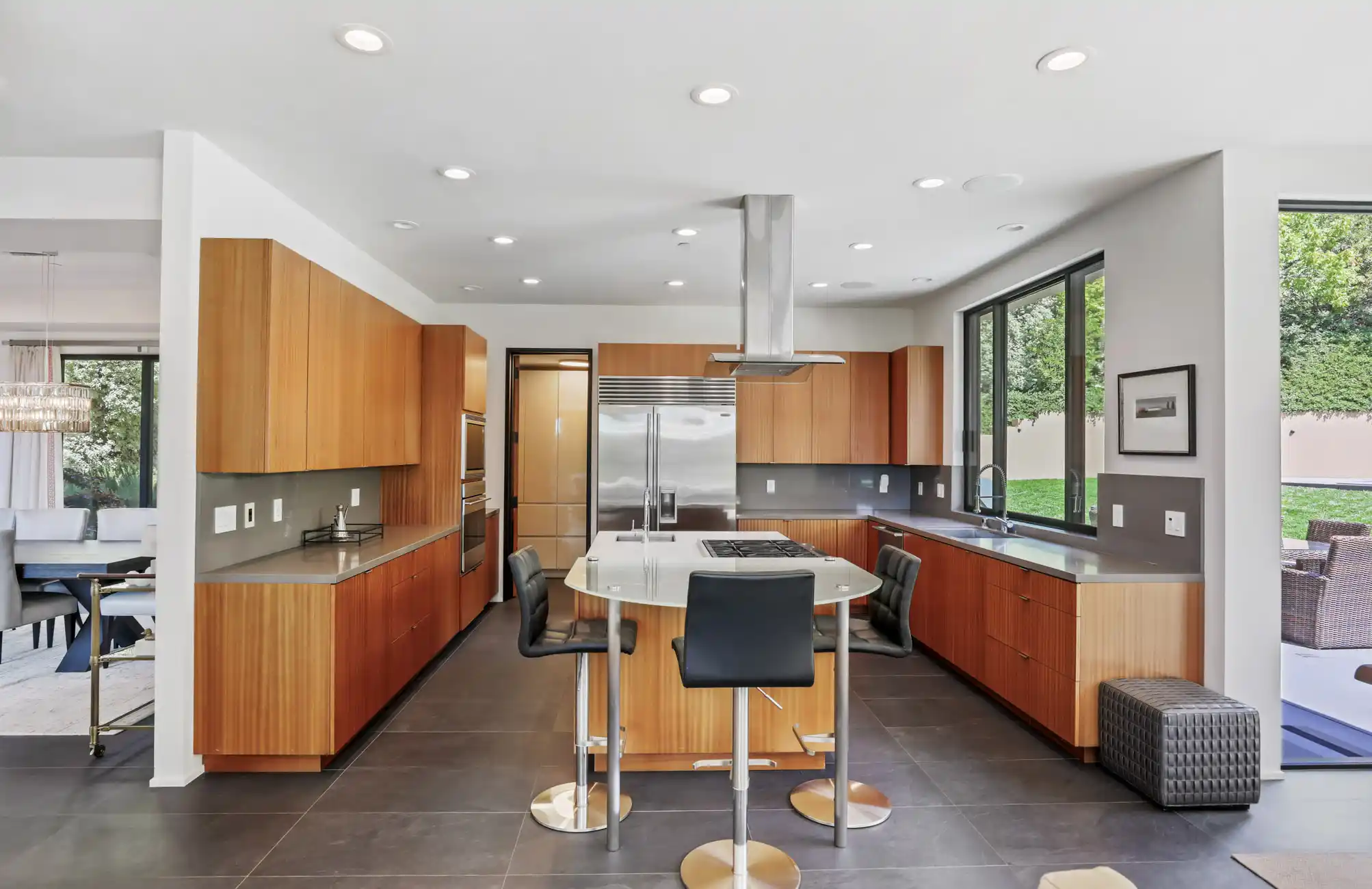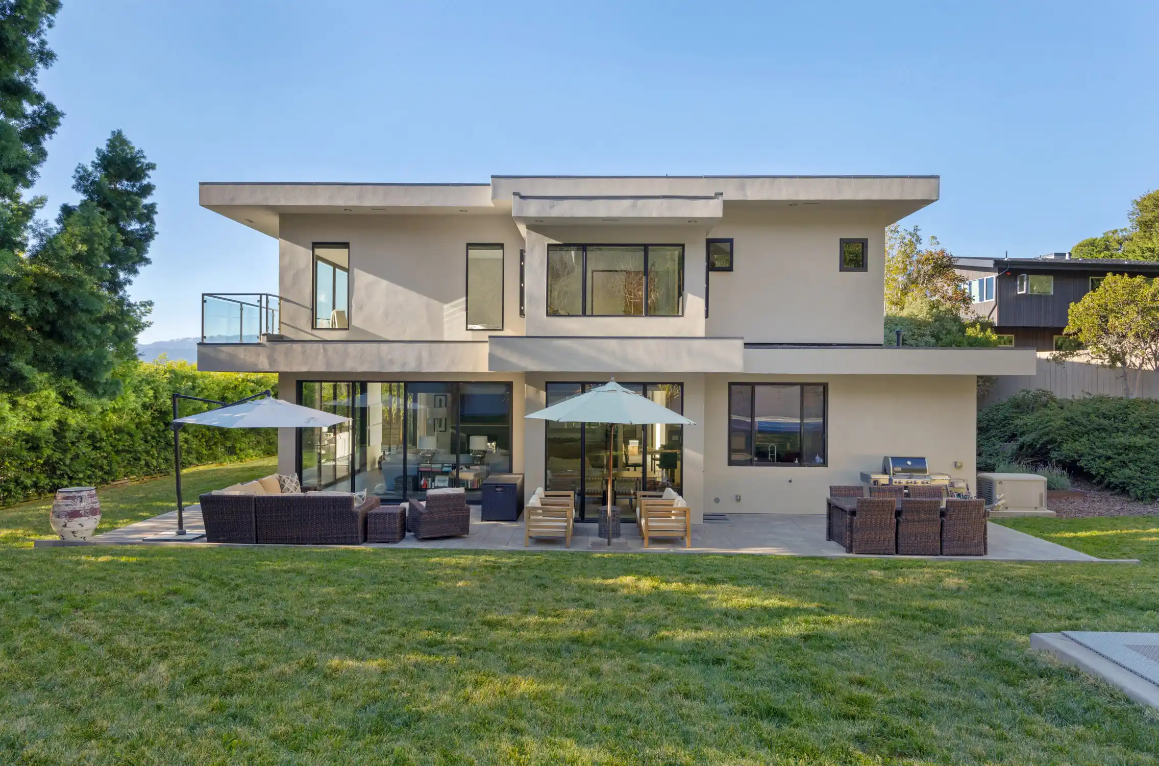This stylish and contemporary residence exemplifies meticulous attention to detail and the highest level of craftsmanship, boasting state-of-the-art finishes and an elevated design aesthetic.Custom built and completed in 2011, no expense was spared in effortlessly integrating modern amenities and high-quality finishes to create timeless and stylish living spaces.This exceptional residence is an entertainer’s dream, offering unrivaled amenities and seamlessly connected indoor/outdoor living spaces that elevate your lifestyle to new heights of luxury and relaxation.The private outdoors include a huge sunny backyard (the perfect pool site), a sport court, a lush level lawn, and multiple entertainment areas.The architecturally stunning living room boasts soaring ceilings, a double-sided gas fireplace framed by a wood accent wall, and sliding glass doors opening to the outdoors.This elegant dining room showcases modern sophistication and thoughtful architectural details, anchored by a tray ceiling with a stunning chandelier, sliding glass doors that open to the outdoors, and a glass-enclosed wine room with two Allavino wine fridges that enhance the space while seamlessly complementing its refined design.Experience elevated functionality and style in the stunning chef's kitchen, featuring a center island with an attached glass breakfast bar, rich wood cabinetry, high-end stainless steel appliances, a pantry, and a sunny breakfast area.The inviting family room features a double-sided gas fireplace, built-in cabinetry, and expansive sliding glass doors that provide seamless access to the wrap-around entertainment patio and lush backyard.A stylish en-suite bedroom, an incredible home office, a powder room, and the laundry/mud room complete the main level of the residence.A breathtaking floating staircase featuring sleek glass paneling gracefully ascends to the upper level of the residence, featuring a lavish primary suite, two comfortable bedrooms, and a full bathroom.The lavish primary suite features carpeting, a walk-in closet with custom wardrobe system, breathtaking views of the bay, and sliding glass doors that open to a private terrace.Indulge in a spa-like retreat within the luxurious primary bathroom, featuring sleek floors, a floating vanity with dual sinks and elegant stone counters, a soaking tub, a large glass-enclosed shower, and a skylight.Two comfortable bedrooms and a stylish full bathroom with dual sinks and a shower/tub combo complete the upper level of the residence.Attached 3 car garage and large driveway with additional parking for guests.One of Tiburon's most desirable locations, only minutes from Del Mar Middle, Reed Elementary, and St. Hilary's schools, and just blocks from the Old Rail Trail waterfront pathway and downtown Tiburon’s Main Street, which offers San Francisco and Angel Island ferry service, waterfront restaurants, and trendy shops.