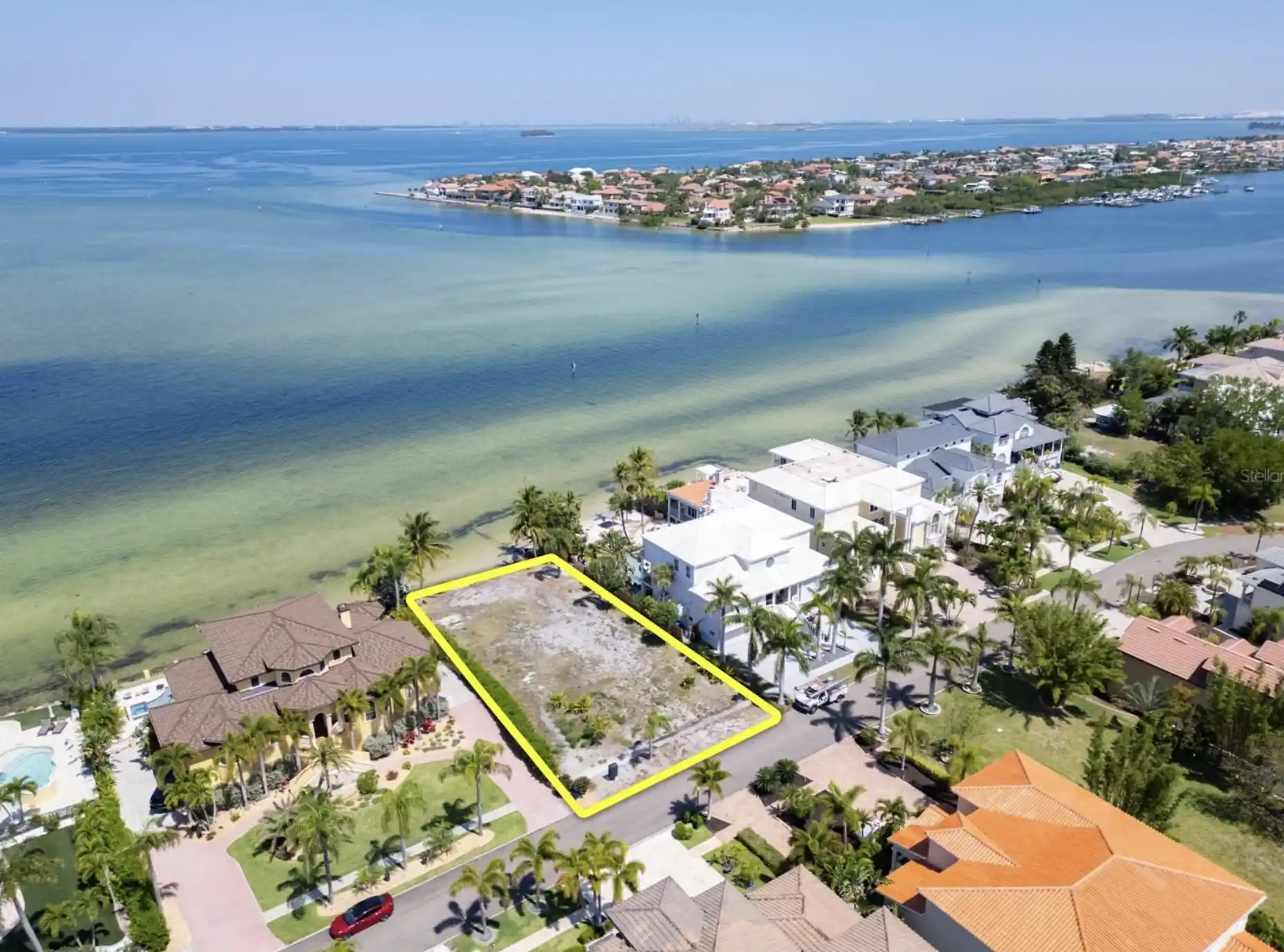 Pre-Construction. To be built. OVERSIZED BEACH FRONT to-be-built home in the gated community of Symphony Isles AND boat slip at the community marina. 5 Bedrooms + Home Office + Media Room, Multiple outdoor living spaces on all three levels to enjoy the water views and sunsets relaxing with a tropical drink in hand. Live every day like it’s a vacation in this tropical paradise, where you can relax and take in the picturesque views from your own backyard beach. Tons of storage and room for SIX cars in the first floor garage. PRIVATE elevator helps you enjoy all the space easily. Experience the best of Apollo Beach living in this stunning pre construction custom home, expertly crafted by the renowned local builder, Schmidt Luxury Homes. Designed with top-of-the-line upgrades and a layout that caters to all your needs. First Floor: Ultimate Convenience The first floor serves as the foundation of convenience and storage, boasting ample room to park up to 6 cars, perfect for guests and car enthusiasts alike. Ascend the stairs or take the private elevator to the second floor, where everyday living and entertaining come to life. This floor features a formal dining room, ideal for hosting gatherings, and an upgraded kitchen equipped with top-tier appliances, a walk-in pantry, and an island with casual seating. Adjacent to the kitchen, another dining area bridges the space to the great room, which features a cozy fireplace and access to a spacious second-floor terrace, perfect for relaxation and enjoying the views of the beautiful lot. The second floor also includes a private home office with its own balcony, a well-appointed guest room connected to a full bath with dual sinks, and a versatile media room perfect for movie nights, game days, or an additional living area. The top floor is designed for privacy and comfort. The primary suite is a true retreat, featuring a large bedroom, two huge walk-in closets, and a bath with a large shower and dual sinks. Enjoy fresh breeze from your private terrace. This floor also offers a junior suite with a private bath and walk-in closet, two additional bedrooms sharing a Jack & Jill bathroom with dual sinks, and a conveniently located laundry room. A cozy living space and another terrace on this floor provide the perfect spot to unwind and watch the stunning Florida sunsets. *Prime Beach-Front Lot* Seize this rare opportunity for your waterfront dream home on the last beachfront lot in Symphony Isles. This over quarter-acre exclusive lot offers breathtaking panoramic views of Tampa Bay from your own private sand beach. The ready-to-build lot comes with a seawall and a 75' deep water boat slip in the private marina. The lush landscaping, including a 30ft Banyan, Queen Palms, and various fruit trees, enhances both privacy and beauty. Welcome to Symphony Isles, a beautiful, gated community. With 24-hour uniformed security, residents enjoy peace of mind in a safe and secluded environment. Living in Symphony Isles means being part of an active and social community, with events and activities for all ages. The community boasts a range of amenities, including a clubhouse, pool, playground, and a boat launch area. Symphony Beach Park, exclusive to residents, features a private beach on Tampa Bay, a barbecue area, gazebo, horseshoe pit, and volleyball court. Embrace the unparalleled craftsmanship of Schmidt Luxury Homes and make this exquisite residence your own.