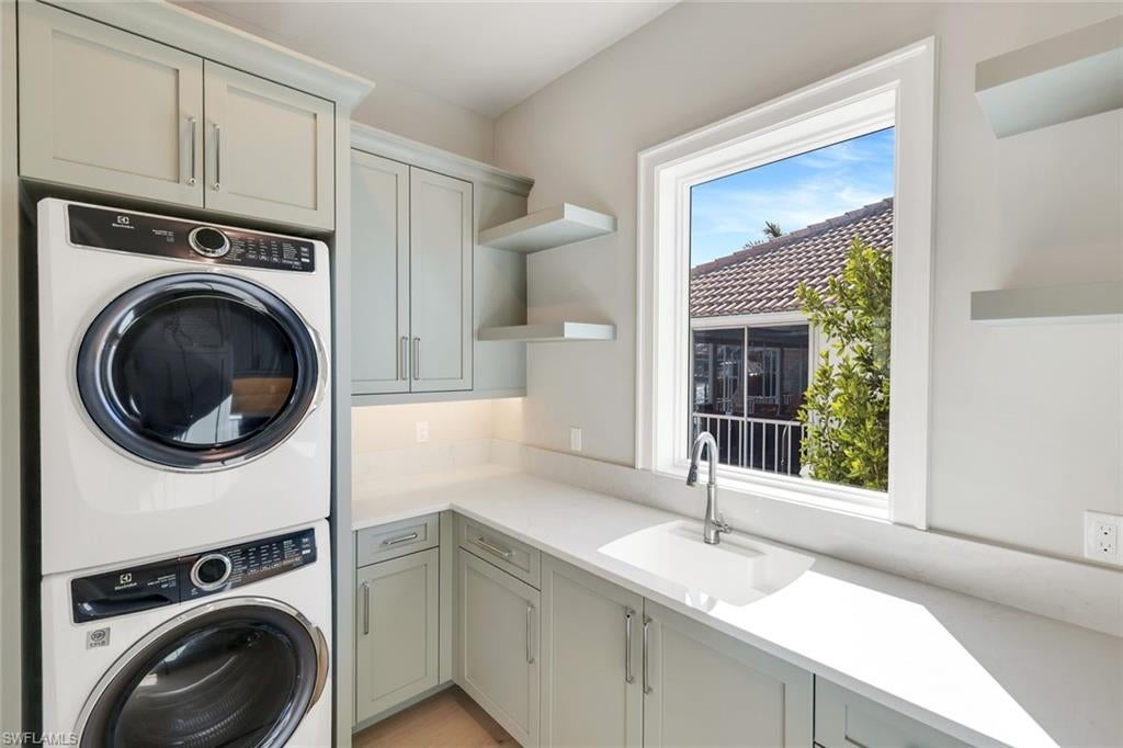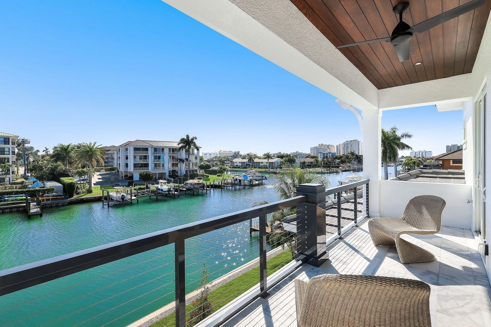 **Beautiful custom home just completed by Aqua Custom Homes!**Furnished and move in ready! Perfectly positioned on a highly coveted **south-facing lot**, this exceptional waterfront residence enjoys **all-day sun** over the pool along with breathtaking **double-wide canal views** and **110 feet of water frontage**.