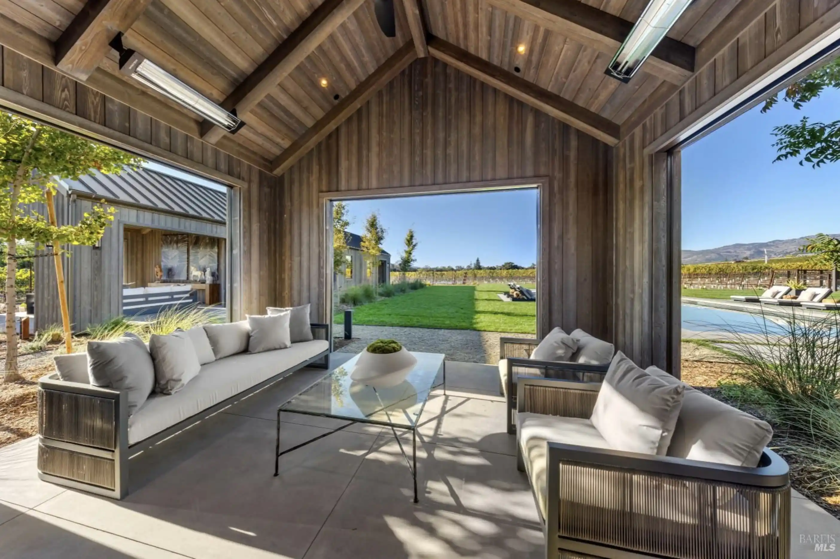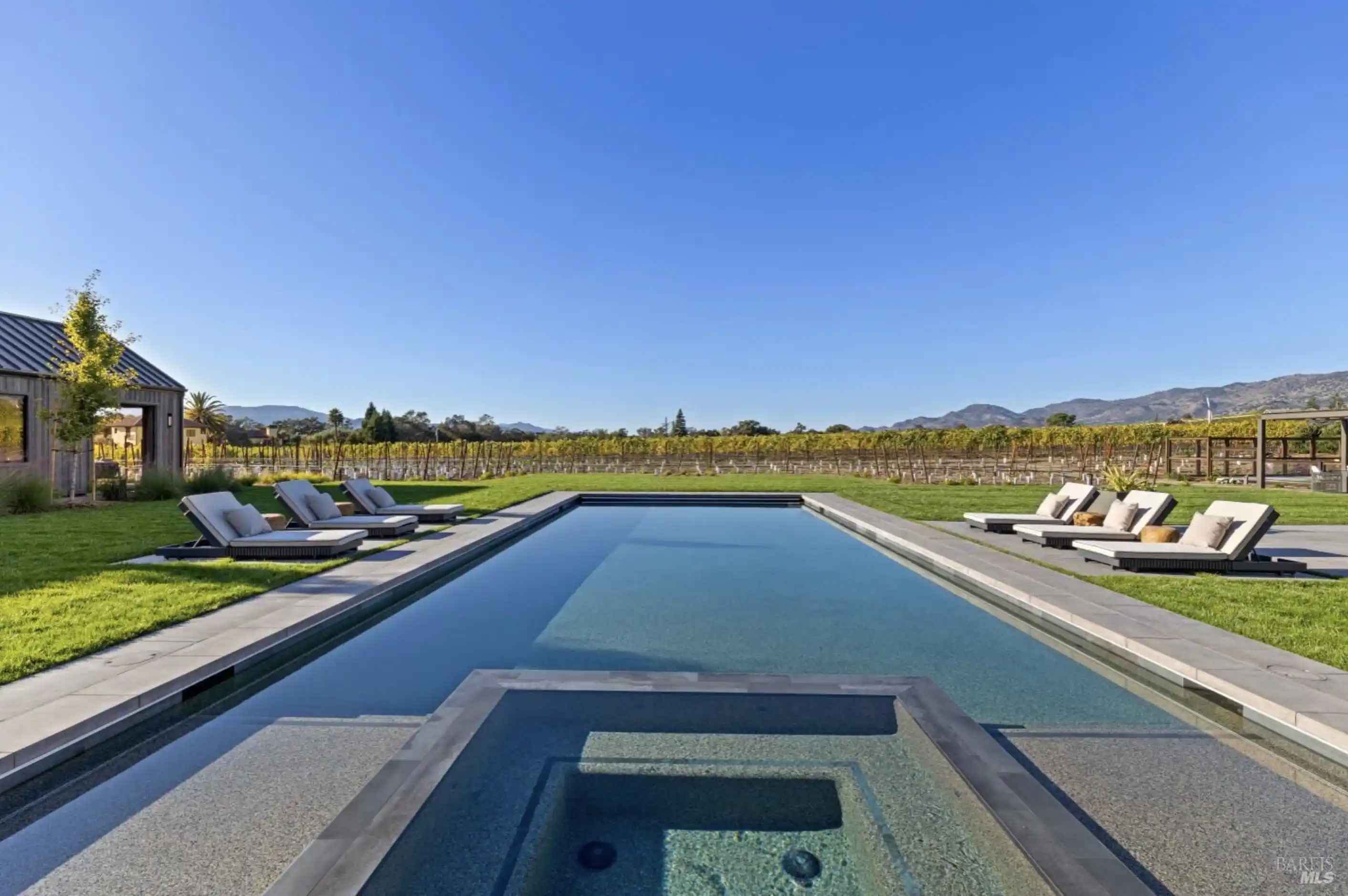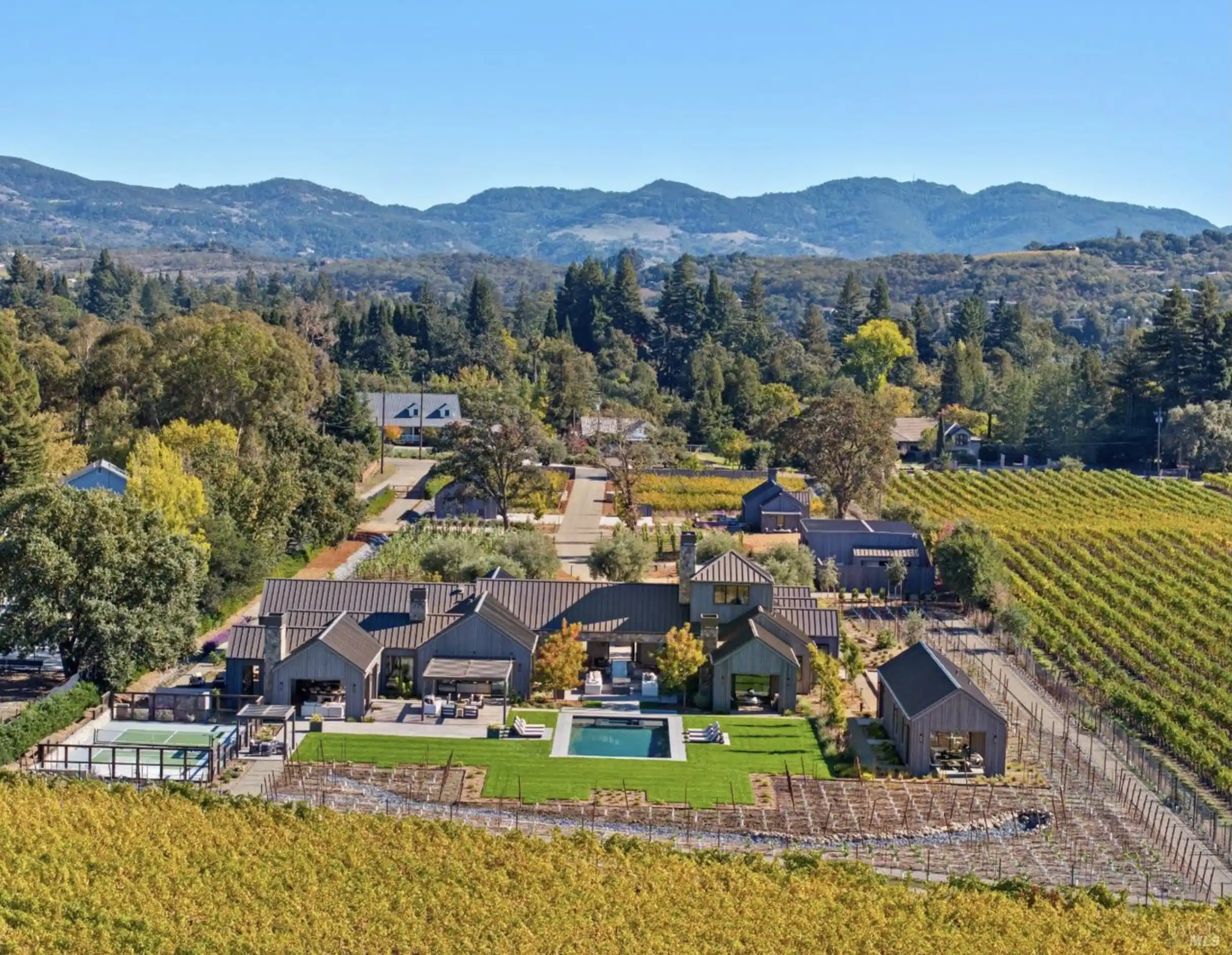Set on five private acres at the end of a long gated drive, this newly constructed Napa Valley compound redefines modern wine country living. Collaboratively envisioned by architect Alan Page and Bette Abbott Interior Design and completed in October 2025 by renowned builder Vine Homes. The grounds encompass an impressive main residence with two attached garages, two guest houses, and two separate garages - one designed for the avid car collector or the ideal entertainment barn. Designed for grand-scale entertaining and relaxed wine country living, the expansive interiors open to a series of outdoor spaces that celebrate the region's signature indoor-outdoor lifestyle. Recreational amenities include a pickleball court, bocce court, fitness area, pool and spa, a covered pool lounge with an outdoor kitchen and bar, and a private trail that extends around the perimeter of the property. 1.5 acres of Cabernet Sauvignon vines and raised culinary gardens. An iconic residence of rare craftsmanship and vision, where every line, finish, and proportion reflects an unwavering commitment to design, quality, and technology. High-speed fiber optic internet, radiant floors, zoned AC, outdoor heaters, and warm floors in the covered patios and loggias.Co-listed with Erin Lail, DRE# 02027696, Coldwell Banker