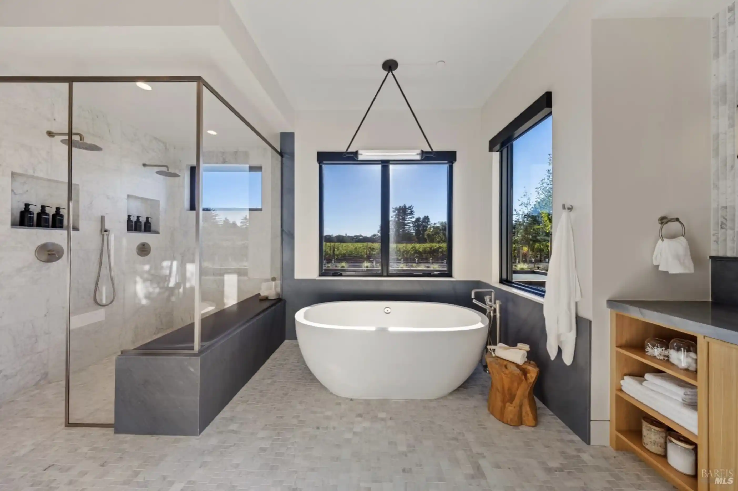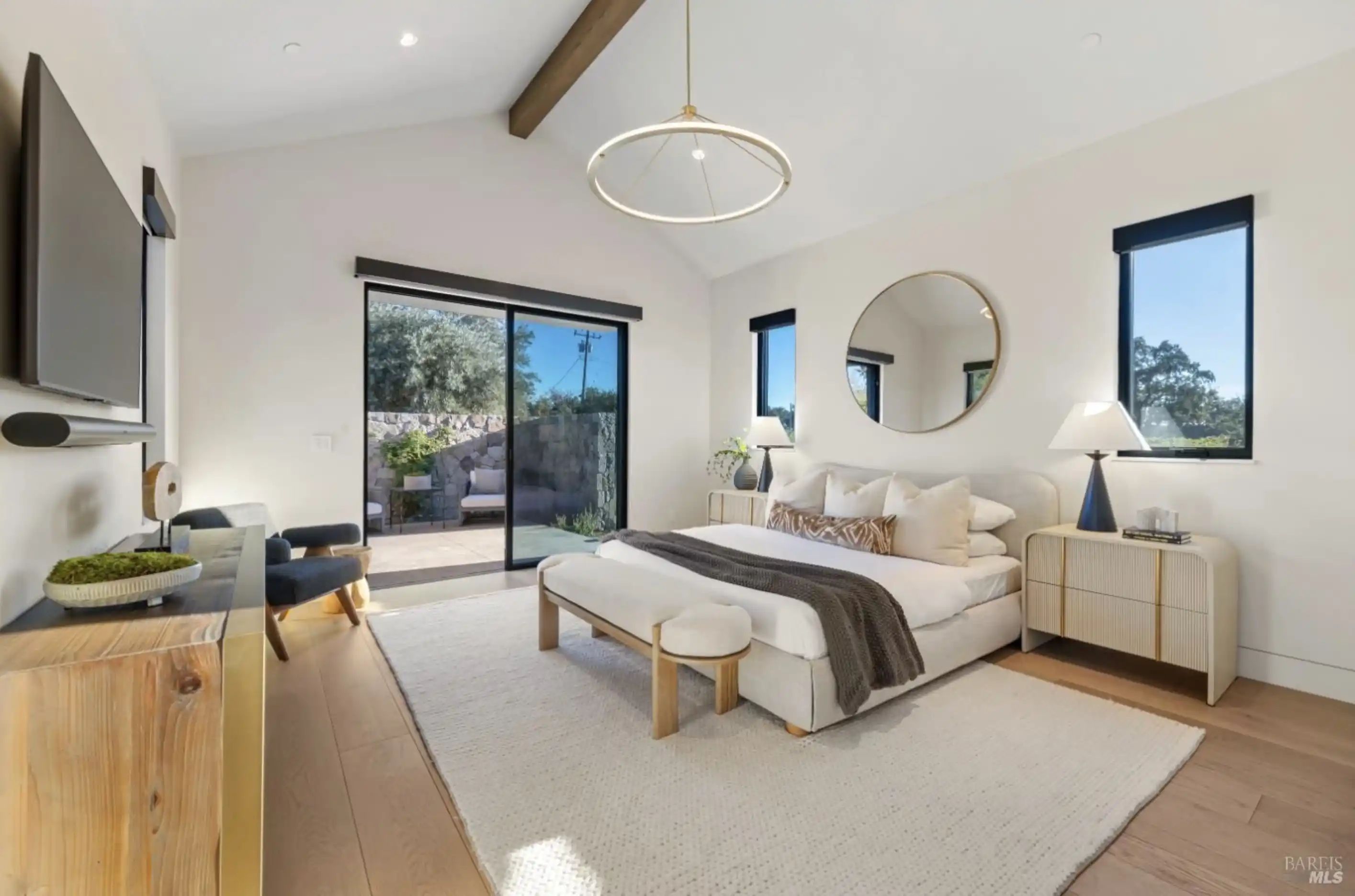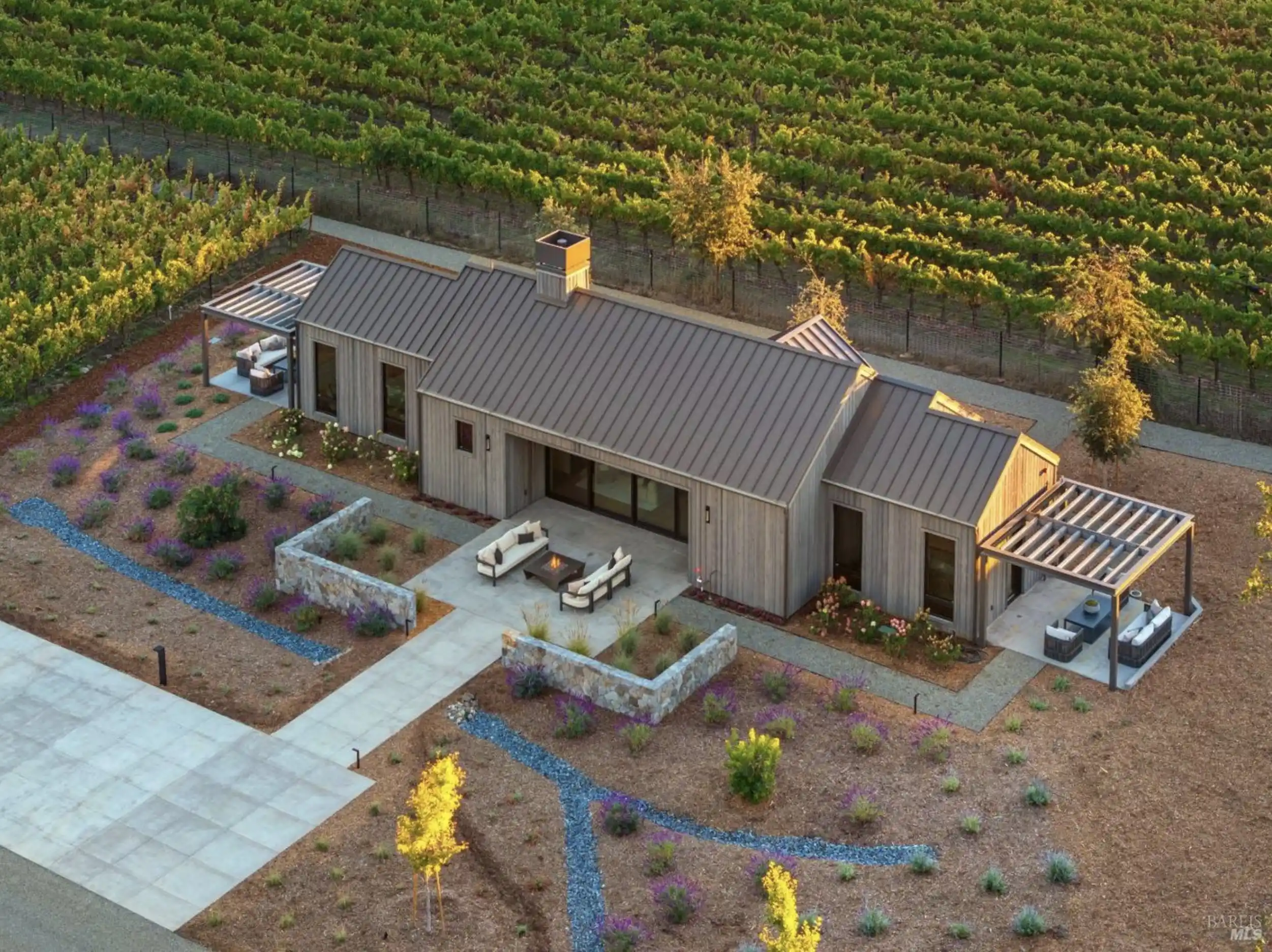 Set on five private acres at the end of a long gated drive, this newly constructed Napa Valley compound redefines modern wine country living. Collaboratively envisioned by architect Alan Page and Bette Abbott Interior Design and completed in October 2025 by renowned builder Vine Homes.