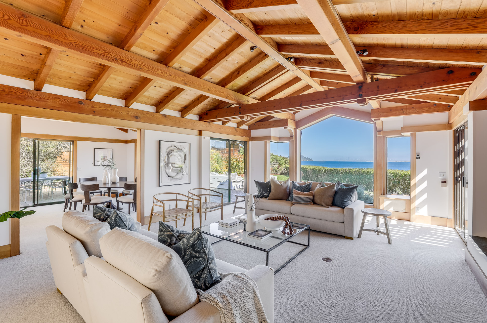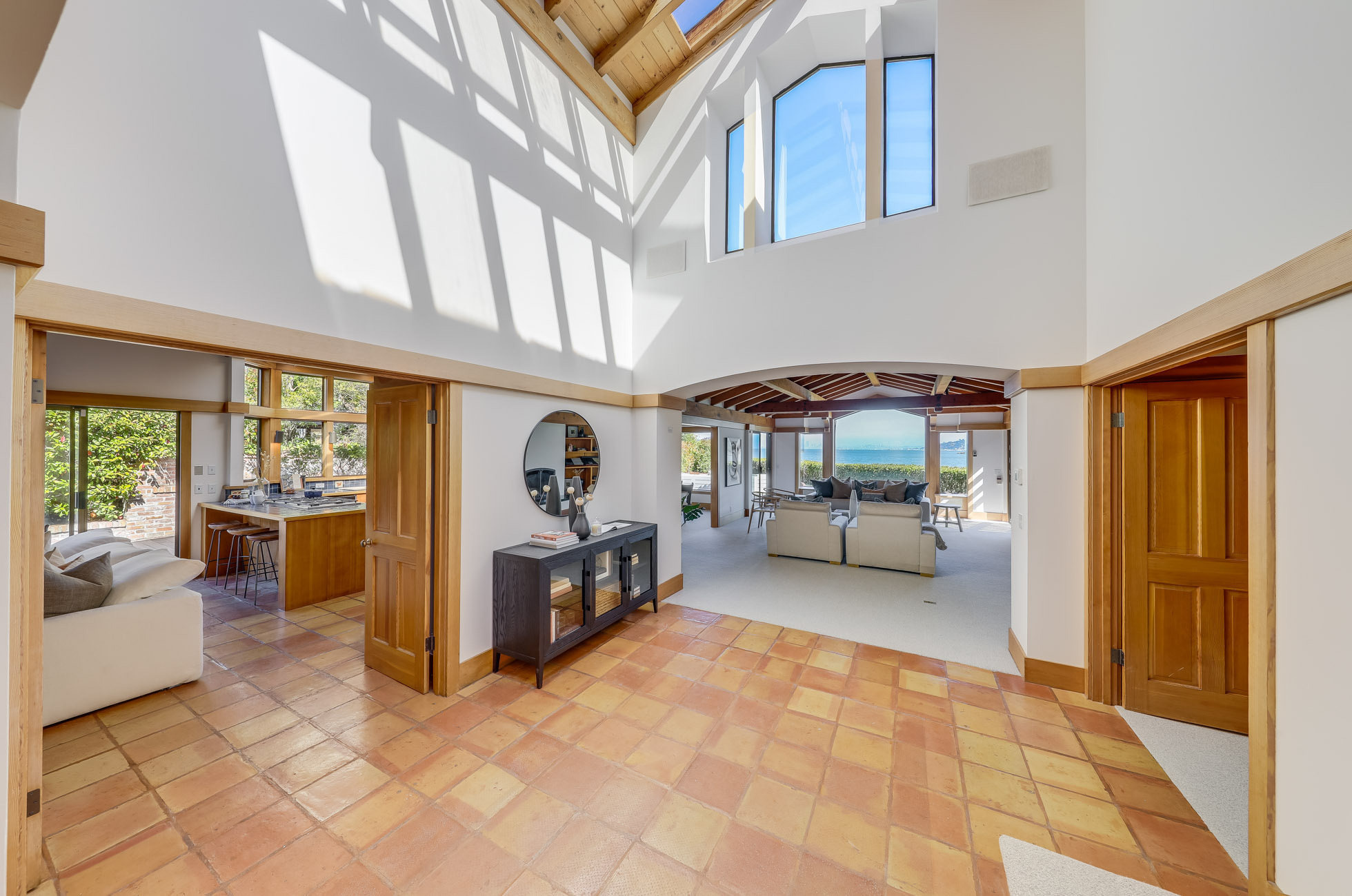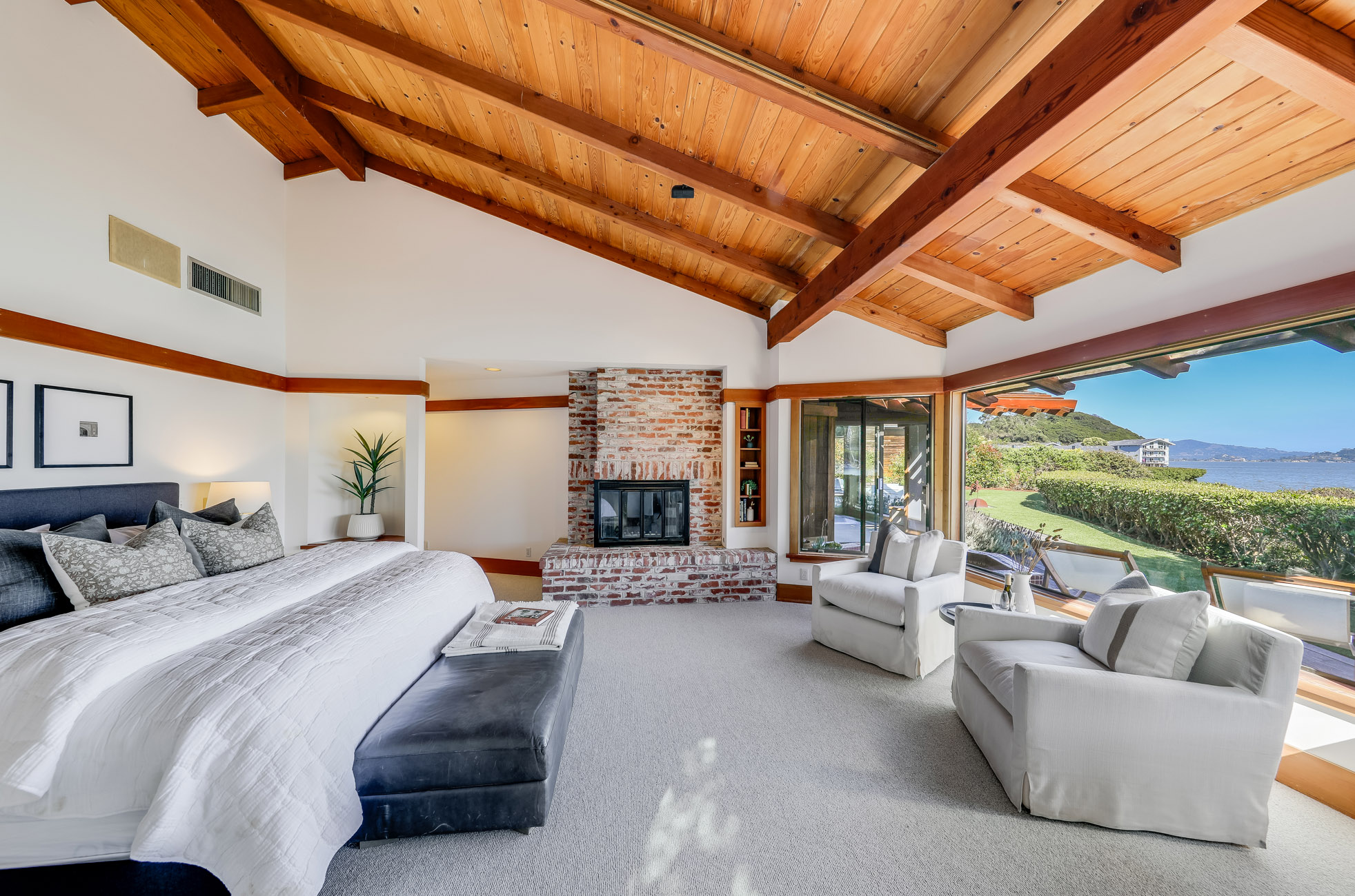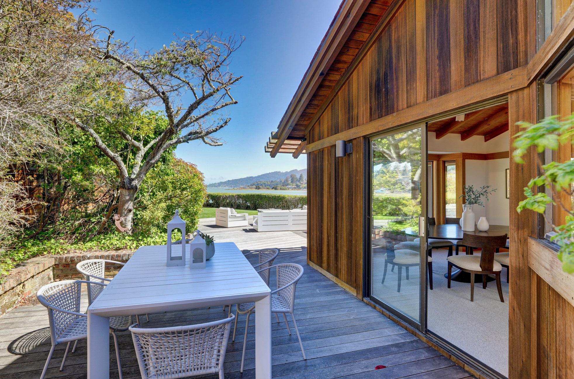 Situated on nearly half an acre on one of Belvedere Island’s most sought-after west side streets, Crest Road, this extraordinary mid-century single-story residence boasts a level and private site, an easy layout, and sweeping views of Sausalito, Richardson Bay, Mount Tamalpais, the Golden Gate Bridge towers, and the surrounding vistas.
