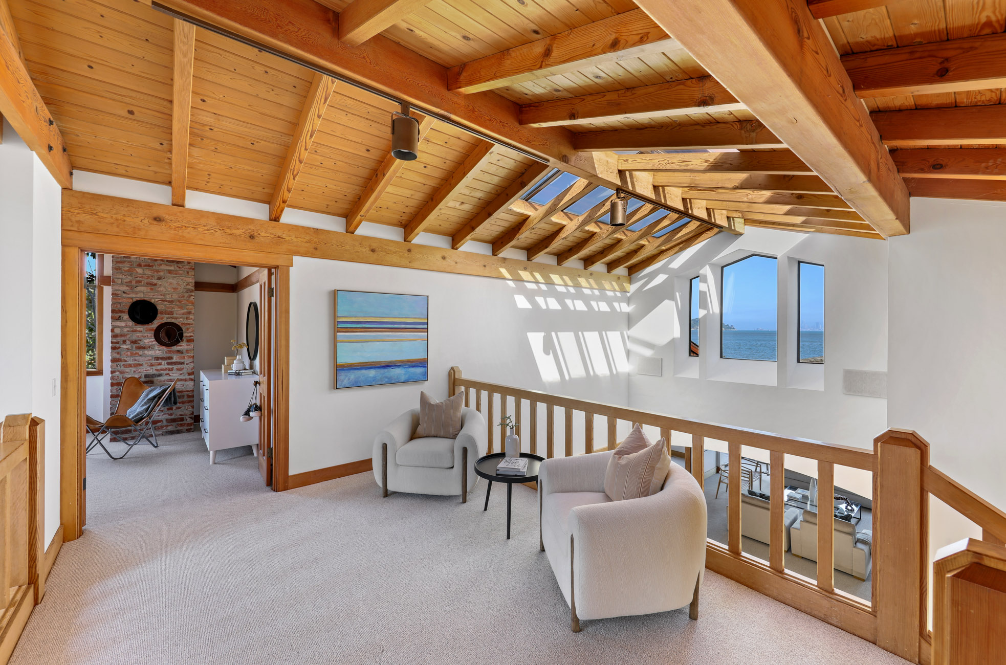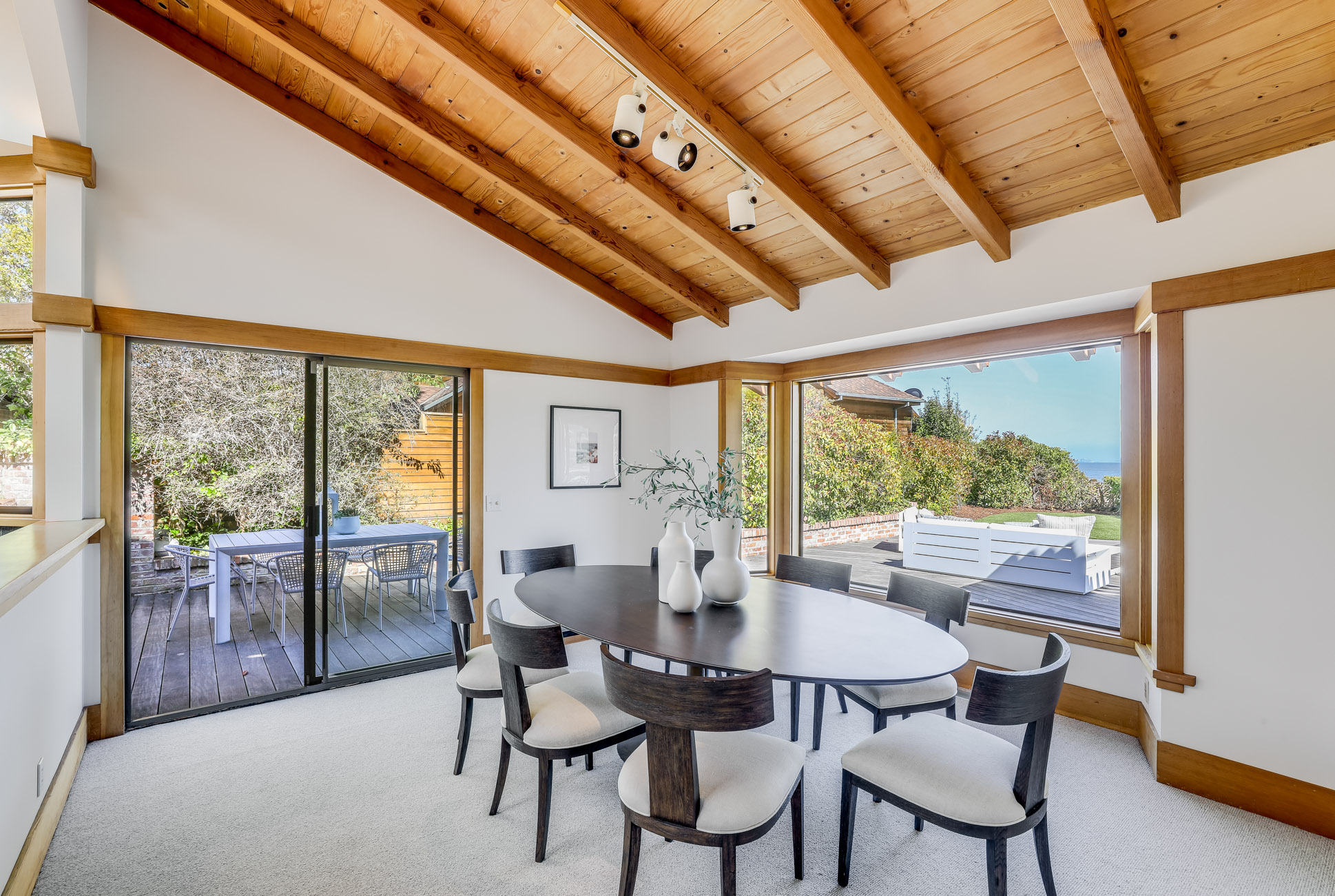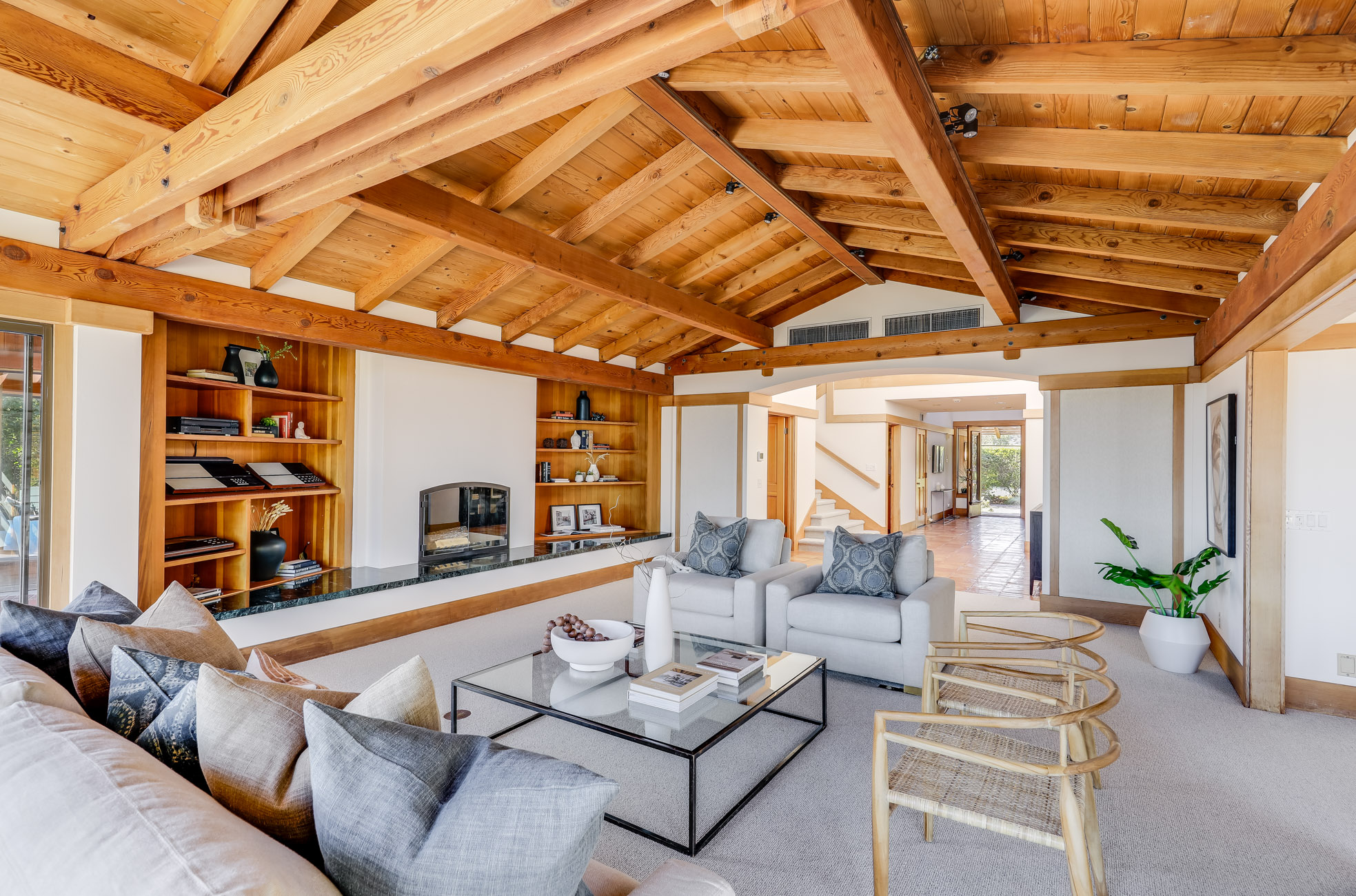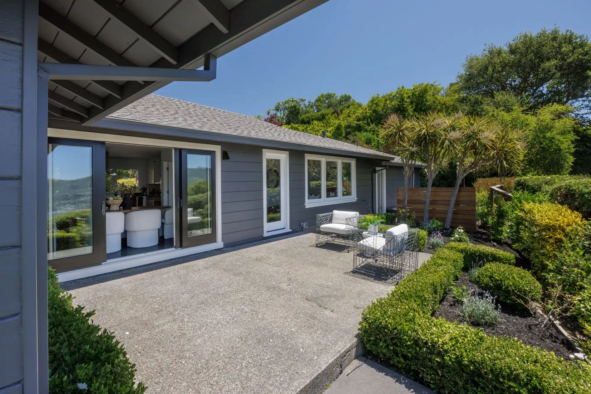 Situated on nearly half an acre on one of Belvedere Island’s most sought-after west side streets, Crest Road, this extraordinary mid-century single-story residence boasts a level and private site, an easy layout, and sweeping views of Sausalito, Richardson Bay, Mount Tamalpais, the Golden Gate Bridge towers, and the surrounding vistas.