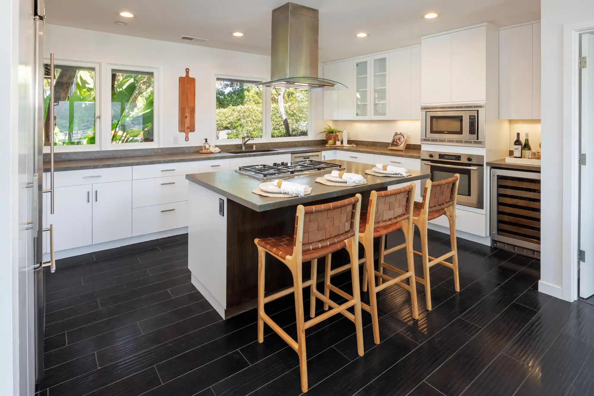 This luxury home is available fully furnished An architectural masterpiece in the guard-gated enclave of Ascaya, 14 Sanctuary Peak Court embodies modern luxury and resort-style living. A private courtyard with a glowing fireplace leads to a dramatic pivot entry, unveiling soaring ceilings, a floating staircase, and a porcelain-clad fireplace wall.