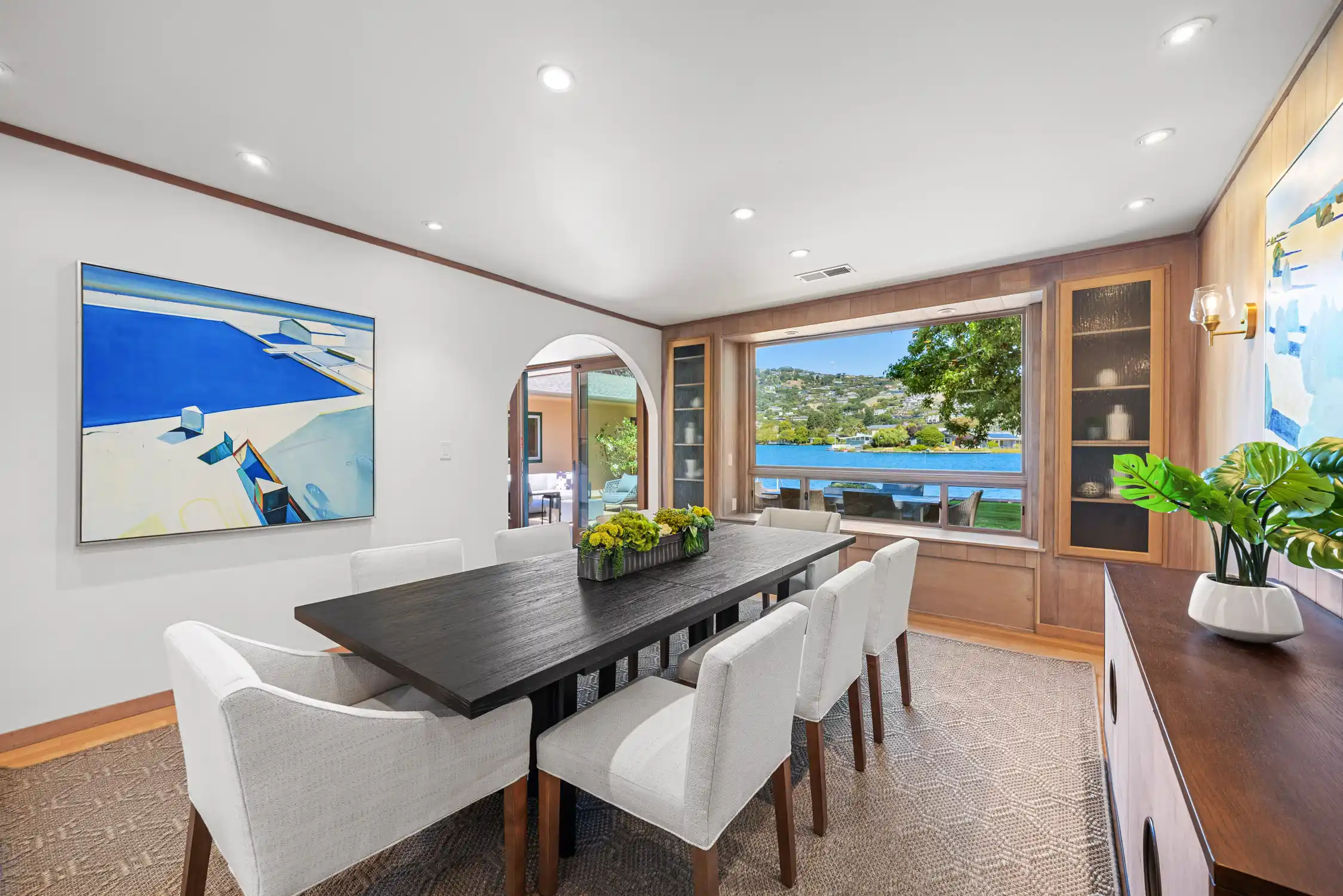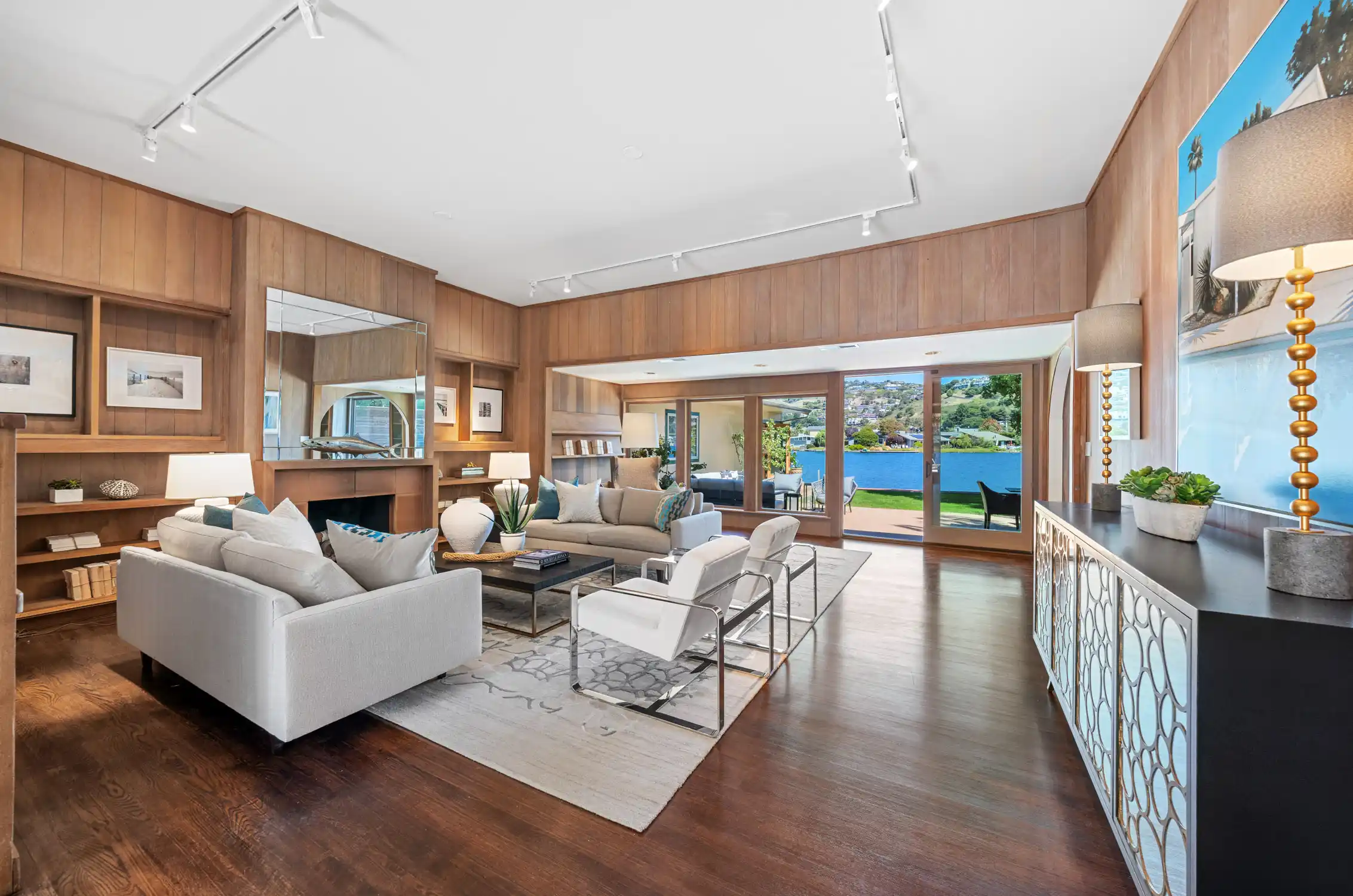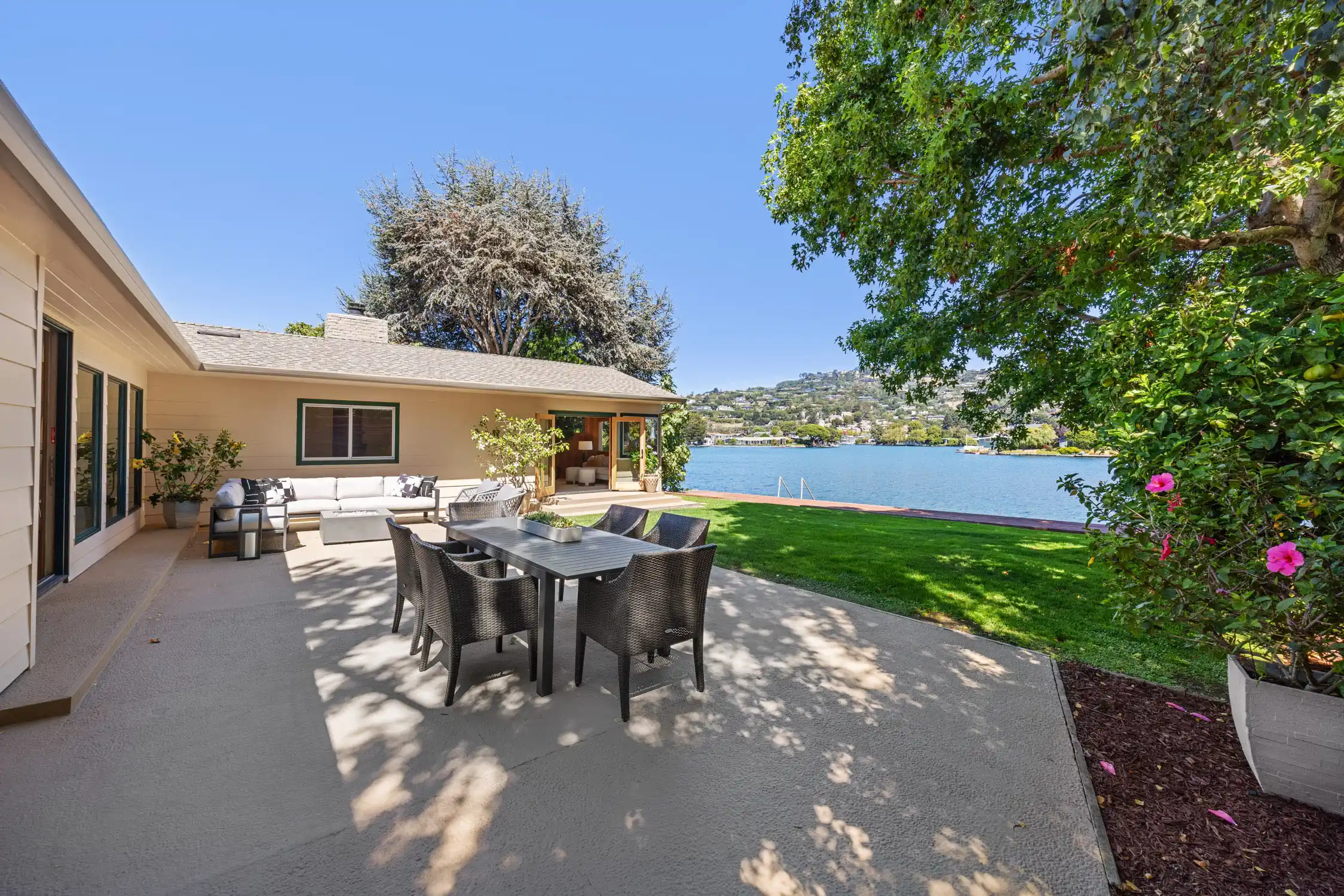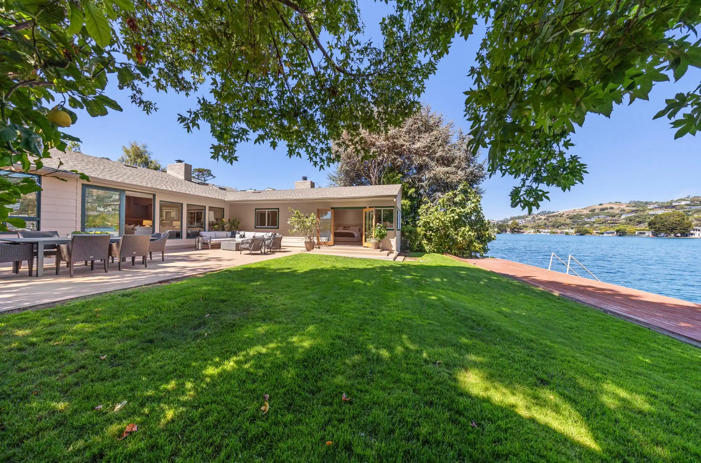 Spectacular single level waterfront retreat on the Belvedere Lagoon offering exceptional outdoor living and picturesque water views.This Belvedere gem is a haven for entertainers, offering an unparalleled indoor-outdoor connection featuring a gated courtyard with a sunny patio, pool, spa, an outdoor shower, a recreation room with guest bedroom and bath, an entertainment terrace, lush lawn, a dock, and picturesque views of the Belvedere Lagoon and the rolling hills of Tiburon.This special home has been meticulously maintained and cared for by the same family for the past 51 years.The architecturally dramatic living room boasts hardwood floors, high ceilings, wood-paneled walls, built-in cabinetry, a gas-start fireplace, large windows, stunning views of the lagoon, and sliding glass doors opening to the backyard.The light and bright family room embodies the mid-century modern aesthetic, featuring hardwood floors, “cove” ceilings, built-in bench seating, oversized windows, built-in cabinetry, an arched doorway, and sliding glass doors opening to the sunny courtyard and pool.Updated chef’s kitchen featuring rare granite slab countertops and backsplash, hardwood floors, an impressive center island with a waterfall edge, a skylight, recessed lighting, extensive built-in cabinetry, a separate exterior entrance, and high-end stainless steel appliances.Positioned to provide a captivating view of the scenic backdrop, the dining room offers great scale and volume, featuring hardwood floors, recessed lighting, wood-paneled accent walls, built-in bench seating, and glass-paneled built-in cabinetry.The expansive primary suite offers new plush carpeting, open-beamed ceilings, a gas-start fireplace, built-in cabinetry, multiple closets, large windows framing mesmerizing views of the lagoon and the rolling hills of Tiburon, and French doors opening to the sunny backyard; large primary bathroom featuring a stall shower, a soaking tub, and two separate vanities.The third bedroom features new carpeting, great closet space, wonderful natural lighting, and recessed lighting.A full bathroom, shared by the second and third bedrooms, showcases blue tile flooring, a vanity with dual sinks, a skylight, and a spacious stall shower.An incredible pool house with a private entrance features vaulted ceilings, new carpeting, and a fourth bedroom with a full bathroom.Two-car covered carport.One of the best locations on the lagoon, close to Belvedere Park and the San Francisco Yacht Club, minutes to the Old Rail Trail waterfront pathway, and a few blocks to downtown Tiburon’s Main Street with San Francisco and Angel Island ferry service, waterfront restaurants, and trendy shops.