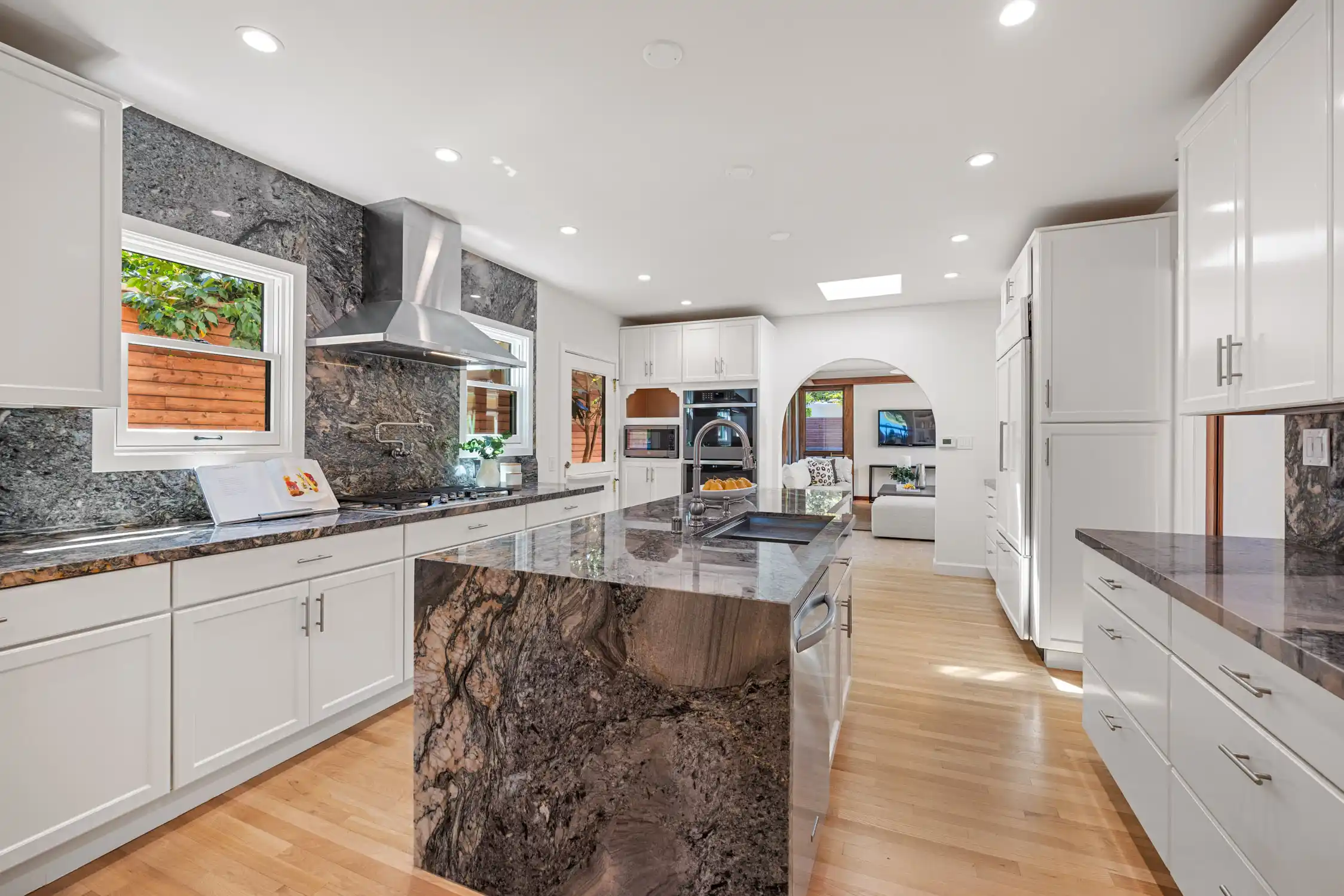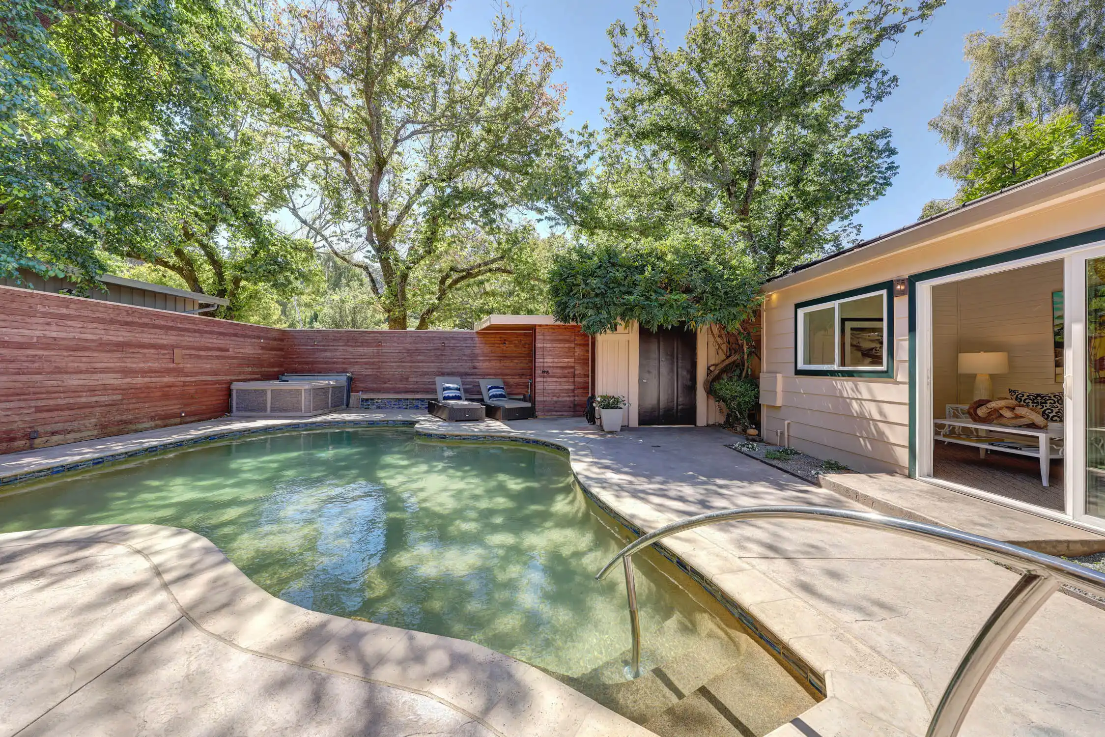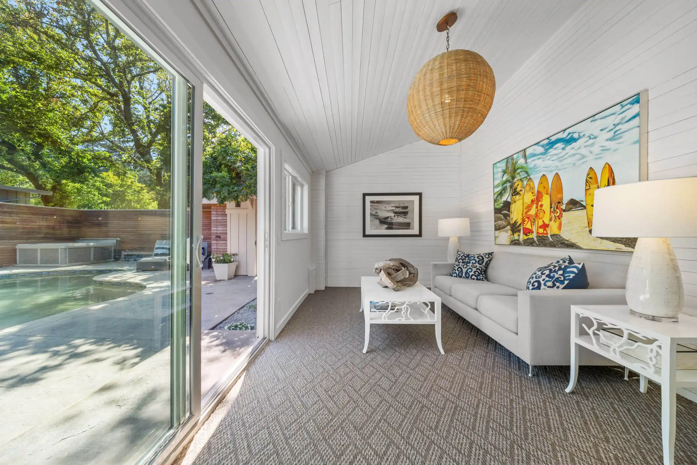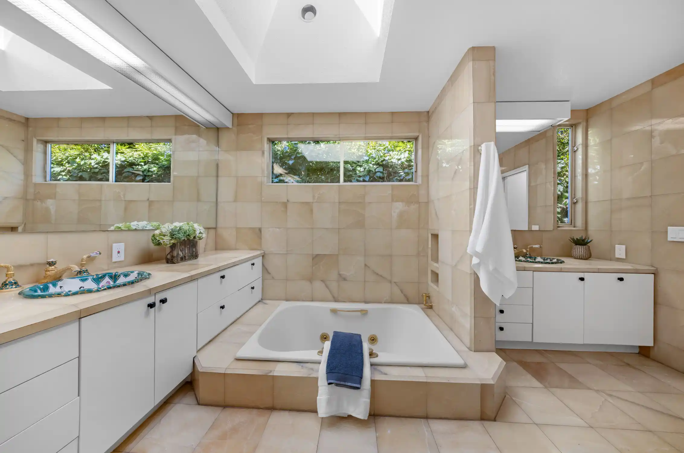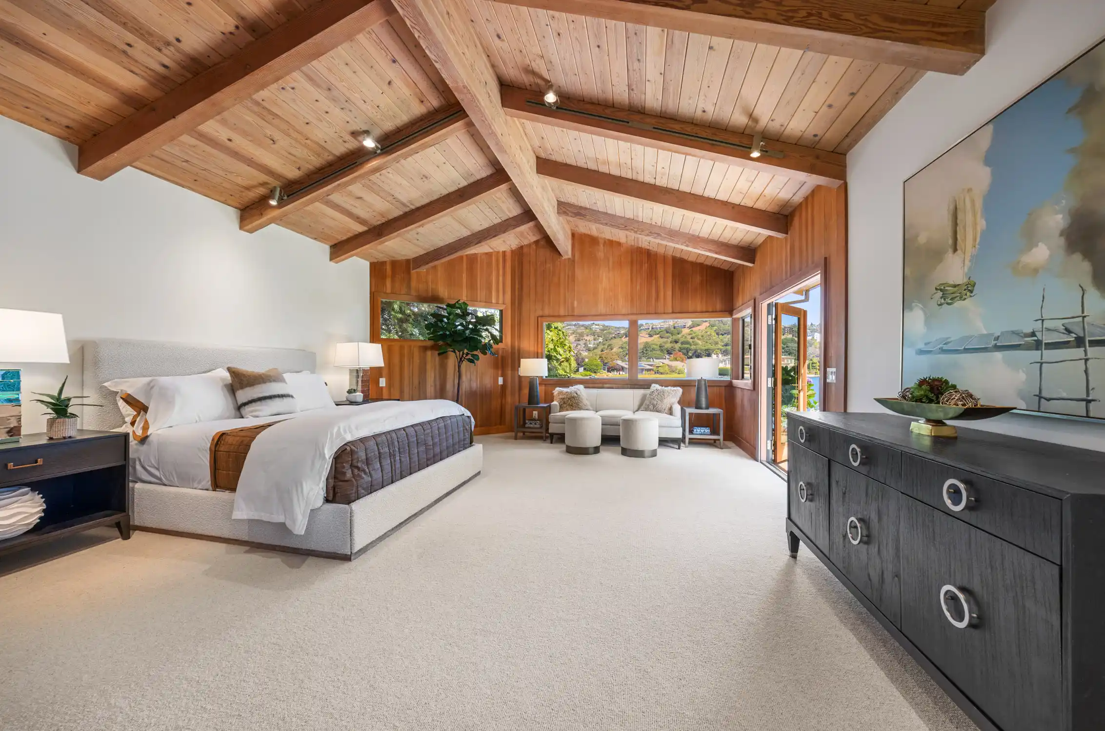 Spectacular single level waterfront retreat on the Belvedere Lagoon offering exceptional outdoor living and picturesque water views.This Belvedere gem is a haven for entertainers, offering an unparalleled indoor-outdoor connection featuring a gated courtyard with a sunny patio, pool, spa, an outdoor shower, a recreation room with guest bedroom and bath, an entertainment terrace, lush lawn, a dock, and picturesque views of the Belvedere Lagoon and the rolling hills of Tiburon.This special home has been meticulously maintained and cared for by the same family for the past 51 years.The architecturally dramatic living room boasts hardwood floors, high ceilings, wood-paneled walls, built-in cabinetry, a gas-start fireplace, large windows, stunning views of the lagoon, and sliding glass doors opening to the backyard.The light and bright family room embodies the mid-century modern aesthetic, featuring hardwood floors, “cove” ceilings, built-in bench seating, oversized windows, built-in cabinetry, an arched doorway, and sliding glass doors opening to the sunny courtyard and pool.Updated chef’s kitchen featuring rare granite slab countertops and backsplash, hardwood floors, an impressive center island with a waterfall edge, a skylight, recessed lighting, extensive built-in cabinetry, a separate exterior entrance, and high-end stainless steel appliances.Positioned to provide a captivating view of the scenic backdrop, the dining room offers great scale and volume, featuring hardwood floors, recessed lighting, wood-paneled accent walls, built-in bench seating, and glass-paneled built-in cabinetry.The expansive primary suite offers new plush carpeting, open-beamed ceilings, a gas-start fireplace, built-in cabinetry, multiple closets, large windows framing mesmerizing views of the lagoon and the rolling hills of Tiburon, and French doors opening to the sunny backyard; large primary bathroom featuring a stall shower, a soaking tub, and two separate vanities.The third bedroom features new carpeting, great closet space, wonderful natural lighting, and recessed lighting.A full bathroom, shared by the second and third bedrooms, showcases blue tile flooring, a vanity with dual sinks, a skylight, and a spacious stall shower.An incredible pool house with a private entrance features vaulted ceilings, new carpeting, and a fourth bedroom with a full bathroom.Two-car covered carport.One of the best locations on the lagoon, close to Belvedere Park and the San Francisco Yacht Club, minutes to the Old Rail Trail waterfront pathway, and a few blocks to downtown Tiburon’s Main Street with San Francisco and Angel Island ferry service, waterfront restaurants, and trendy shops.
