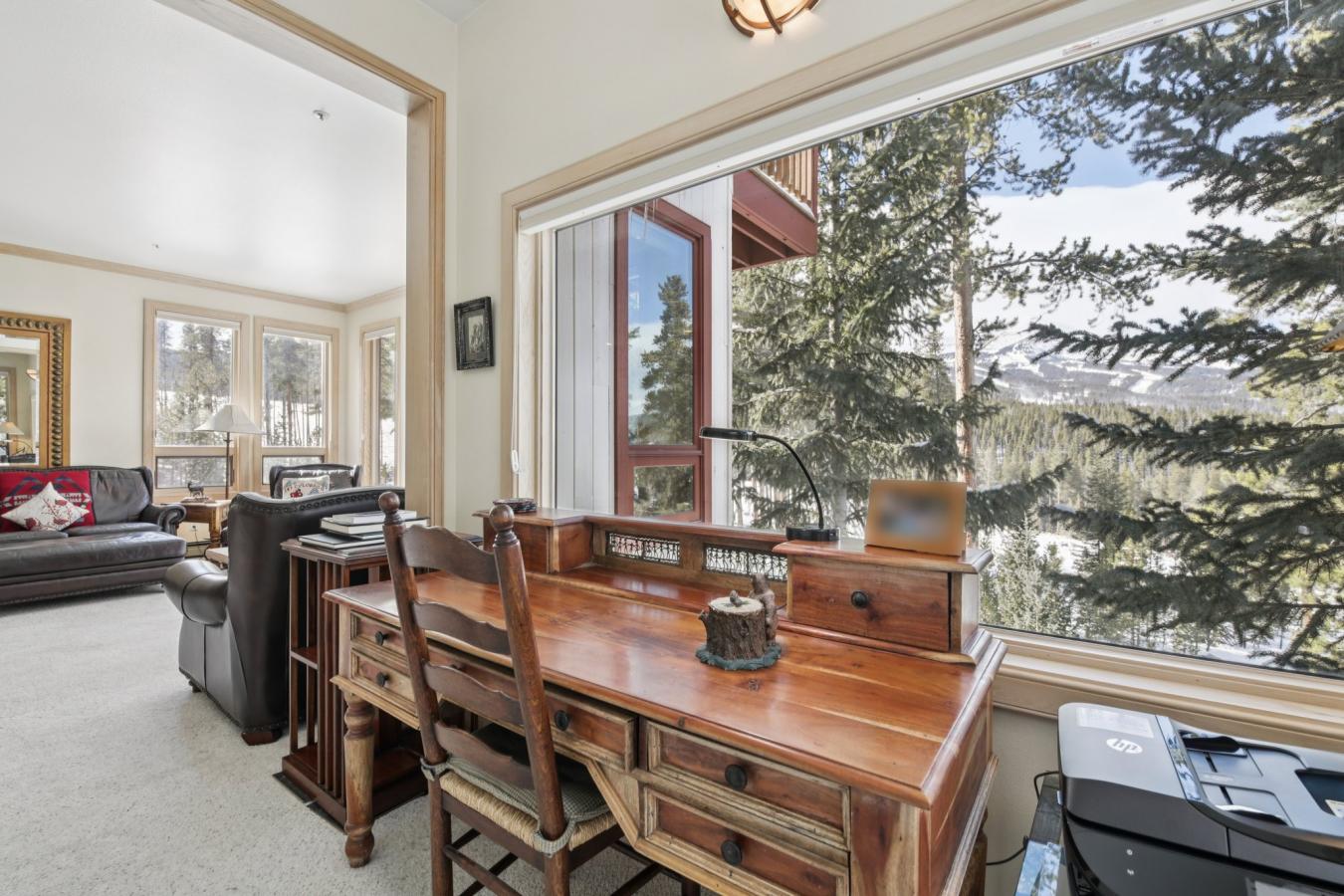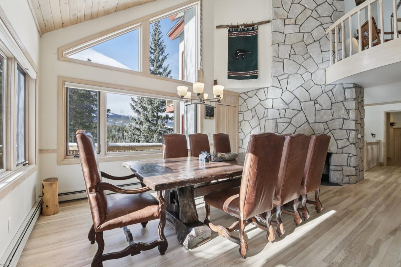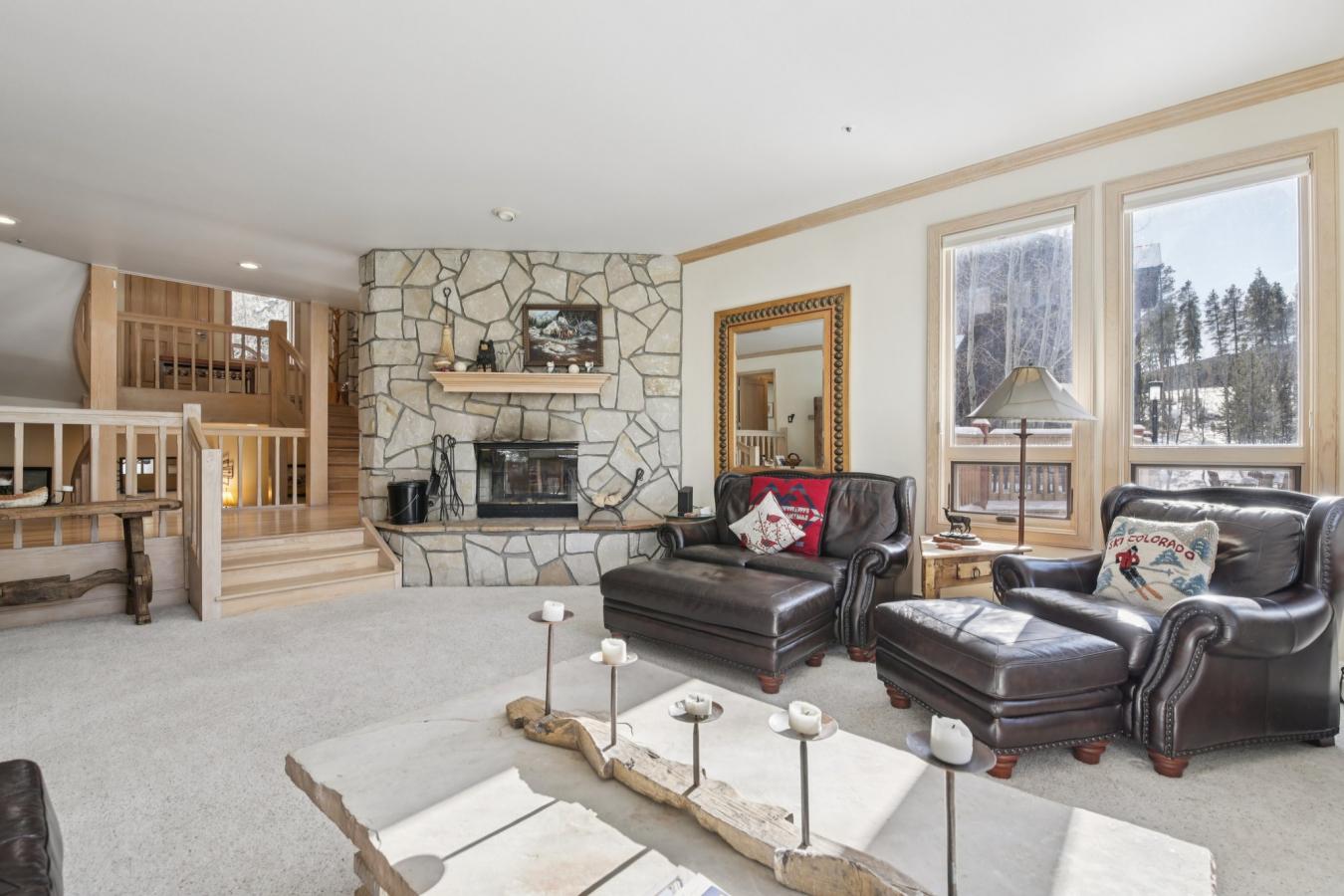 A rare ski-in/ski-out retreat tucked against National Forest, this exceptional home blends mountain grandeur with seamless ski access via a neighborhood trail and sweeping Breckenridge Ski Area views. A European-inspired masterpiece built by legendary Breckenridge ski pioneer Sigurd Rockne, it also offers outstanding convenience with the free town bus stop just 75 feet from the front door. Offering exceptional privacy and panoramic vistas from nearly every room, the 5,319-square-foot residence features five bedrooms (four en-suite), two additional baths, three living areas, and three expansive decks. Warm wood floors, hand-laid stone, and both wood-burning and gas fireplaces create a timeless alpine atmosphere. The dramatic top-floor primary suite is a private sanctuary with its own fireplace, wet bar, dedicated deck, dual walk-in closets, and a luxurious five-piece bath framed by mountain views. The heart of the home is the gourmet kitchen and great room-soaring 20-foot vaulted ceilings, seating for up to 17, Peak 10 views, a wood-burning fireplace, and direct deck access make it ideal for entertaining. A second main-level primary suite offers flexible living for guests or main-floor convenience. The lower level includes three additional bedrooms, two family rooms, and walk-out access to a private hot tub perfectly positioned for aprs-ski relaxation. Additional highlights include a two-car garage, ample storage, a large utility room, and recent updates including a newer roof, boiler, and refreshed decking. Ideal as a primary residence, luxury mountain retreat, or executive escape, this is a rare opportunity to own true ski-in/ski-out living in one of Breckenridges most coveted settings.