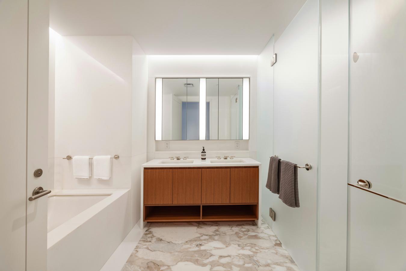 The Best of Upper East Side Living. Apartment 11D, at almost 2,500 square feet, is a high floor three-bedroom home that is south facing with floor to ceiling windows. This apartment has been highly customized featuring high end aftermarket finishes that make moving in not only turnkey, but also a dream. And dont forget, there are no sponsor fees for this purchase. Enter into a grand oversized foyer, featuring custom wallpaper and lighting, leading you to the open living space. You are immediately greeted by floor to ceiling southern facing windows illuminating both the living and dining rooms. The large living room is the perfect gathering place to watch your favorite show or entertain friends. Open to the living room is a dining room perfect for hosting great dinner parties or just a casual dinner after work. This open living space is anchored by an enormous open kitchen with a huge marble island. The kitchen features a suite of Gaggenau appliances, including 3 wall ovens, gas cooktop, warming drawer, integrated refrigerator/freezer, dishwasher and dont forget the wine cooler too. The marble countertops and glass backsplash showcase the high-end finishes of this kitchen and complement the beautiful custom oak cabinetry. The apartment has an ultra-private primary suite with floor to ceiling windows both with electronic blackout shades and custom drapery. There is a five-piece primary marble bath with heated flooring. The two large walk-in closets, outfitted by California Closets, are the perfect complement to this perfect primary suite. There are two additional bedrooms each with an en-suite bath, electronic blackout shades and custom drapery. Each of the bedroom closets feature newly installed "soft close" sliding doors to maximize the bedroom spaces. There is also a marble powder room, custom oak flooring throughout, along with a full sized laundry center with additional storage. 1289 Lexington is a full-service boutique condominium with full time doorman and concierge and live-in resident manager. The amenities are beyond your expectations. They include a large and elegant lounge with a catering kitchen and outdoor terrace; a rooftop terrace with fireside seating, a kitchen with grill, and outdoor shower; a windowed fitness center designed by The Wright Fit; a fun-filled playroom with a life sized play castle; a multimedia music room; a conference room with remote meeting capabilities; private tutoring/study pods. All designed by Architectural Digest 100 Designer Lee Mindel of SheltonMindel. Dont miss this opportunity to live at 1289 Lexington in this truly bespoke home.