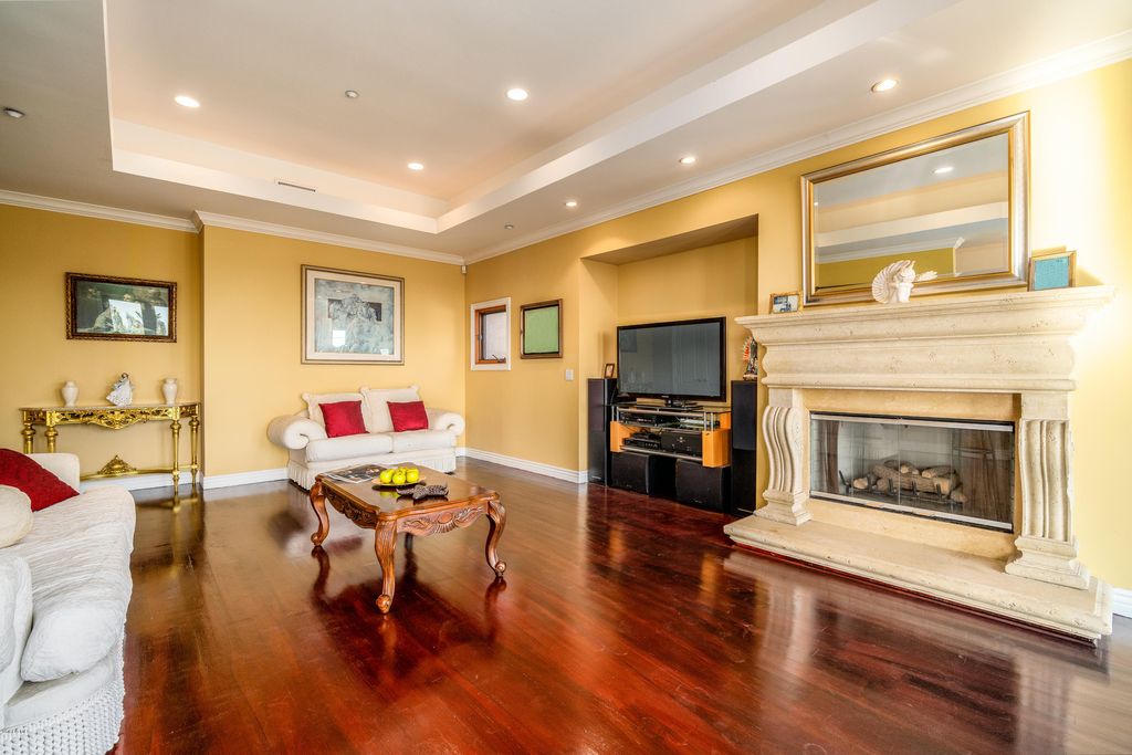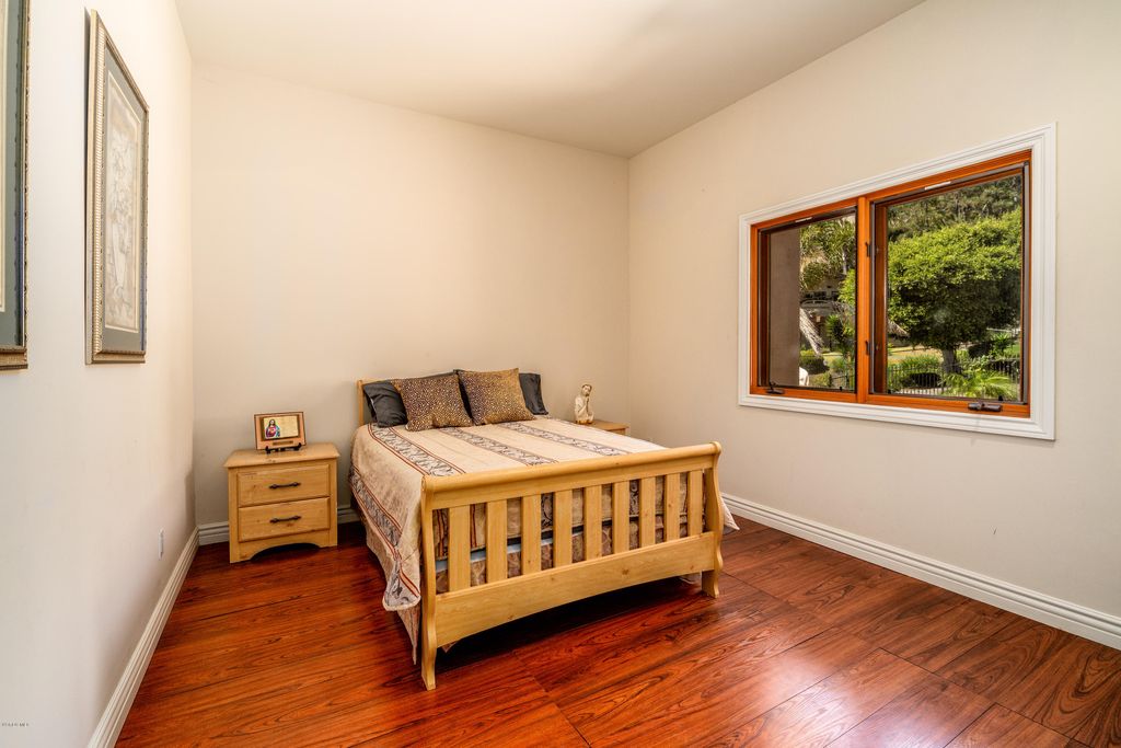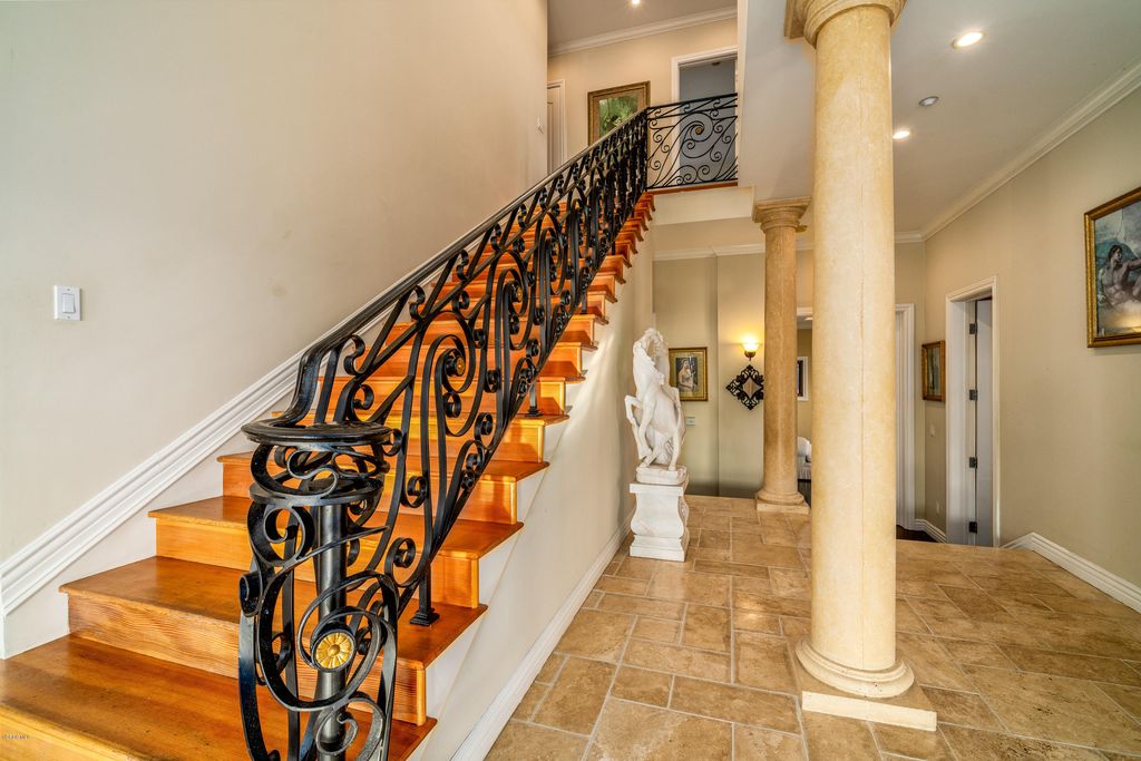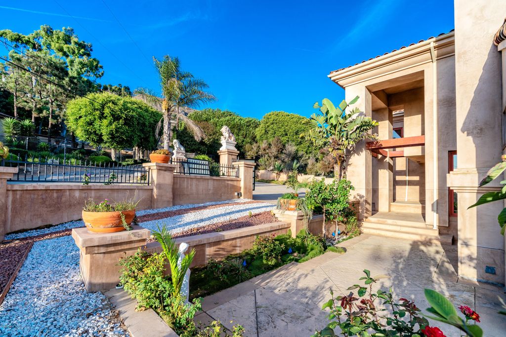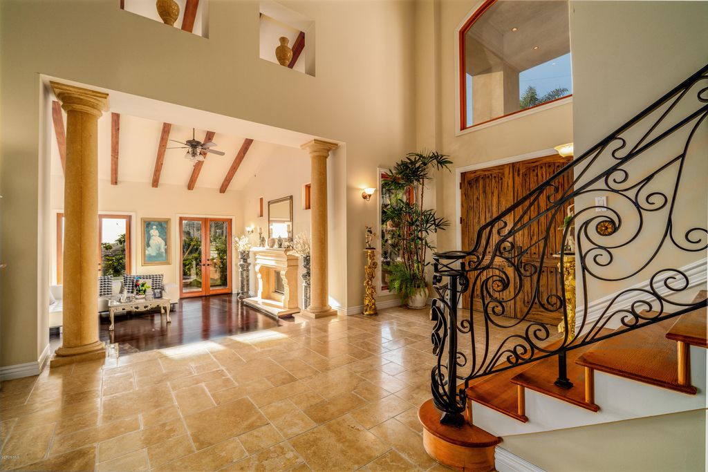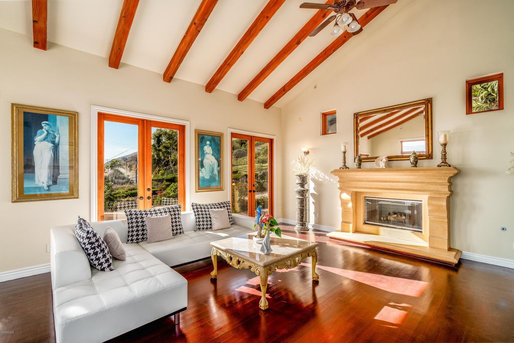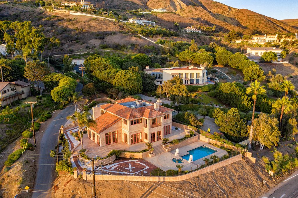 Redefining luxury living, this extraordinary residence is a true work of art from one of Los Angelesâs premier builders. Set on an acre in a gated enclave, it blends flawless design with extraordinary craftsmanship. Enter through a grand foyer with soaring ceilings into a space where architectural light meets refined comfort. Walls of glass invite in nature, seamlessly blending indoor and outdoor living. A formal dining room with a custom-built buffet establishes timeless elegance, while a sweeping family room with a striking fireplace, full bar, and walk-in wine cellar offers an entertainerâs paradise. A rich formal living room features a dual-sided fireplace and opens to a screening room for intimate, cinematic evenings. Custom French oak flooring and towering ceilings create an expansive, bright ambiance throughout. The gourmet kitchen is a chefâs dream, with top-tier appliances, meticulously crafted cabinetry, and an island poised for grand gatherings. On the main level, discover a guest suite with a stunning bath and a magazine-worthy powder room. Upstairs, the primary suite is a serene sanctuary-an intimate retreat with a cozy fireplace and sliding doors to a balcony overlooking the stunning backyard. The spa-like primary bath offers an extra-wide shower for two, elegant stone surfaces, a Japanese soaking tub, and two walk-in closets that evoke a boutique-hotel experience. Three additional generous bedrooms and three refined baths, plus a bright office space, provide abundant living areas. A four-car garage accommodates multiple vehicles and lifestyle needs. Outside, the backyard unfolds like a resort: a pool and spa, a barbecue area, expansive lawns, and meticulously landscaped grounds-all framed by the Santa Monica mountains. Located in a picturesque, gated enclave with direct access to hiking, biking, and equestrian trails, yet minutes from beaches, premier shopping, and fine dining, this property embodies the pinnacle of contemporary living. Every detail has been thoughtfully crafted for the most discerning buyer. Make this exceptional residence your own and elevate your lifestyle to new heights.