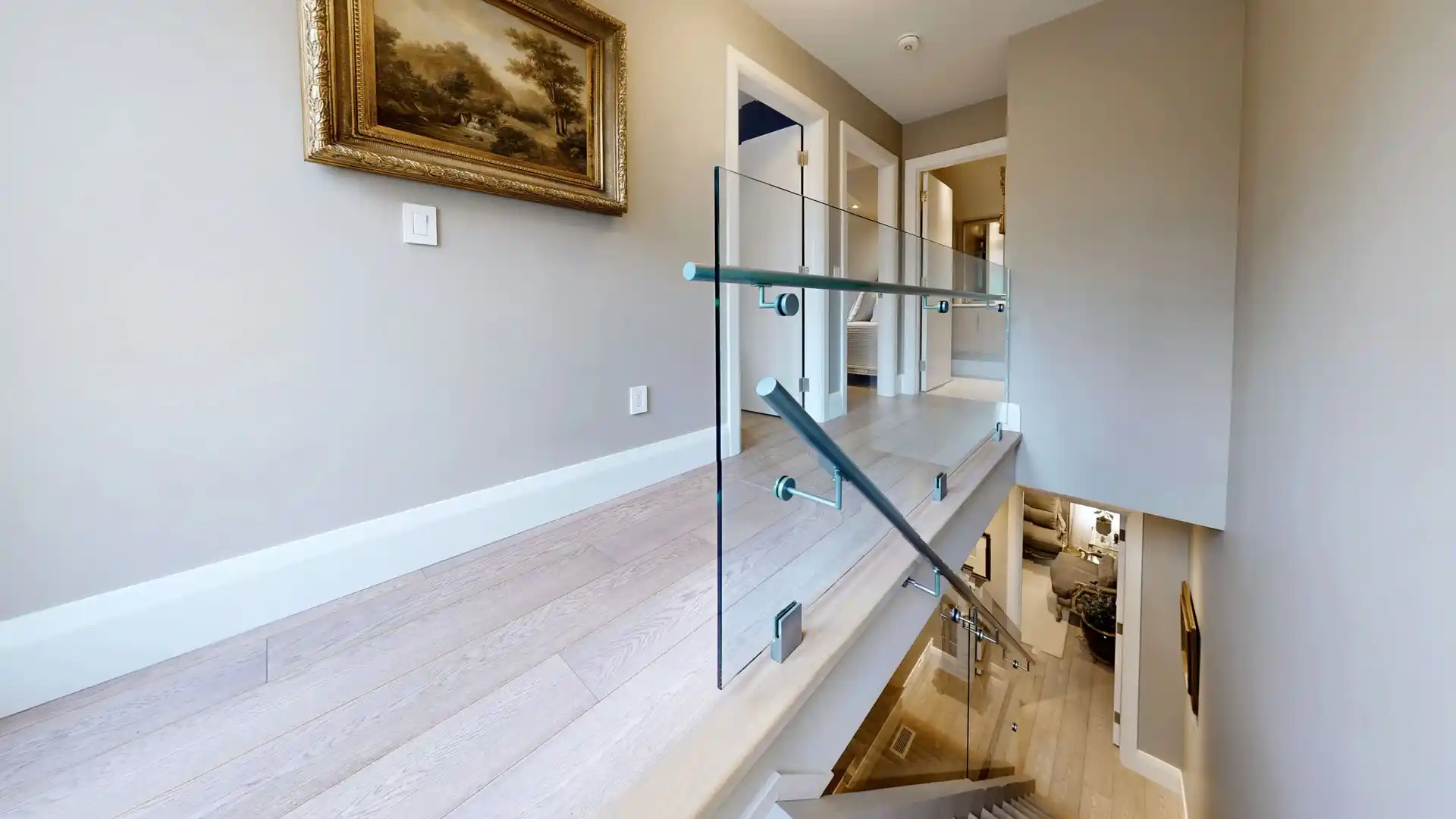 Discover this custom-built masterpiece in prestigious Mineola on a premium 75 x 100 ft lot. Designed for comfort and sophistication, this stunning residence boasts 42 bedrooms, 4.5 bathrooms, and over 4,700 sq. ft of beautifully finished living space across three levels. Step through the front entry to soaring coffered ceilings, wide-plank engineered hardwood floors, and a floating spiral staircase wrapped in natural light. The main level integrates design and function with built-in speakers, ambient LED cove lighting, and oversized picture windows that creates a warm yet modern aesthetic. The formal open concept dining room offers backyard views, while the family room is defined by a full-height book-matched fireplace wall that adds architectural charm.The chefs kitchen is both beautiful and efficient, featuring an oversized waterfall quartz island, integrated panelled appliances, and a custom cabinetry. Upstairs, four spacious bedrooms offer walk-in closets and either private or shared ensuite access. The primary suite is a serene escape with tray ceilings, ambient lighting, and a spa-inspired 5-piece ensuite that includes heated floors, a freestanding tub, and a glass shower with gold trim.The finished lower level, accessible via a private walk-up, offers two additional bedrooms, a full kitchen with rough-ins for integrated appliances, a wet bar, and a large family room, ideal for multigenerational living, rental income guest accommodations. Two cold rooms provide additional storage and functionality. Exterior highlights include a double garage, professionally landscaped grounds, and a private driveway for convenient parking. Situated in a prime location close to top-rated schools, waterfront parks/trails, quick access to the QEW, Highway 403 and more!