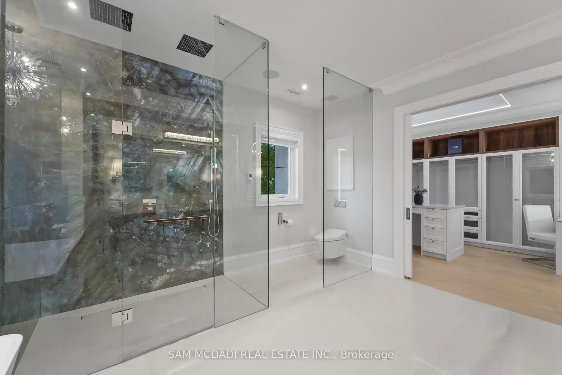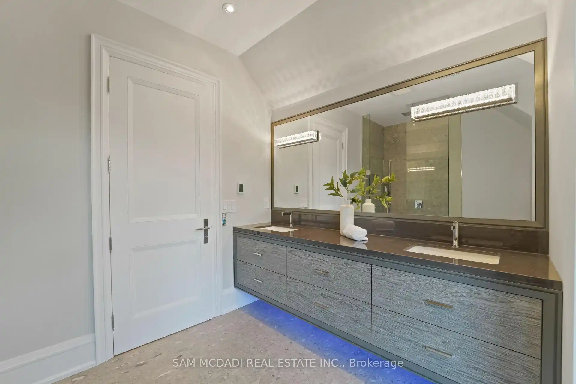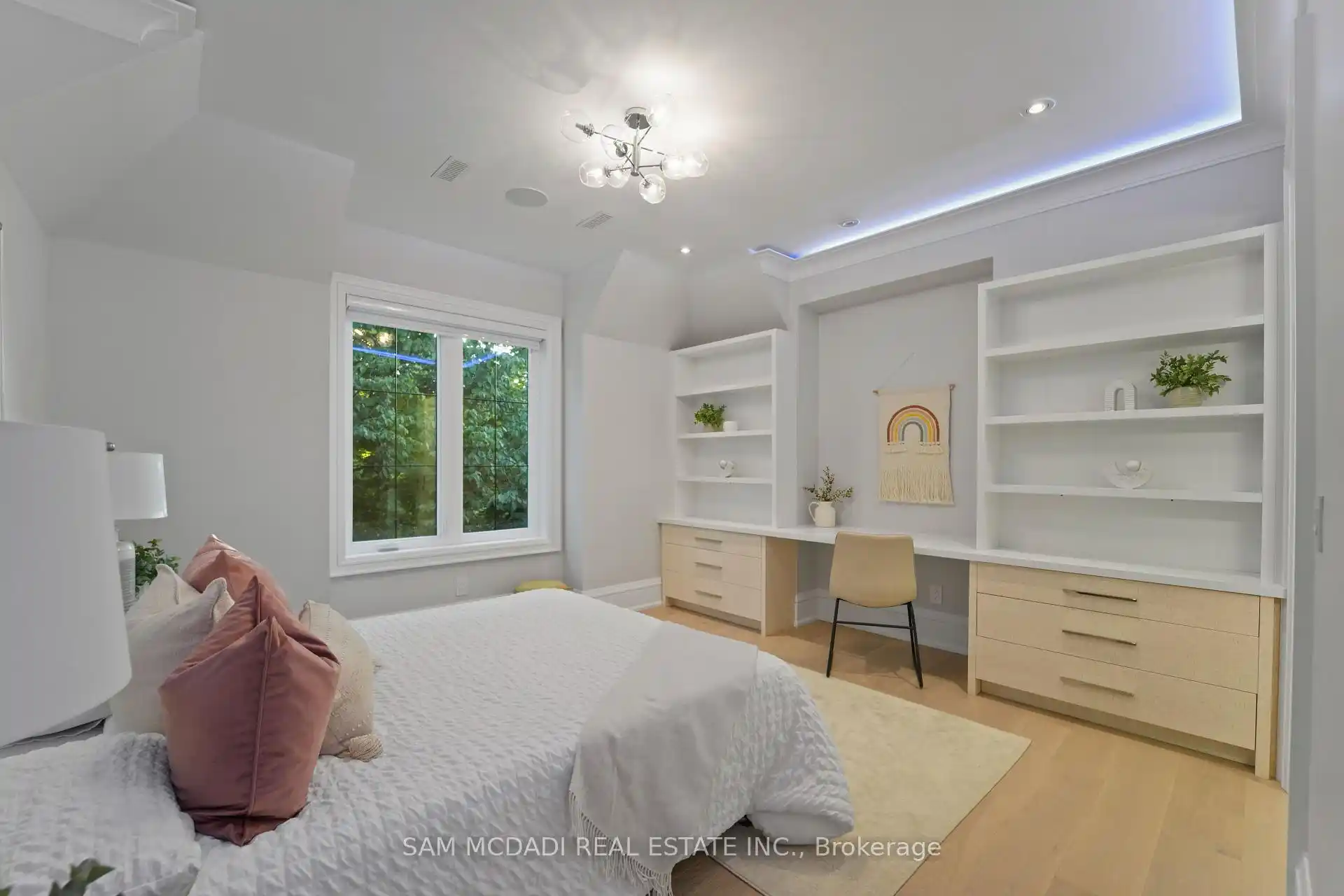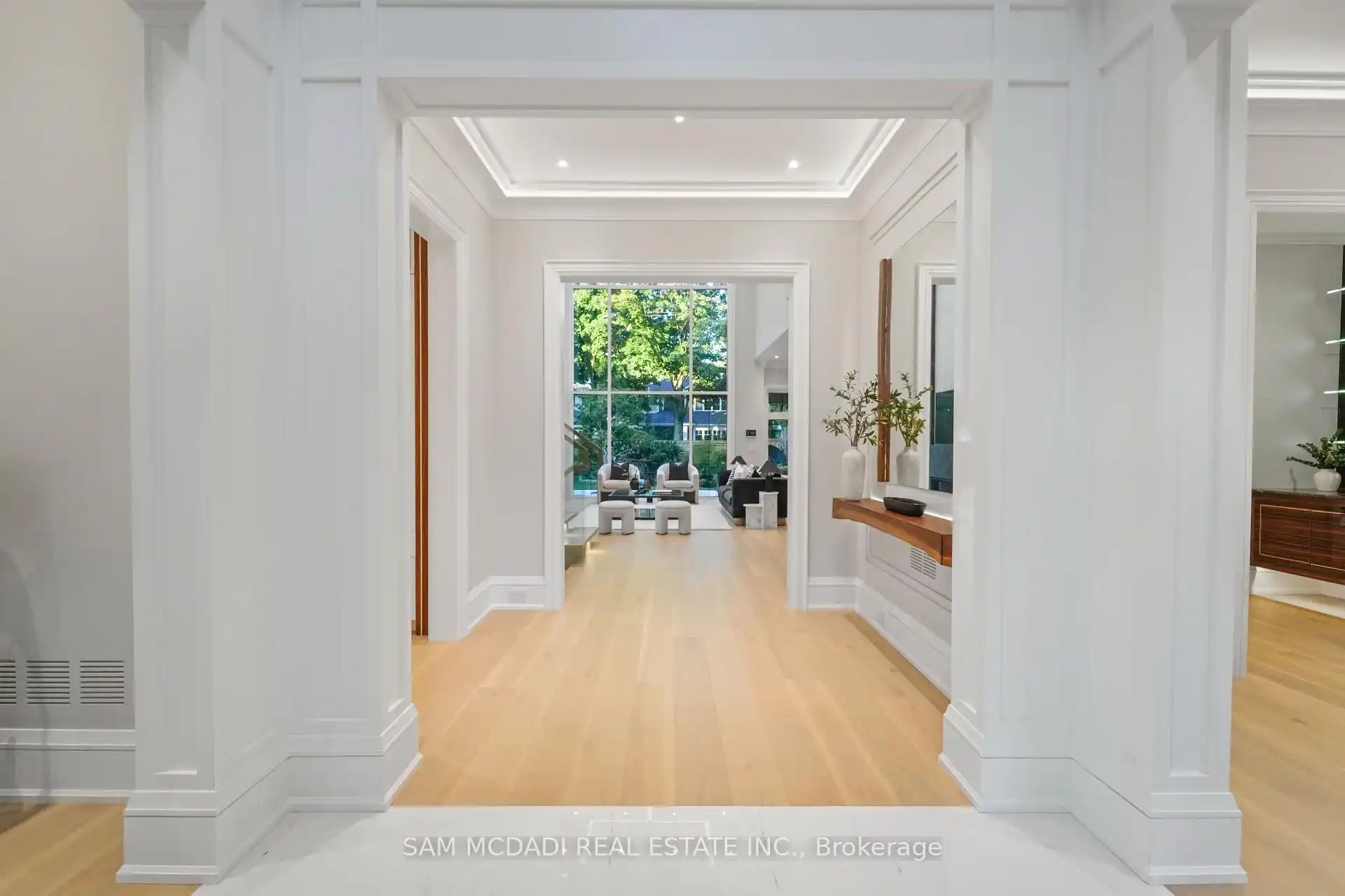 Welcome to 371 Willis Drive, an extraordinary custom-built estate by award-winning architect Keeren Design, ideally located in West Oakville. Inspired by classic French chateau architecture, this home features a timeless white stone exterior, elegant black-framed windows and meticulously landscaped grounds. Spanning 7,500+ SF across three levels, it offers 4+3 bedrooms and 7 bathrooms, each crafted with exceptional detail. The main level features an open-concept layout with 10-ft ceilings and premium finishes. The chef's kitchen is a masterpiece with an oversized island, GEOLUXE porcelain countertops and backsplash, and Thermador built-in appliances including a 6-burner cooktop & 72" refrigerator. It flows seamlessly into the great room, where 20-foot ceilings, a linear gas fireplace, custom built-ins & expansive floor-to-ceiling windows create a grand and inviting atmosphere. A formal dining room, living room, bar, home office, powder room & mudroom complete this level. An oak staircase with glass railings leads to the upper floor, home to a primary suite with a custom walk-in closet & spa-inspired ensuite featuring radiant heated floors, freestanding tub, dual vanities & double rainfall shower. Additional bedrooms each have walk-in closets & private ensuites. The finished lower level adds 3 bedrooms, a full bathroom, modern kitchen, recreation area, media room & office. Elegant design elements are found throughout, including tray ceilings with LED lighting, large aluminum curtain wall skylights, built-in speakers & wide-plank oak flooring. Outdoors, enjoy a private backyard oasis with a covered concrete patio, koi pond, Hydropool swim spa & lush gardens. The front offers a heated granite driveway on reinforced concrete for up to 8 cars, leading to a 3-car garage with concrete flooring. Located near Appleby College, top schools, parks, Lake Ontario & major highways, this residence epitomizes modern luxury living in one of Oakville's most prestigious neighborhoods.
