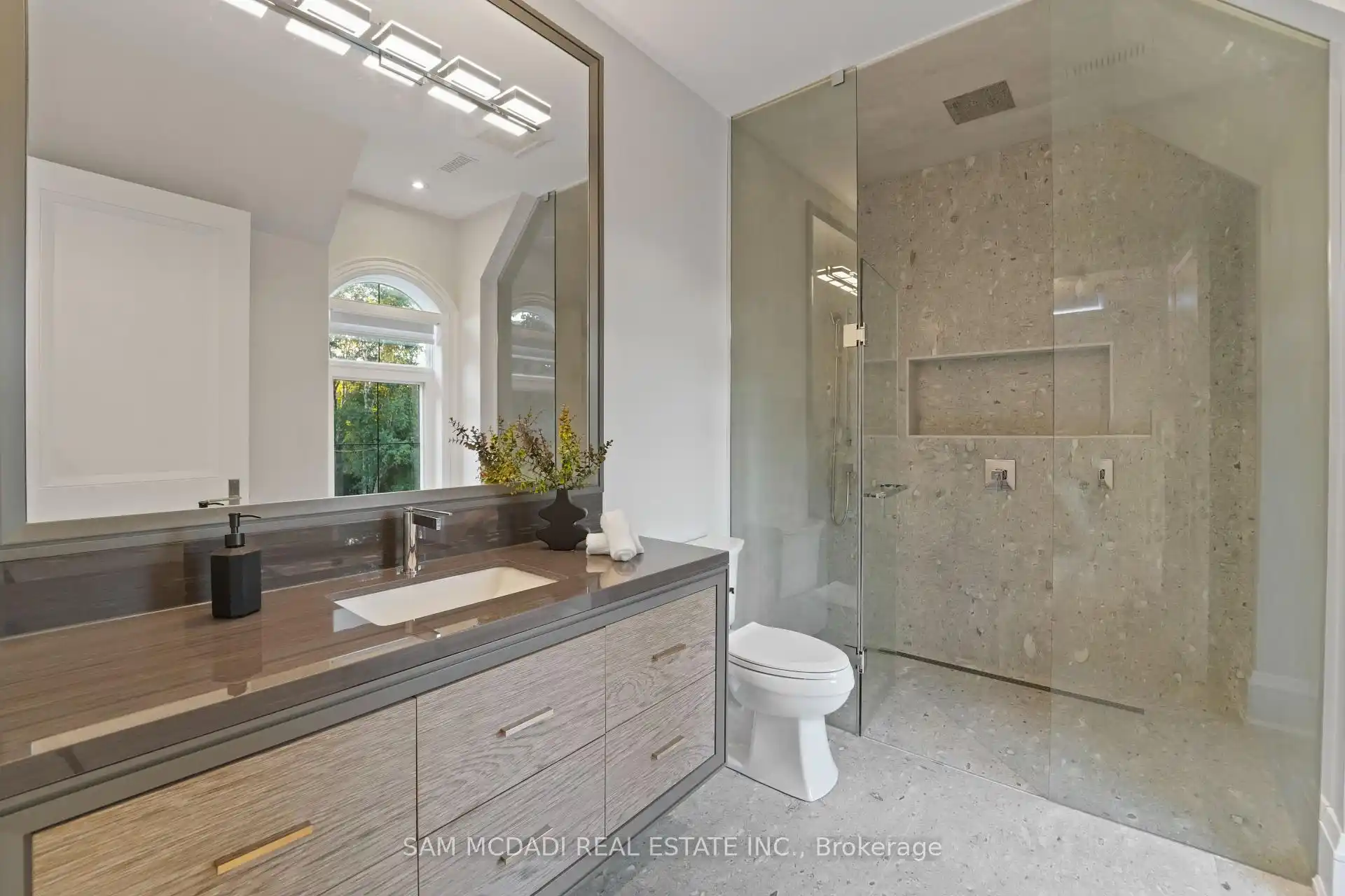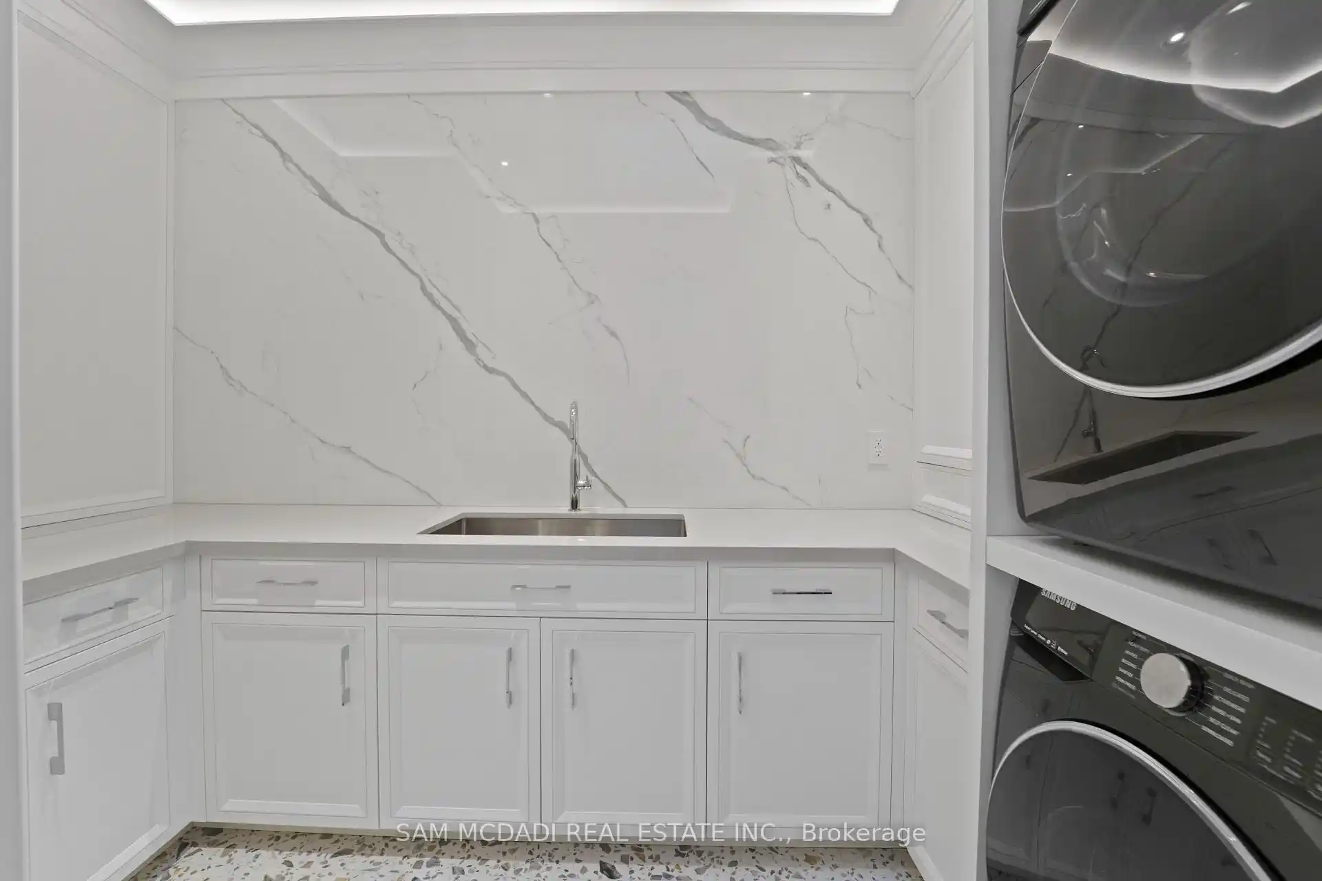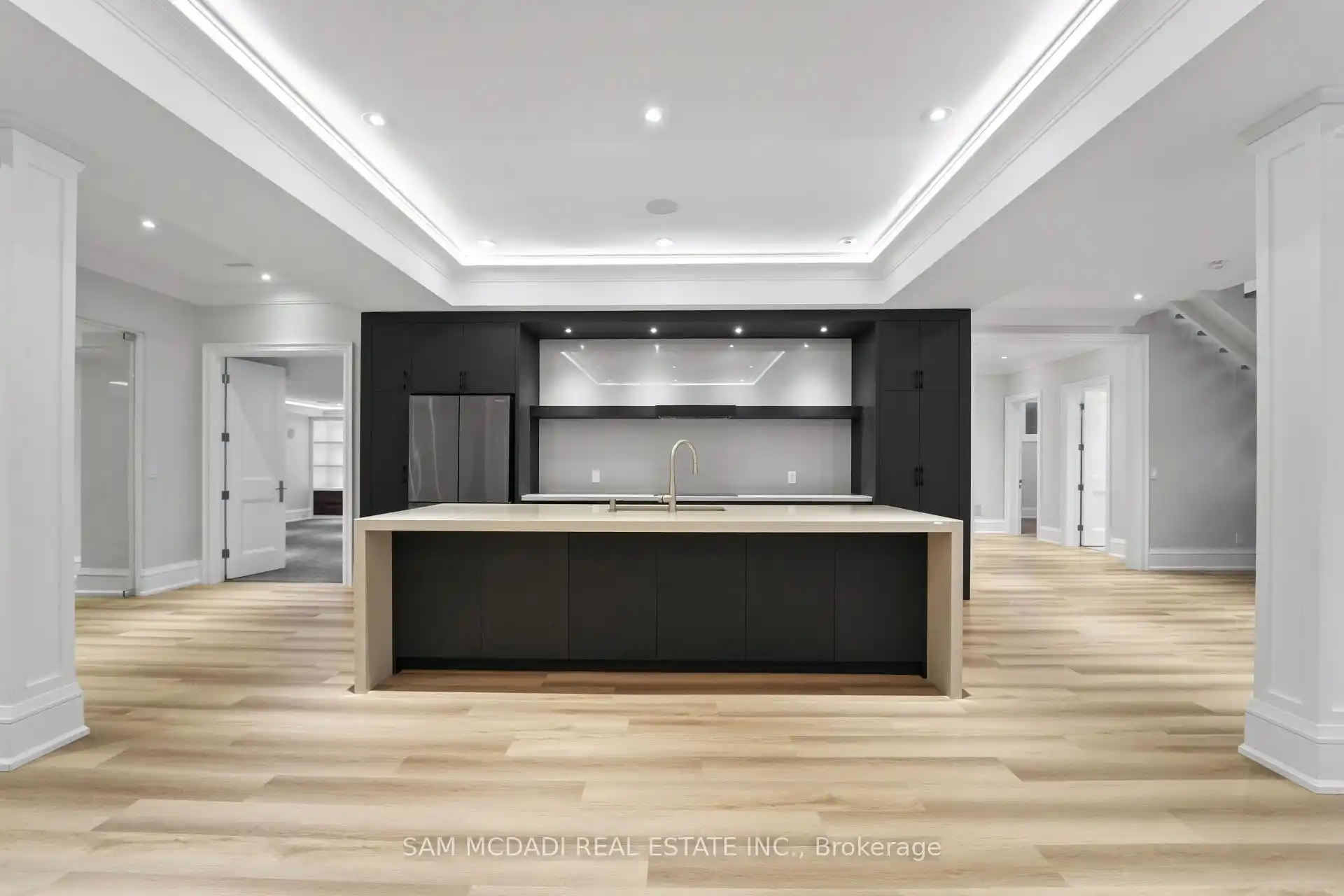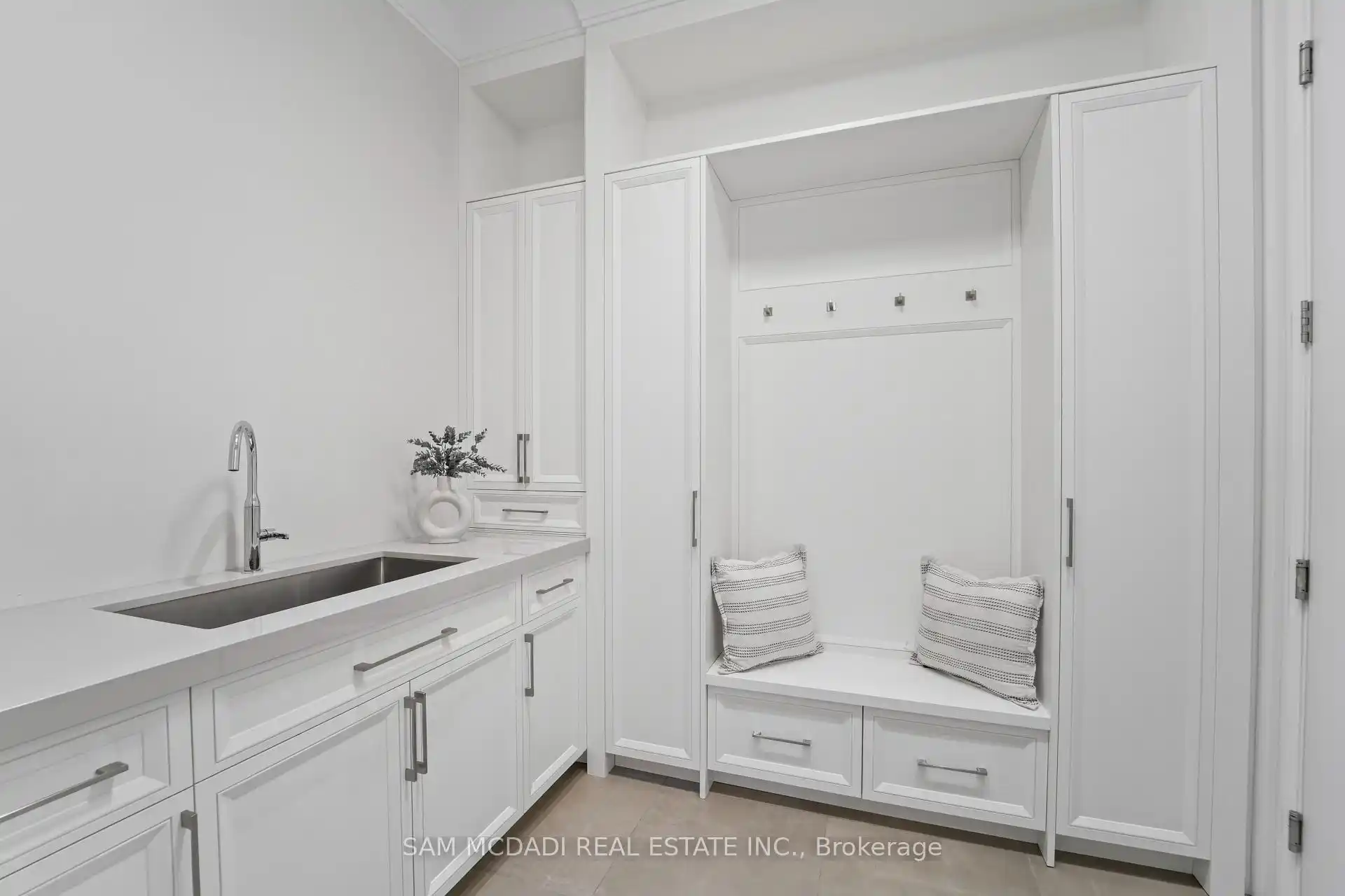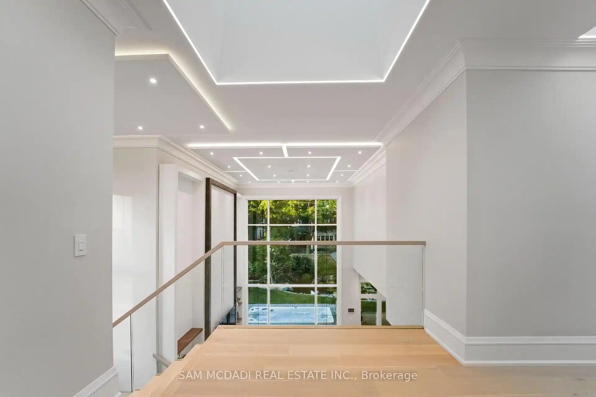 Welcome to 371 Willis Drive, an extraordinary custom-built estate by award-winning architect Keeren Design, ideally located in West Oakville. Inspired by classic French chateau architecture, this home features a timeless white stone exterior, elegant black-framed windows and meticulously landscaped grounds. Spanning 7,500+ SF across three levels, it offers 4+3 bedrooms and 7 bathrooms, each crafted with exceptional detail. The main level features an open-concept layout with 10-ft ceilings and premium finishes. The chef's kitchen is a masterpiece with an oversized island, GEOLUXE porcelain countertops and backsplash, and Thermador built-in appliances including a 6-burner cooktop & 72" refrigerator. It flows seamlessly into the great room, where 20-foot ceilings, a linear gas fireplace, custom built-ins & expansive floor-to-ceiling windows create a grand and inviting atmosphere. A formal dining room, living room, bar, home office, powder room & mudroom complete this level. An oak staircase with glass railings leads to the upper floor, home to a primary suite with a custom walk-in closet & spa-inspired ensuite featuring radiant heated floors, freestanding tub, dual vanities & double rainfall shower. Additional bedrooms each have walk-in closets & private ensuites. The finished lower level adds 3 bedrooms, a full bathroom, modern kitchen, recreation area, media room & office. Elegant design elements are found throughout, including tray ceilings with LED lighting, large aluminum curtain wall skylights, built-in speakers & wide-plank oak flooring. Outdoors, enjoy a private backyard oasis with a covered concrete patio, koi pond, Hydropool swim spa & lush gardens. The front offers a heated granite driveway on reinforced concrete for up to 8 cars, leading to a 3-car garage with concrete flooring. Located near Appleby College, top schools, parks, Lake Ontario & major highways, this residence epitomizes modern luxury living in one of Oakville's most prestigious neighborhoods.