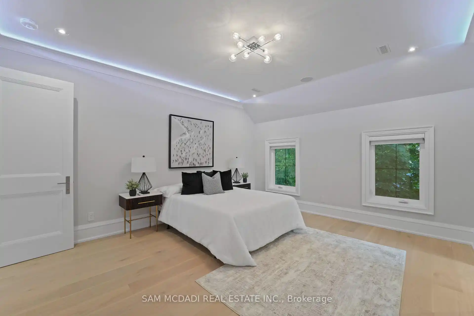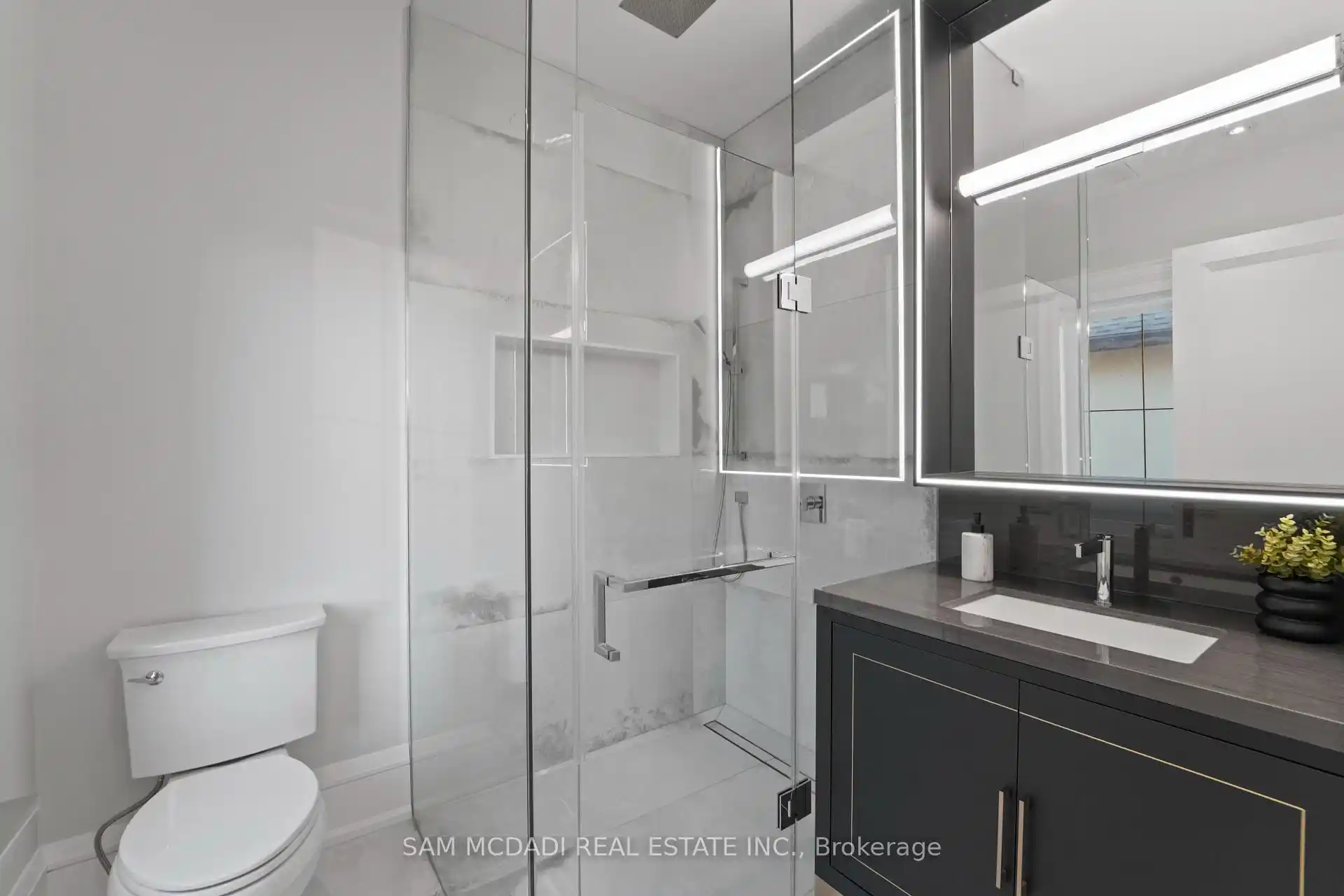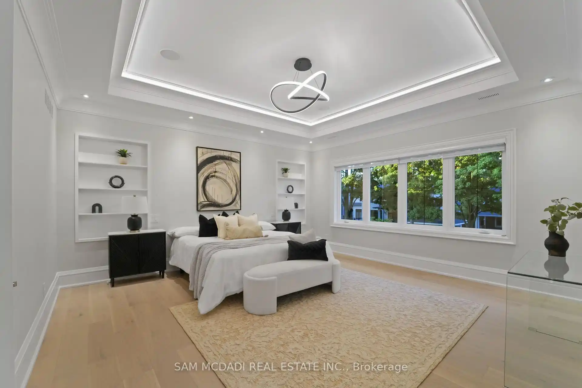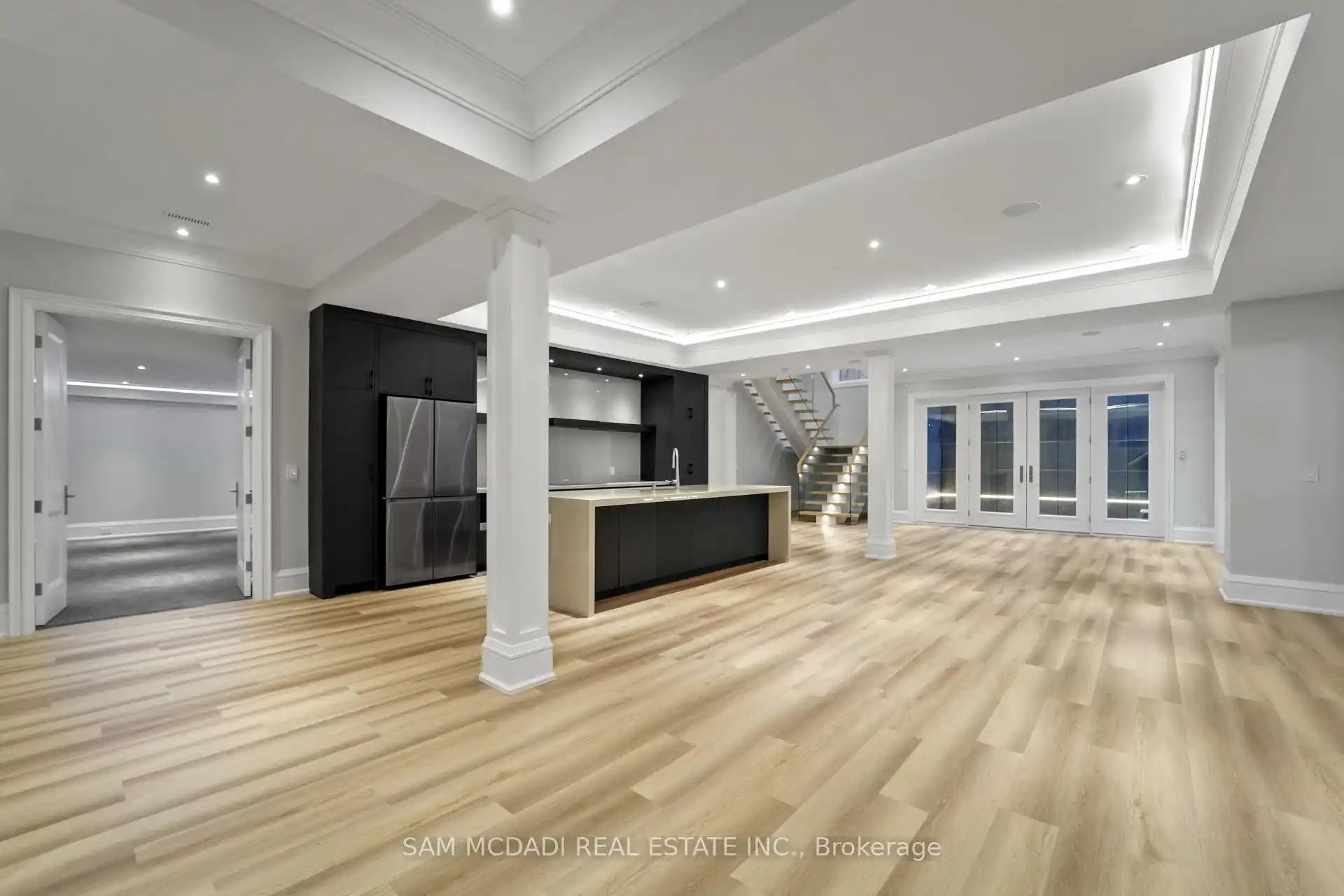Welcome to 371 Willis Drive, an extraordinary custom-built estate by award-winning architect Keeren Design, ideally located in West Oakville. Inspired by classic French chateau architecture, this home features a timeless white stone exterior, elegant black-framed windows and meticulously landscaped grounds. Spanning 7,500+ SF across three levels, it offers 4+3 bedrooms and 7 bathrooms, each crafted with exceptional detail. The main level features an open-concept layout with 10-ft ceilings and premium finishes. The chef's kitchen is a masterpiece with an oversized island, GEOLUXE porcelain countertops and backsplash, and Thermador built-in appliances including a 6-burner cooktop & 72" refrigerator. It flows seamlessly into the great room, where 20-foot ceilings, a linear gas fireplace, custom built-ins & expansive floor-to-ceiling windows create a grand and inviting atmosphere. A formal dining room, living room, bar, home office, powder room & mudroom complete this level. An oak staircase with glass railings leads to the upper floor, home to a primary suite with a custom walk-in closet & spa-inspired ensuite featuring radiant heated floors, freestanding tub, dual vanities & double rainfall shower. Additional bedrooms each have walk-in closets & private ensuites. The finished lower level adds 3 bedrooms, a full bathroom, modern kitchen, recreation area, media room & office. Elegant design elements are found throughout, including tray ceilings with LED lighting, large aluminum curtain wall skylights, built-in speakers & wide-plank oak flooring. Outdoors, enjoy a private backyard oasis with a covered concrete patio, koi pond, Hydropool swim spa & lush gardens. The front offers a heated granite driveway on reinforced concrete for up to 8 cars, leading to a 3-car garage with concrete flooring. Located near Appleby College, top schools, parks, Lake Ontario & major highways, this residence epitomizes modern luxury living in one of Oakville's most prestigious neighborhoods.