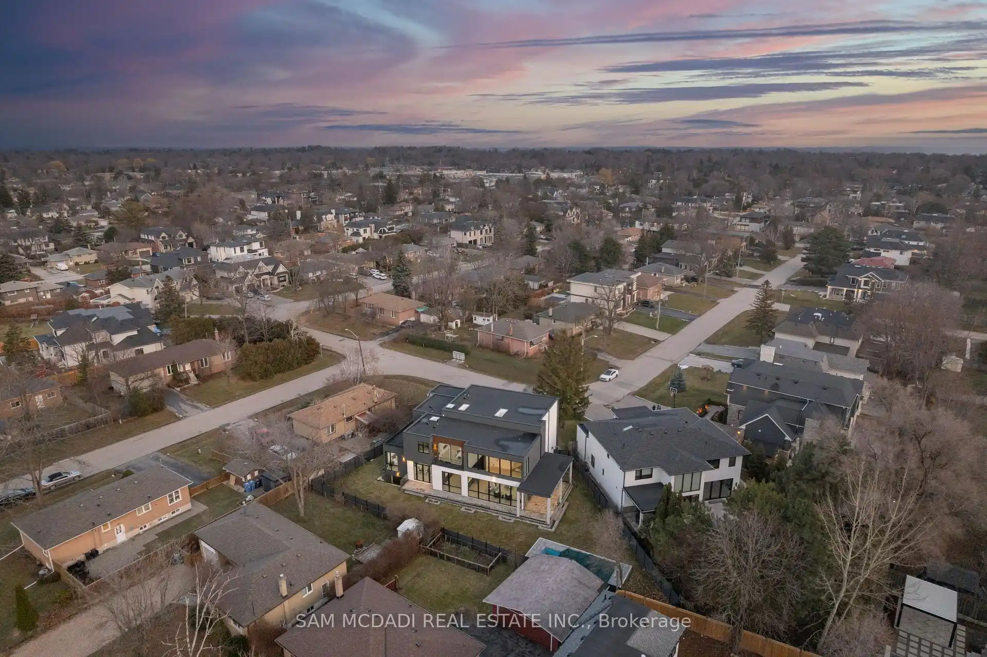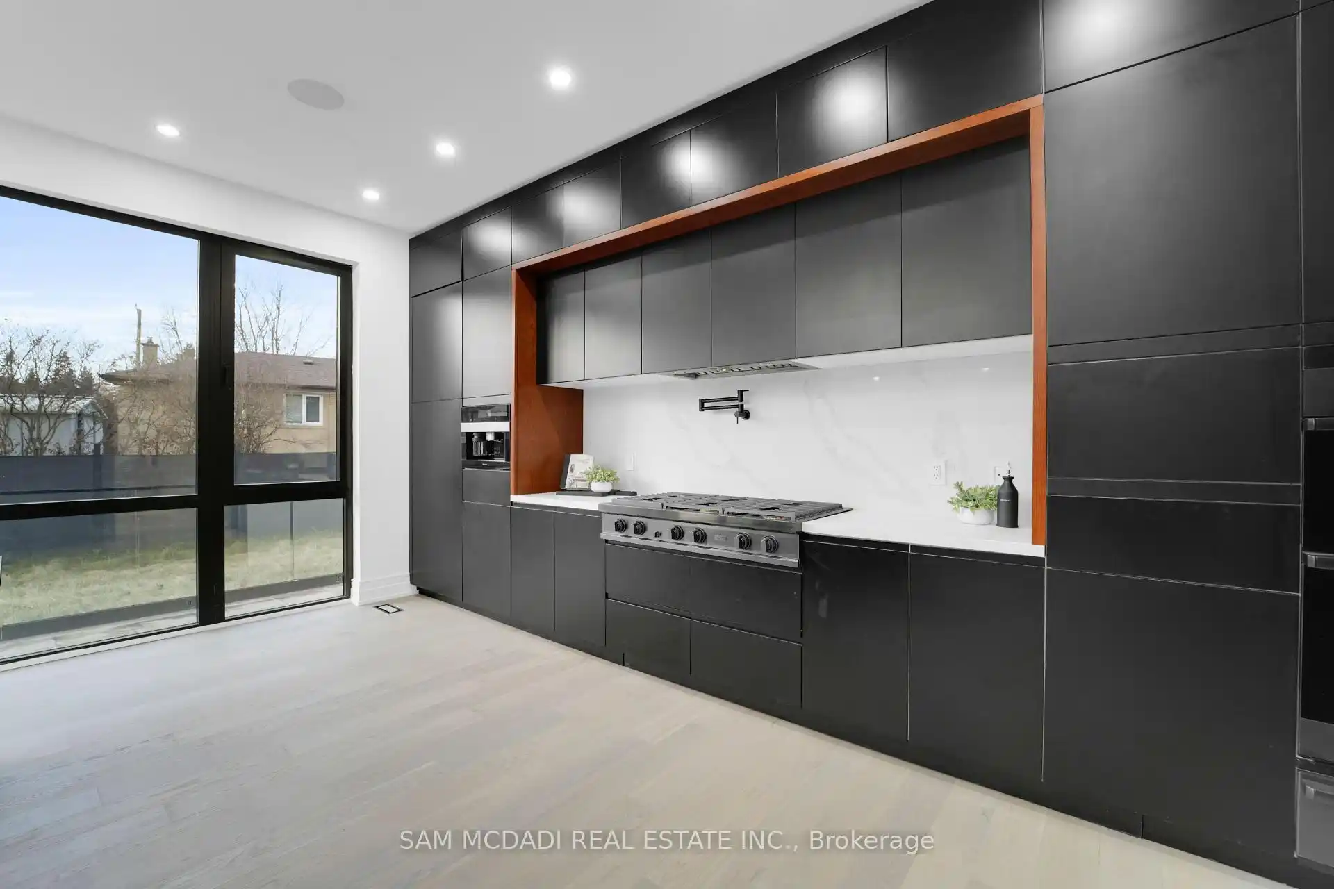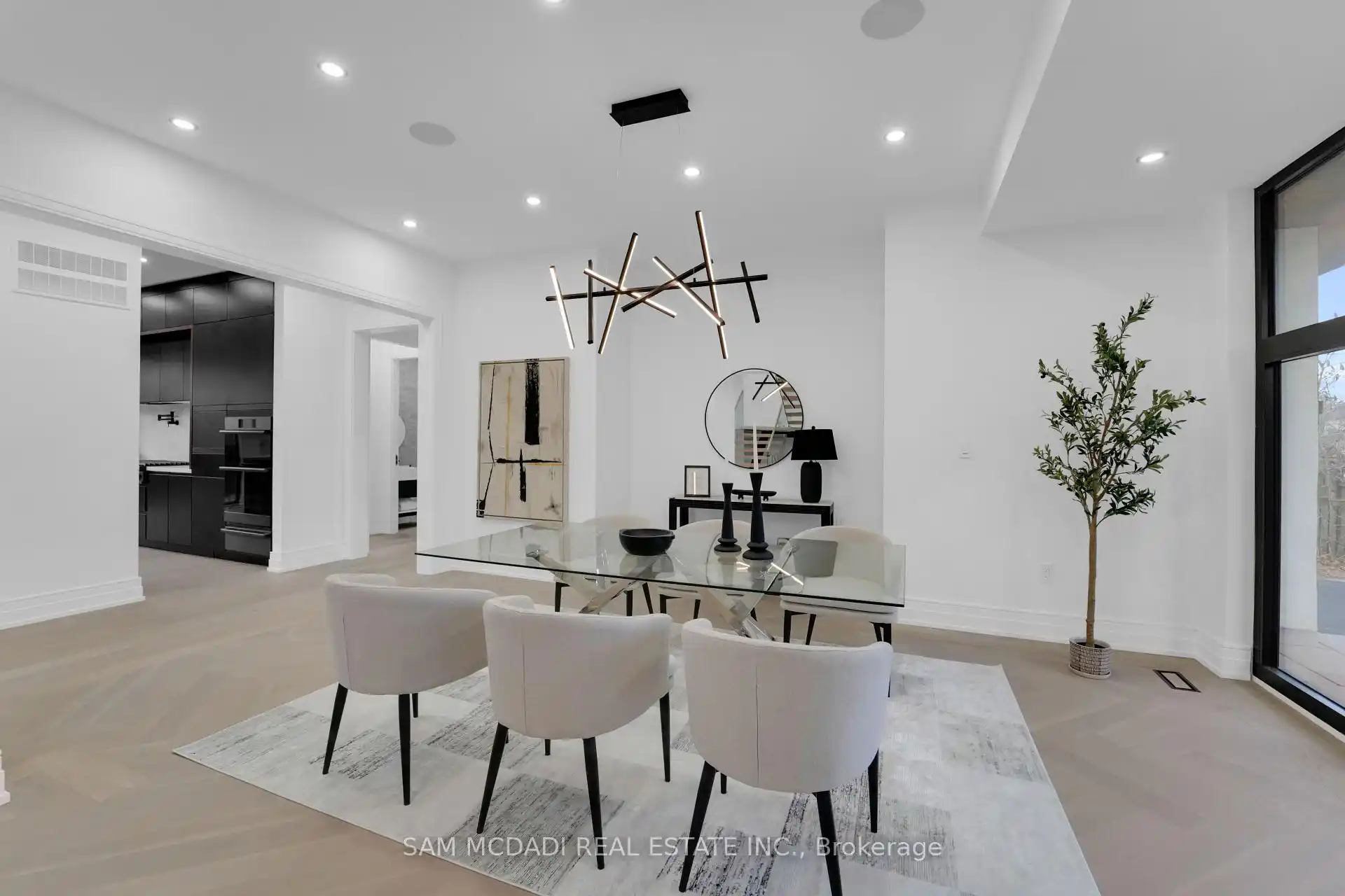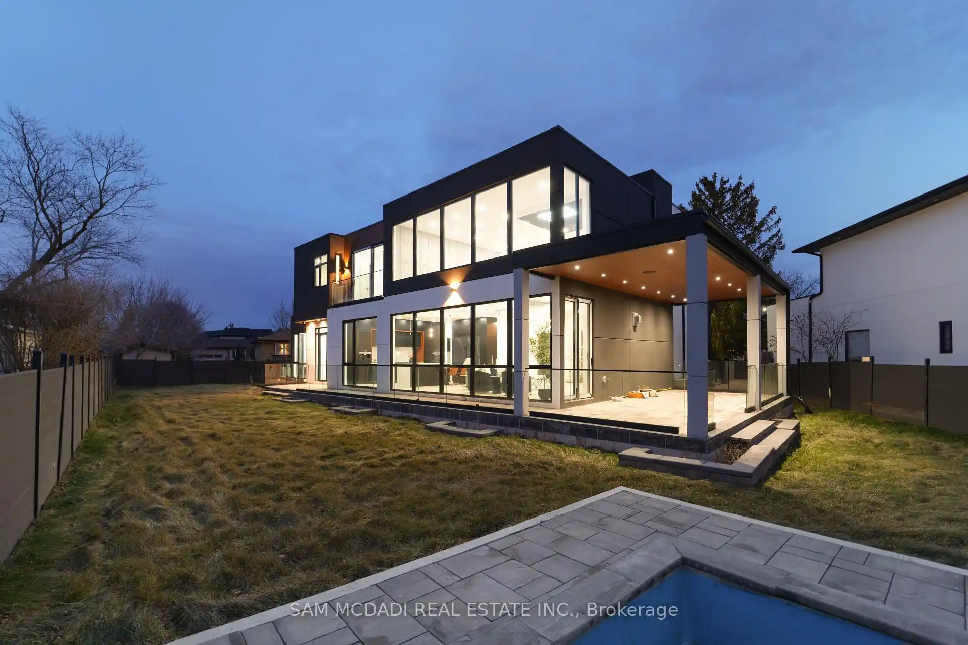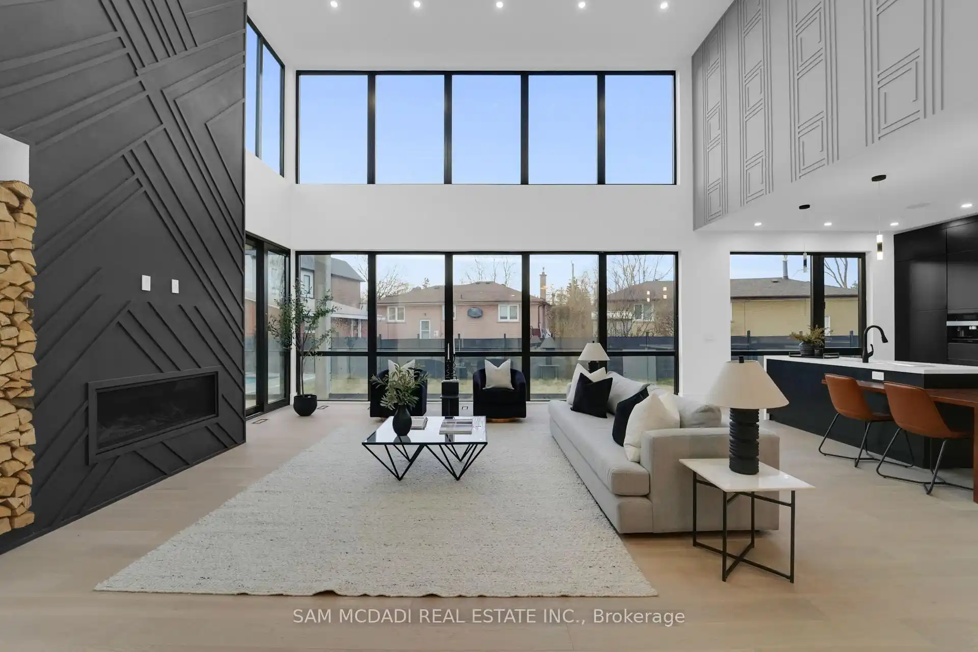 Discover the epitome of upscale living in this contemporary masterpiece nestled in the heart of West Oakville. Offering an exquisitely finished space, this custom home features 5 spacious bedrooms, 6 luxurious bathrooms, and thoughtful details throughout including a dedicated pet spa. Designed for both luxurious everyday living and unforgettable entertaining, the grand foyer flows seamlessly into a breathtaking open-concept living area. Soaring 23-foot floor-to-ceiling windows fill the space with natural light, framed by premium German hardware systems and high-end aluminum gliding windows. Engineered white oak hardwood floors and ambient pot lighting enhance the homes bright, airy atmosphere. The chef-inspired kitchen is a true showpiece, featuring top-of-the-line Dacor appliances, custom cabinetry, a sleek waterfall island, and generous space for casual meals or elegant dinner parties. Striking feature walls add architectural interest and modern artistry throughout the home. Relax by the Napoleon fireplaces in both the living and family rooms, or host guests comfortably in the main-floor bedroom complete with a private ensuite; ideal for visitors or multi-generational living. A Cambridge hydraulic elevator provides seamless, wheelchair-accessible access to all levels. Upstairs, you'll find three serene bedrooms, each with spa-like ensuite bathrooms and walk-in closets. The beautifully finished lower level features radiant heated floors, an oversized cold room, and a walkout to the backyard, offering even more space to unwind or entertain. Additional highlights include a Control4 automation system, central vacuum, walkout basement, swimming pool, aluminum and glass fencing, and so much more. Every detail of this home reflects exceptional craftsmanship and timeless contemporary elegance.