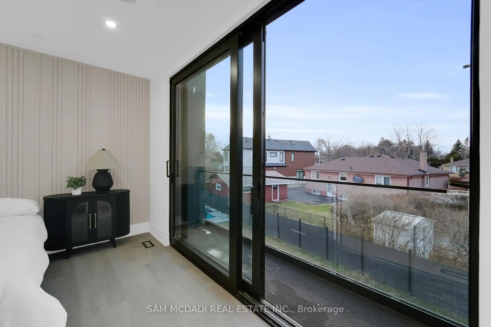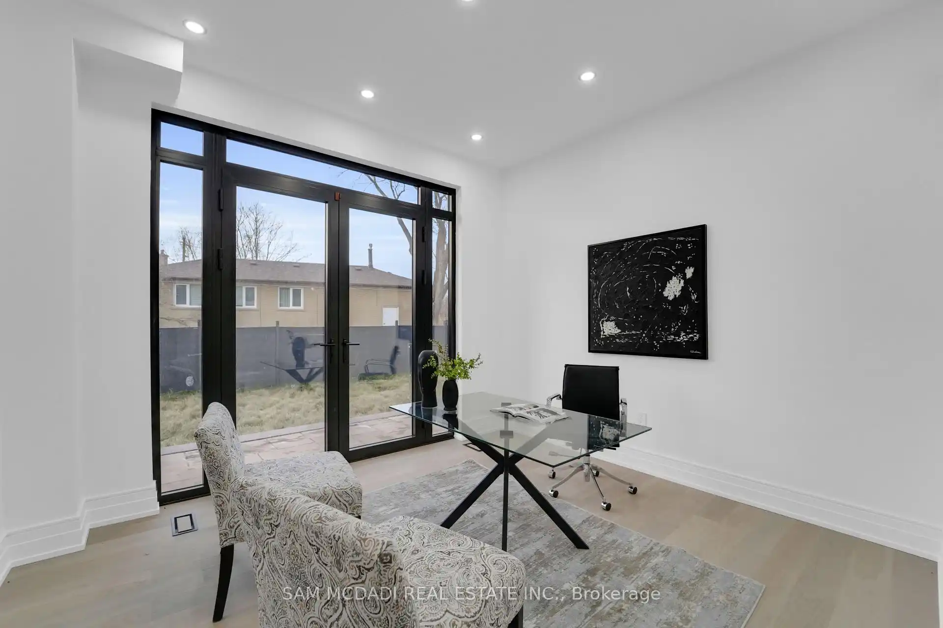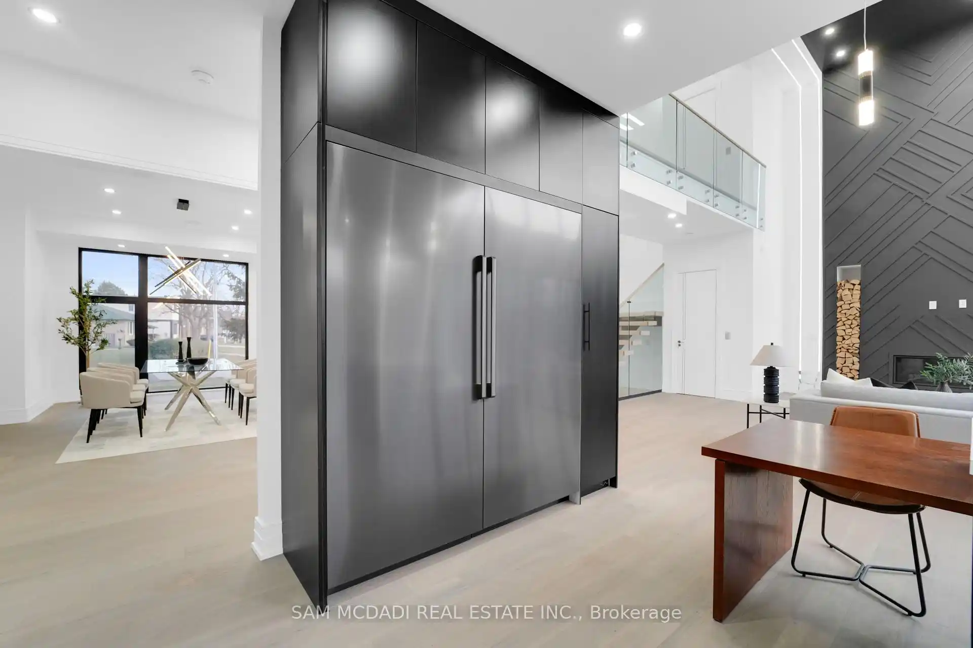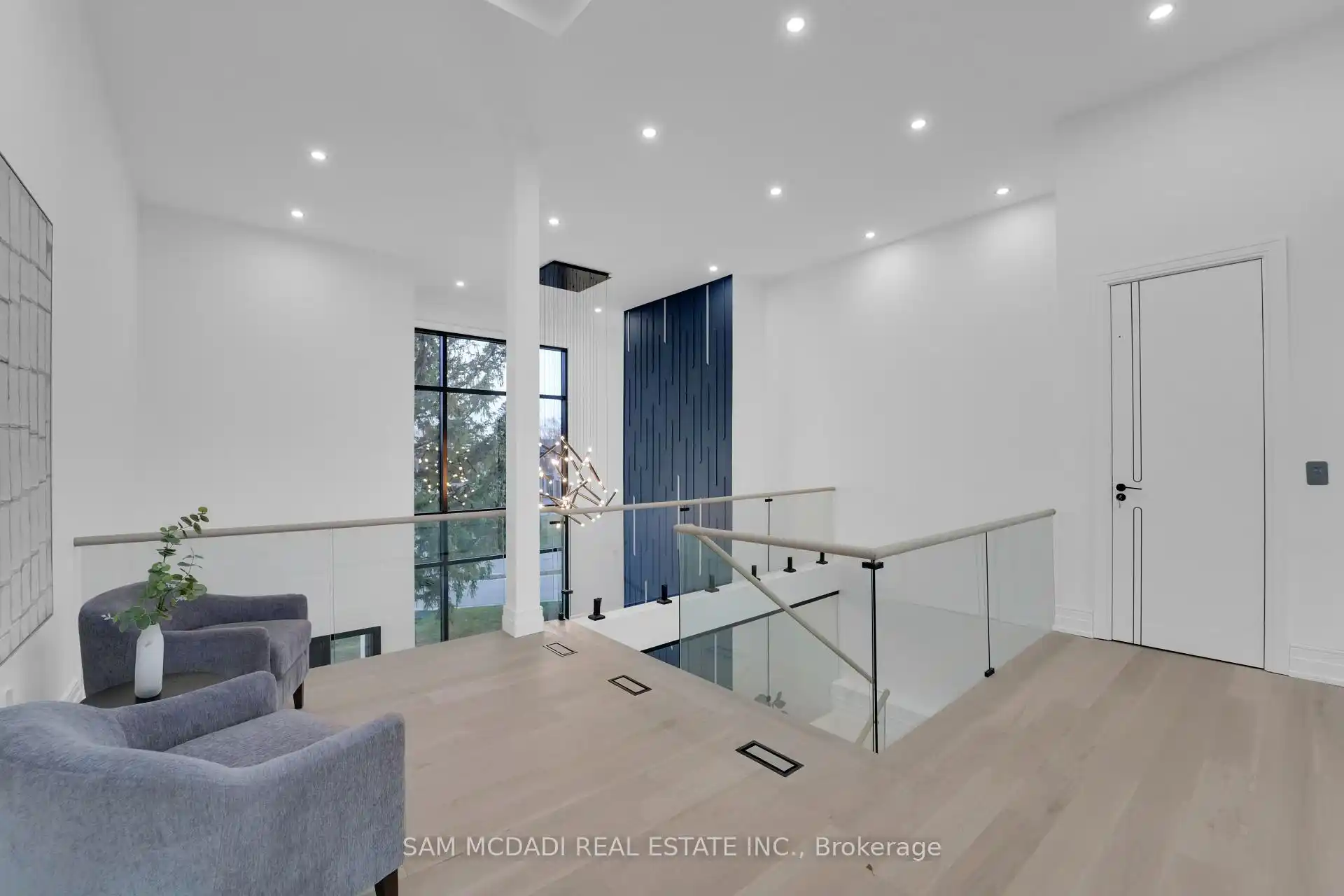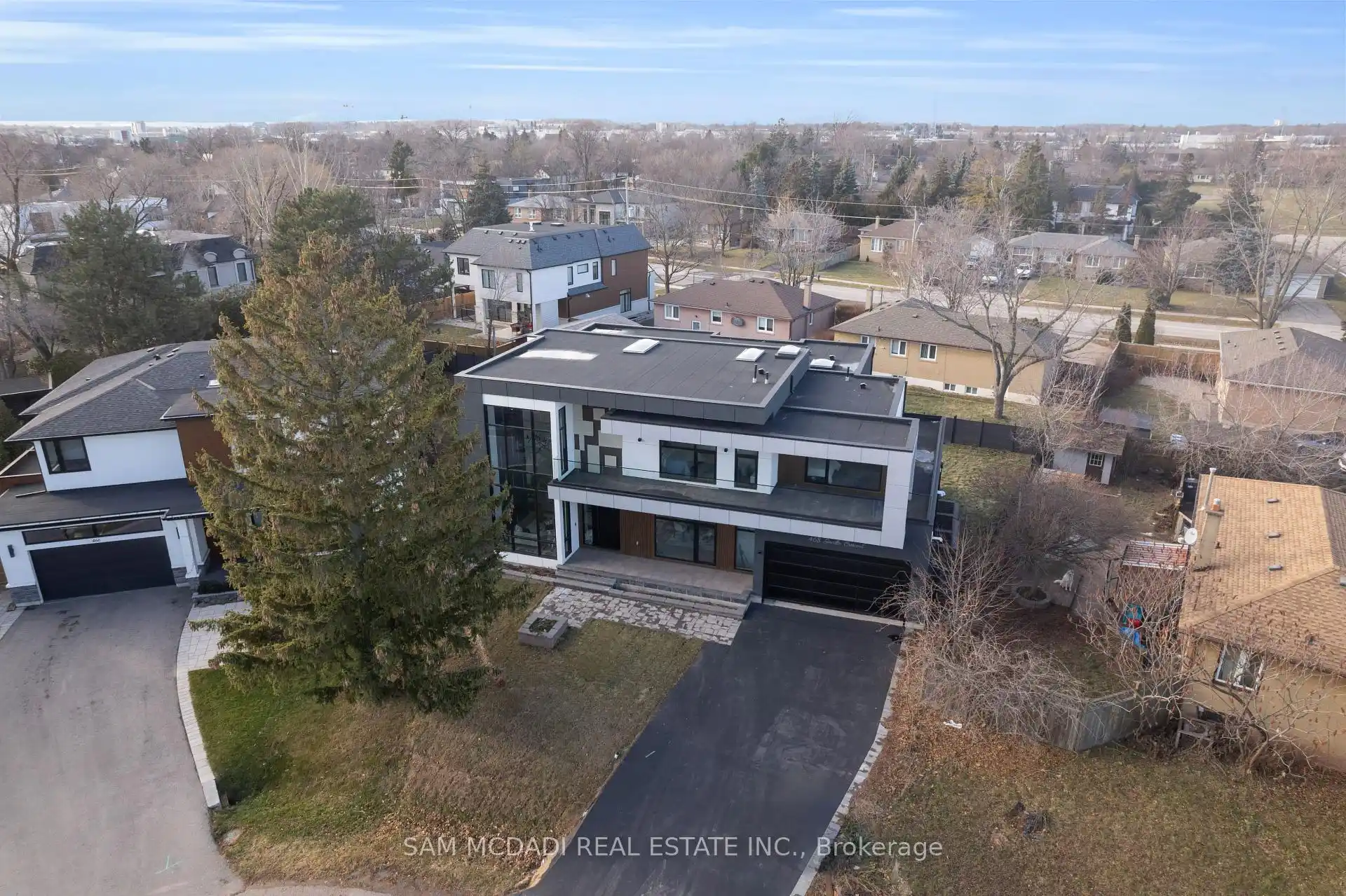 Discover the epitome of upscale living in this contemporary masterpiece nestled in the heart of West Oakville. Offering an exquisitely finished space, this custom home features 5 spacious bedrooms, 6 luxurious bathrooms, and thoughtful details throughout including a dedicated pet spa. Designed for both luxurious everyday living and unforgettable entertaining, the grand foyer flows seamlessly into a breathtaking open-concept living area. Soaring 23-foot floor-to-ceiling windows fill the space with natural light, framed by premium German hardware systems and high-end aluminum gliding windows. Engineered white oak hardwood floors and ambient pot lighting enhance the homes bright, airy atmosphere. The chef-inspired kitchen is a true showpiece, featuring top-of-the-line Dacor appliances, custom cabinetry, a sleek waterfall island, and generous space for casual meals or elegant dinner parties. Striking feature walls add architectural interest and modern artistry throughout the home. Relax by the Napoleon fireplaces in both the living and family rooms, or host guests comfortably in the main-floor bedroom complete with a private ensuite; ideal for visitors or multi-generational living. A Cambridge hydraulic elevator provides seamless, wheelchair-accessible access to all levels. Upstairs, you'll find three serene bedrooms, each with spa-like ensuite bathrooms and walk-in closets. The beautifully finished lower level features radiant heated floors, an oversized cold room, and a walkout to the backyard, offering even more space to unwind or entertain. Additional highlights include a Control4 automation system, central vacuum, walkout basement, swimming pool, aluminum and glass fencing, and so much more. Every detail of this home reflects exceptional craftsmanship and timeless contemporary elegance.