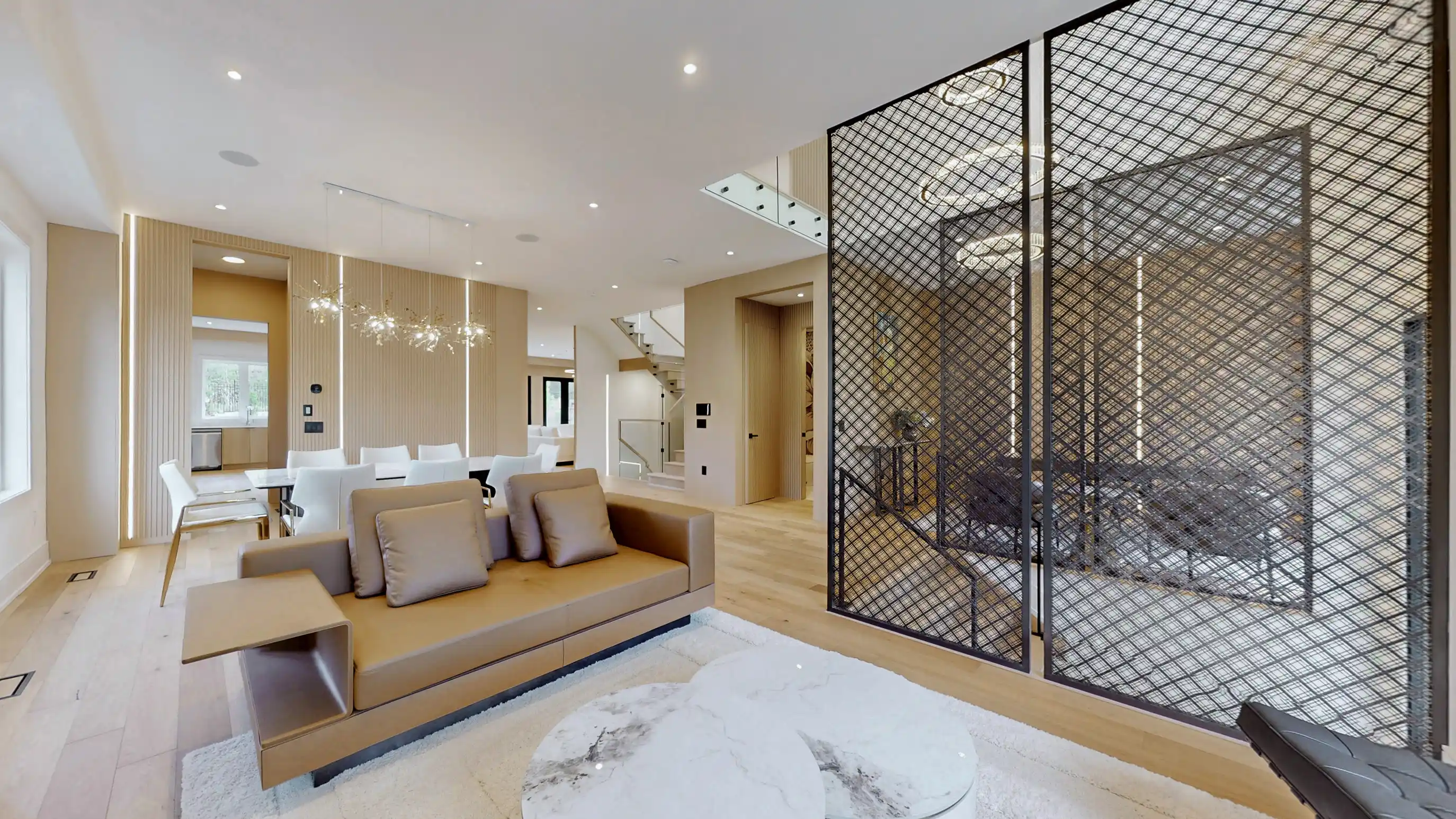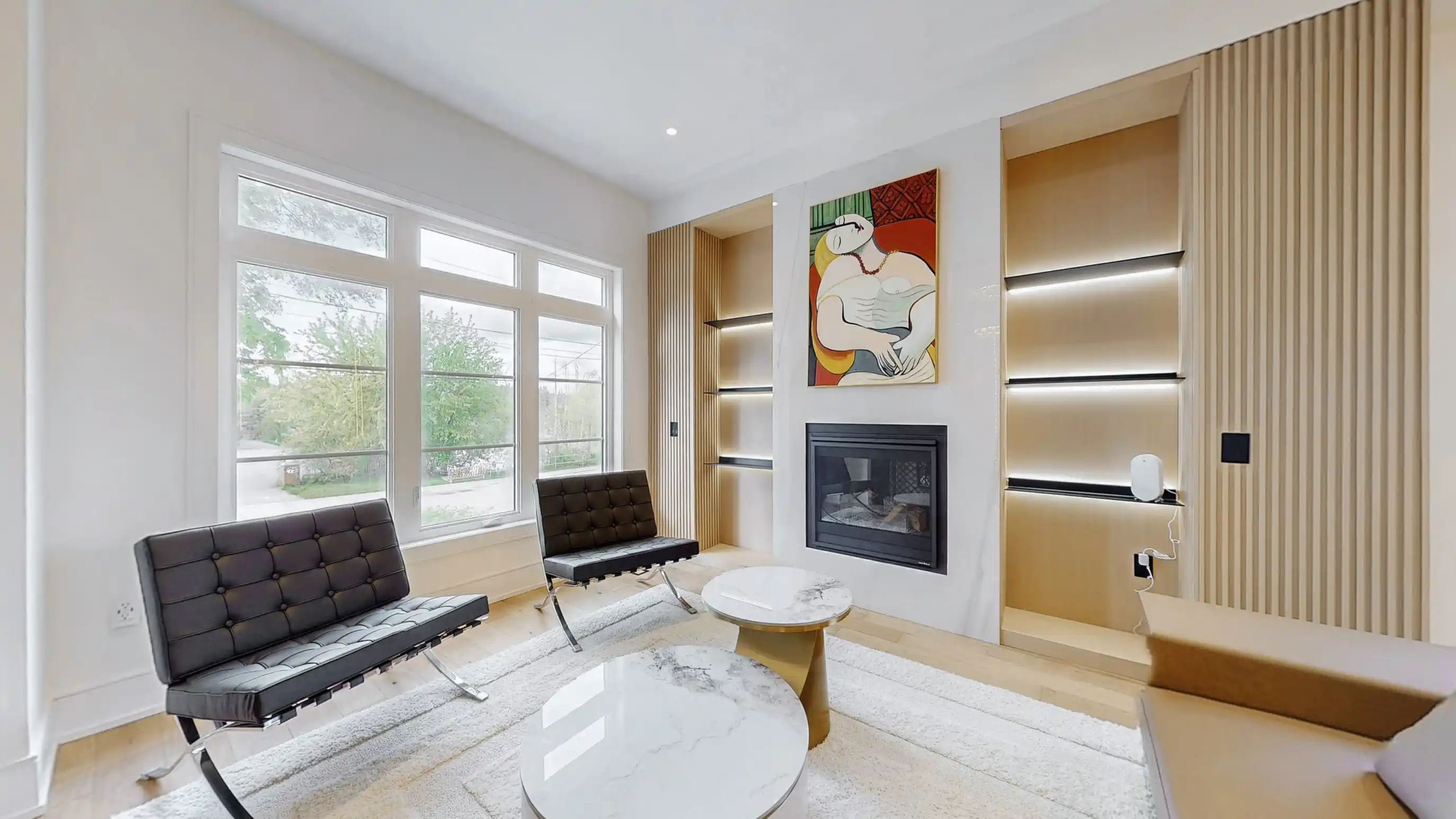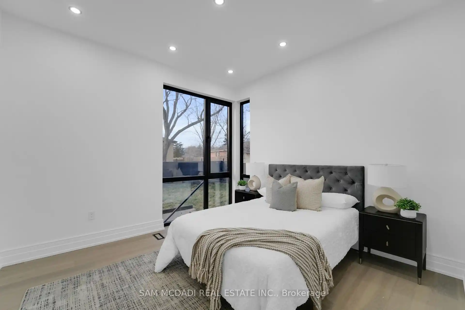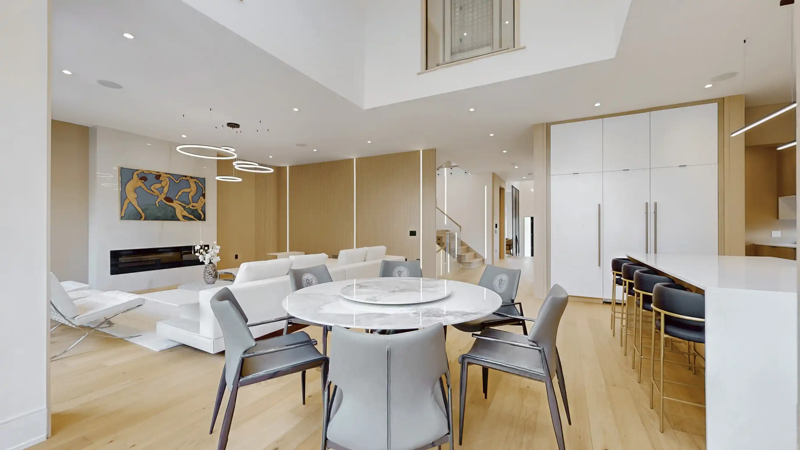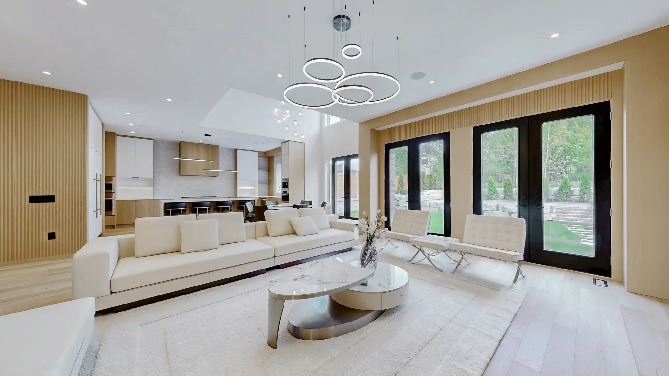 Discover the epitome of upscale living in this contemporary masterpiece nestled in the heart of West Oakville. Offering an exquisitely finished space, this custom home features 5 spacious bedrooms, 6 luxurious bathrooms, and thoughtful details throughout including a dedicated pet spa. Designed for both luxurious everyday living and unforgettable entertaining, the grand foyer flows seamlessly into a breathtaking open-concept living area. Soaring 23-foot floor-to-ceiling windows fill the space with natural light, framed by premium German hardware systems and high-end aluminum gliding windows. Engineered white oak hardwood floors and ambient pot lighting enhance the homes bright, airy atmosphere. The chef-inspired kitchen is a true showpiece, featuring top-of-the-line Dacor appliances, custom cabinetry, a sleek waterfall island, and generous space for casual meals or elegant dinner parties. Striking feature walls add architectural interest and modern artistry throughout the home. Relax by the Napoleon fireplaces in both the living and family rooms, or host guests comfortably in the main-floor bedroom complete with a private ensuite; ideal for visitors or multi-generational living. A Cambridge hydraulic elevator provides seamless, wheelchair-accessible access to all levels. Upstairs, you'll find three serene bedrooms, each with spa-like ensuite bathrooms and walk-in closets. The beautifully finished lower level features radiant heated floors, an oversized cold room, and a walkout to the backyard, offering even more space to unwind or entertain. Additional highlights include a Control4 automation system, central vacuum, walkout basement, swimming pool, aluminum and glass fencing, and so much more. Every detail of this home reflects exceptional craftsmanship and timeless contemporary elegance.