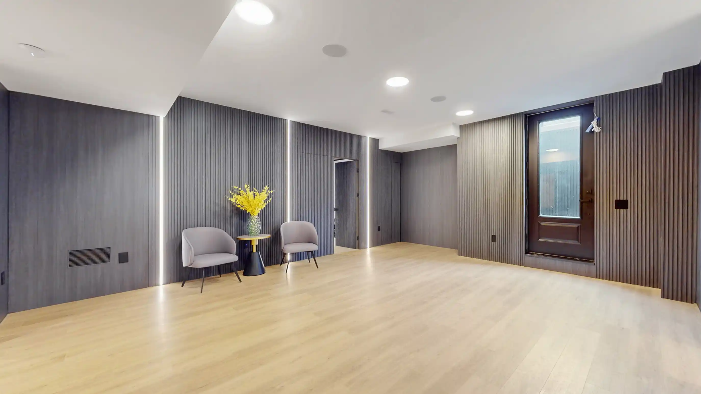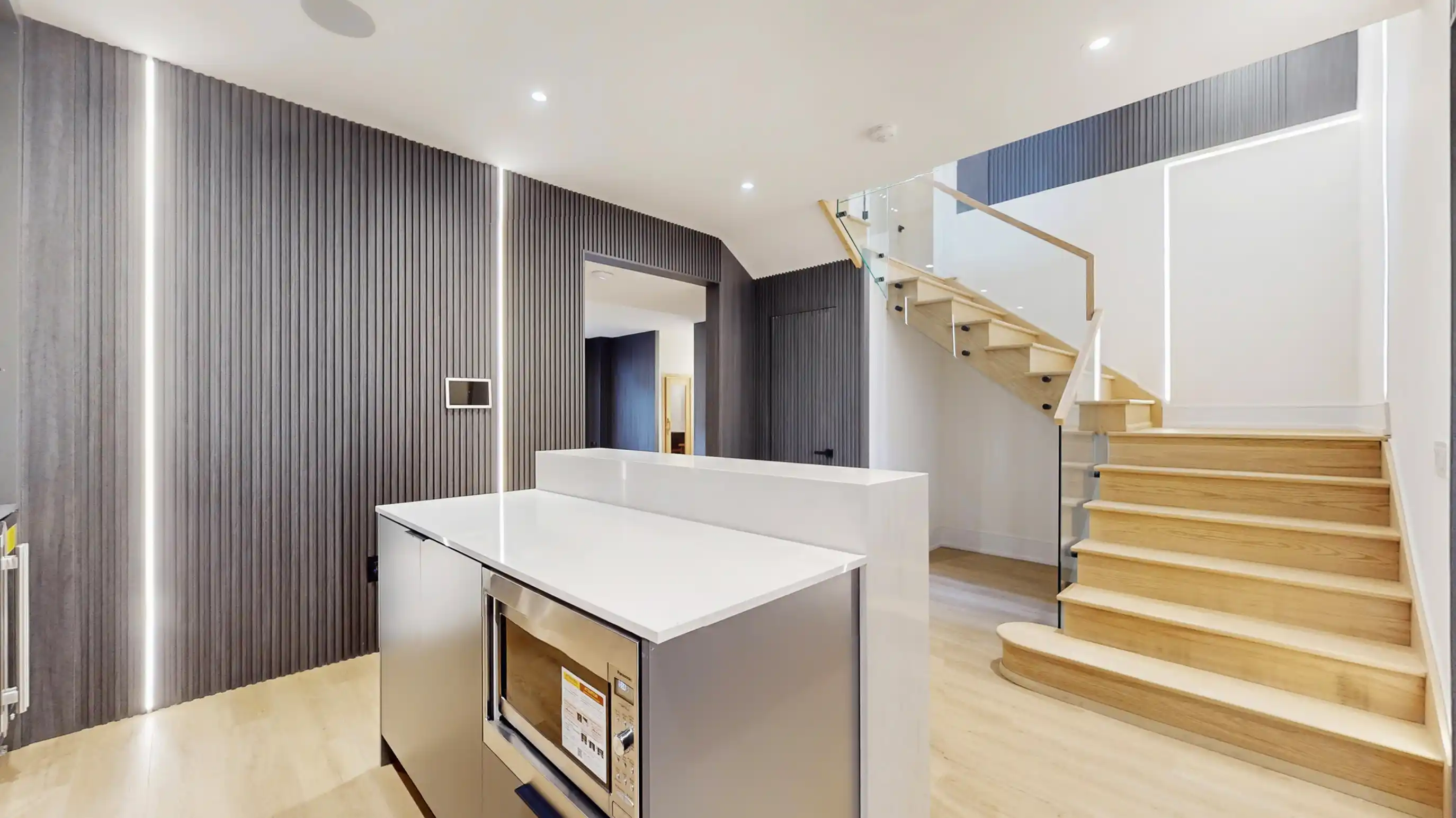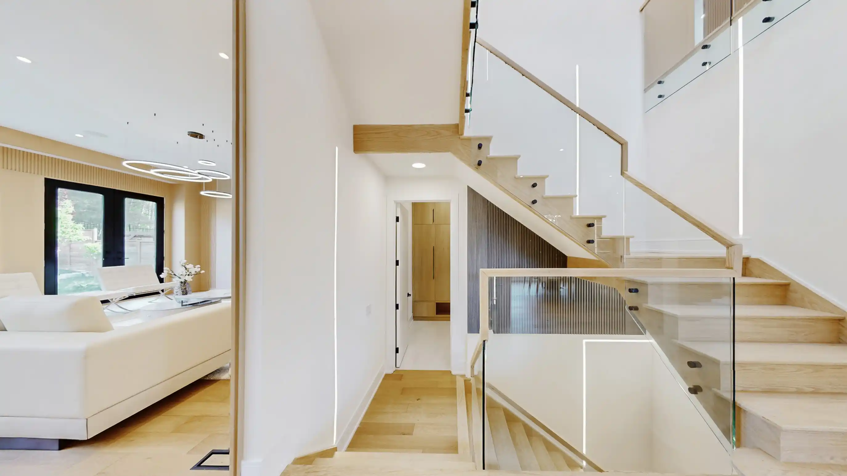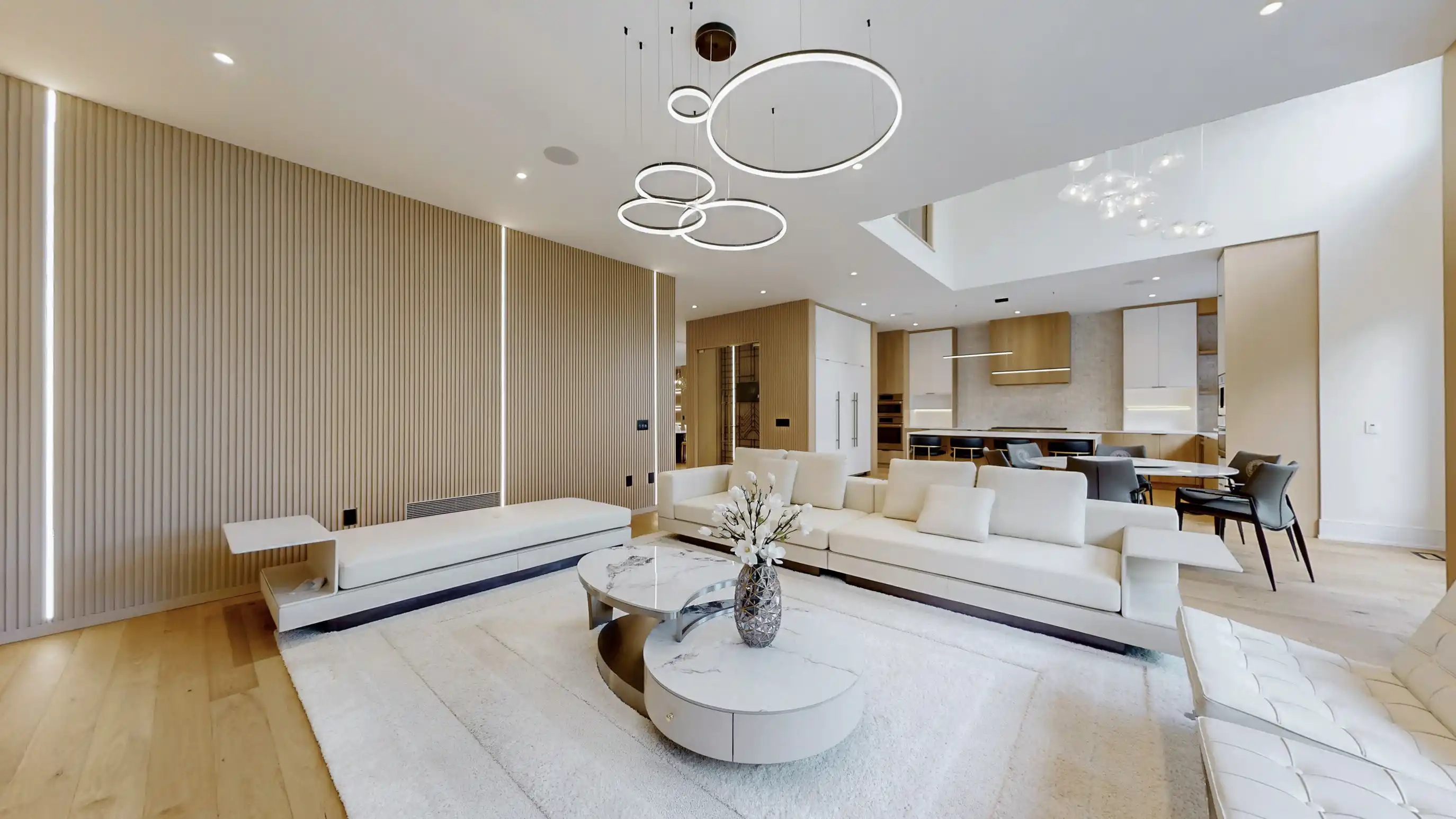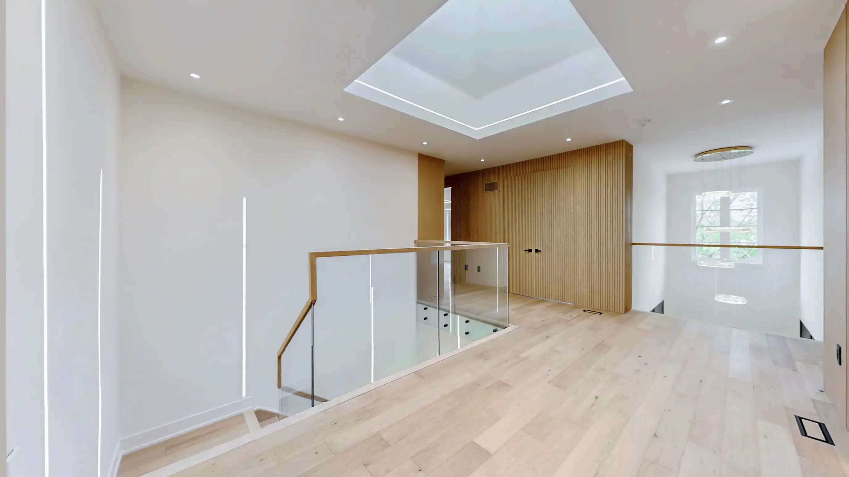 Discover the epitome of upscale living in this contemporary masterpiece nestled in the heart of West Oakville. Offering an exquisitely finished space, this custom home features 5 spacious bedrooms, 6 luxurious bathrooms, and thoughtful details throughout including a dedicated pet spa. Designed for both luxurious everyday living and unforgettable entertaining, the grand foyer flows seamlessly into a breathtaking open-concept living area. Soaring 23-foot floor-to-ceiling windows fill the space with natural light, framed by premium German hardware systems and high-end aluminum gliding windows. Engineered white oak hardwood floors and ambient pot lighting enhance the homes bright, airy atmosphere. The chef-inspired kitchen is a true showpiece, featuring top-of-the-line Dacor appliances, custom cabinetry, a sleek waterfall island, and generous space for casual meals or elegant dinner parties. Striking feature walls add architectural interest and modern artistry throughout the home. Relax by the Napoleon fireplaces in both the living and family rooms, or host guests comfortably in the main-floor bedroom complete with a private ensuite; ideal for visitors or multi-generational living. A Cambridge hydraulic elevator provides seamless, wheelchair-accessible access to all levels. Upstairs, you'll find three serene bedrooms, each with spa-like ensuite bathrooms and walk-in closets. The beautifully finished lower level features radiant heated floors, an oversized cold room, and a walkout to the backyard, offering even more space to unwind or entertain. Additional highlights include a Control4 automation system, central vacuum, walkout basement, swimming pool, aluminum and glass fencing, and so much more. Every detail of this home reflects exceptional craftsmanship and timeless contemporary elegance.