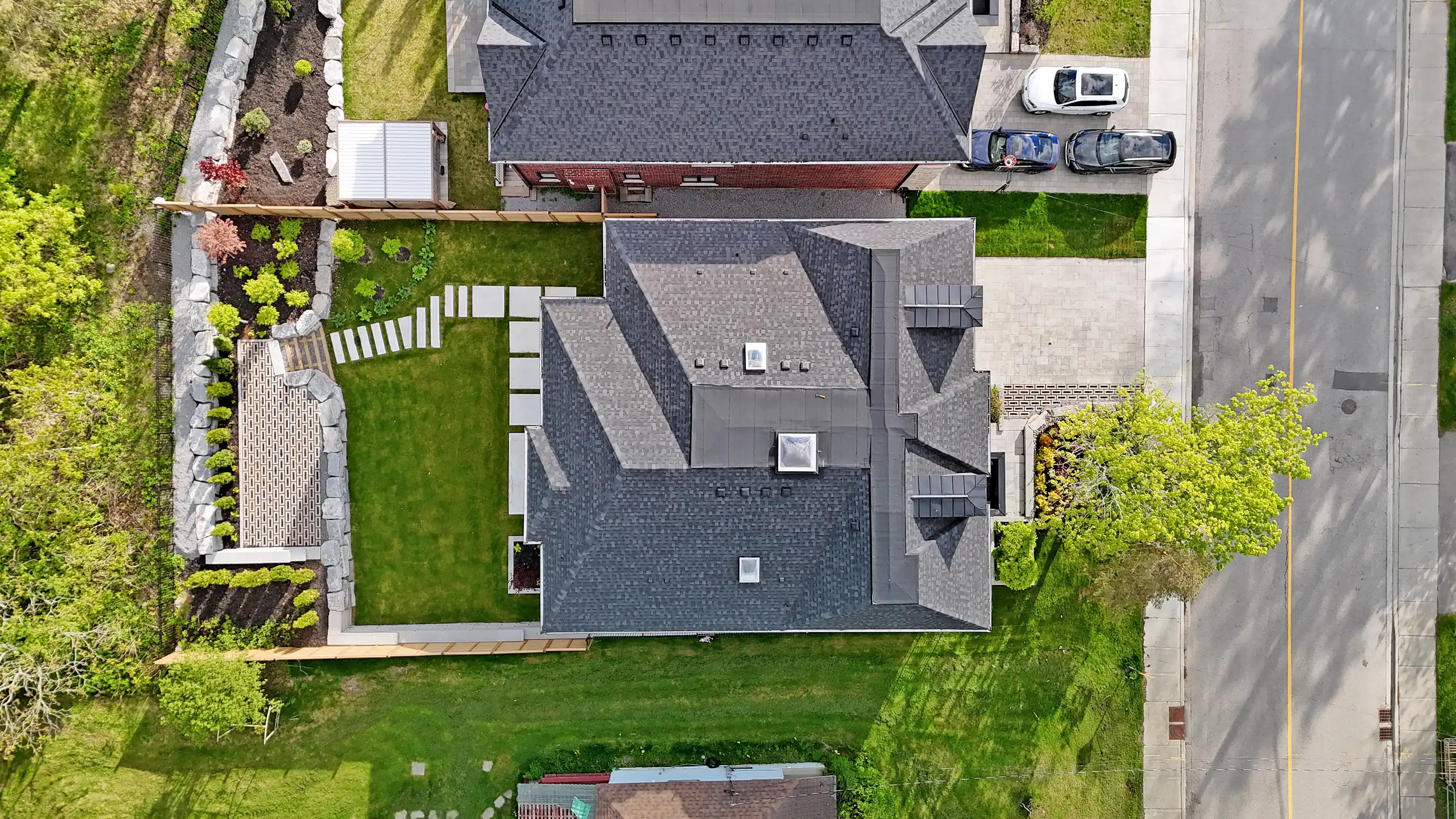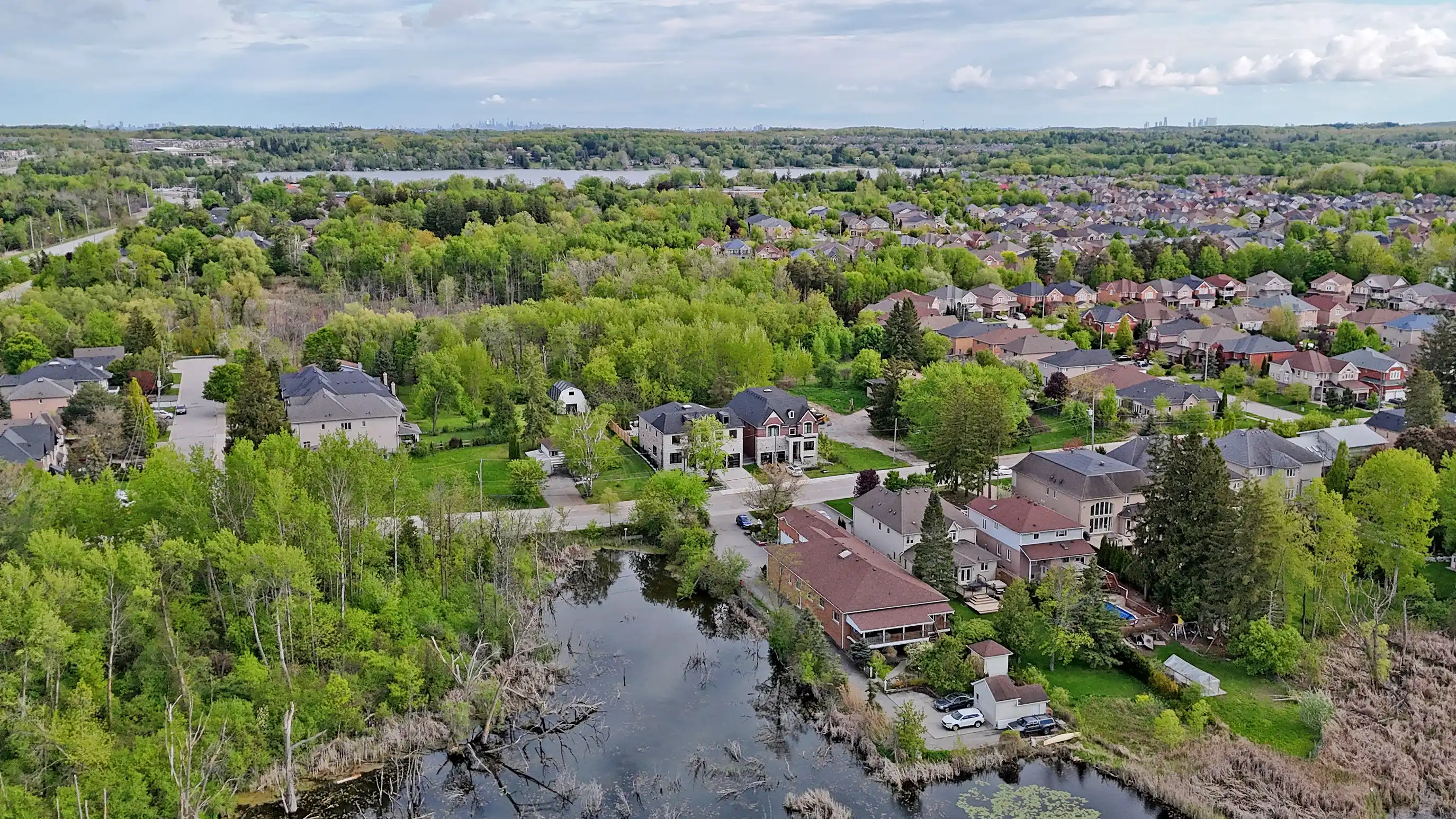 Southern facing rear grounds backing onto ravine and front yard facing toward natural pond creates scenic natural views from every angle! Rear grounds curated for seamless indoor and outdoor living with ease, boasting Armour rock, concrete slab walkway, upper & lower entertainment areas, access to main level plus lower level, and space for a pool & cabana should your heart desire.