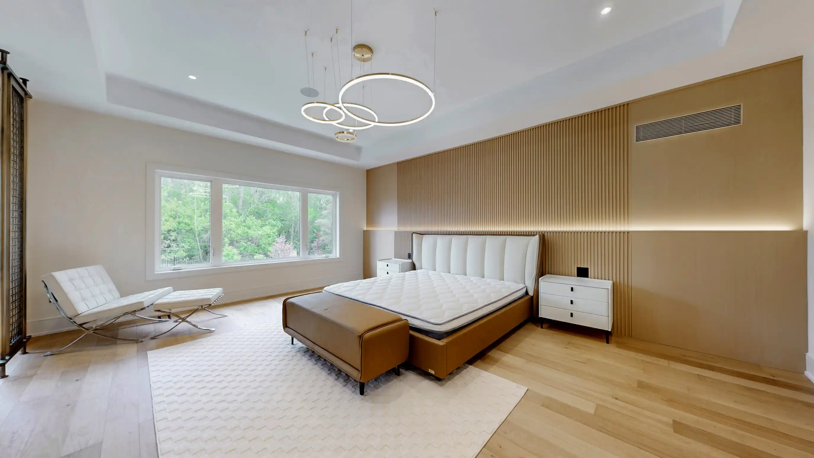Southern facing rear grounds backing onto ravine and front yard facing toward natural pond creates scenic natural views from every angle! Rear grounds curated for seamless indoor and outdoor living with ease, boasting Armour rock, concrete slab walkway, upper & lower entertainment areas, access to main level plus lower level, and space for a pool & cabana should your heart desire. Designed to blend classic chateaux of Bordeaux elegance and modern architecture. Floor to ceiling tile mosaics, flat and fluted floor to ceiling paneled walls with LED channel lighting and window walls ushering natural light into your living space. Comfort and sophistication intertwine with open concept living, sensor-activated cabinets, in-fridge cameras, butler's pantry, HiFi speaker system with high-fidelity music at your command and customized architectural light fixtures. Two dedicated office spaces for the modern family. Two laundry rooms. Primary bedroom resort like retreat presents a ensuite bath overlooking ravine with glass enclosed shower. All 2nd floor baths w/ heated floors. Lower level with impressive wet bar area for entertainment, 7.2 THX certified sound system to your soundproofed theater turns movie night into an experience, professionally designed dry sauna, exercise room plus additional sleeping quarters. Triple car garage with soaring ceilings provide clearance for a lift if needed. Commercial grade WiFi access point to each floor & backyard, built-in home automation control stations to control security, appliances etc. spray foam insulated basement, rough-in for dual functional solar system to support electricity generation & off-peak energy storage, centralized humidifier and dehumidifier, EV charger rough-in, & eco-conscious grass pavers. Striking distance from great golf courses, amenities of Richmond Hill, Aurora, Newmarket, King City and Stouffville. Short drive to SAC, SAS, HTS, Picking College, CDS, and Villanova College.
