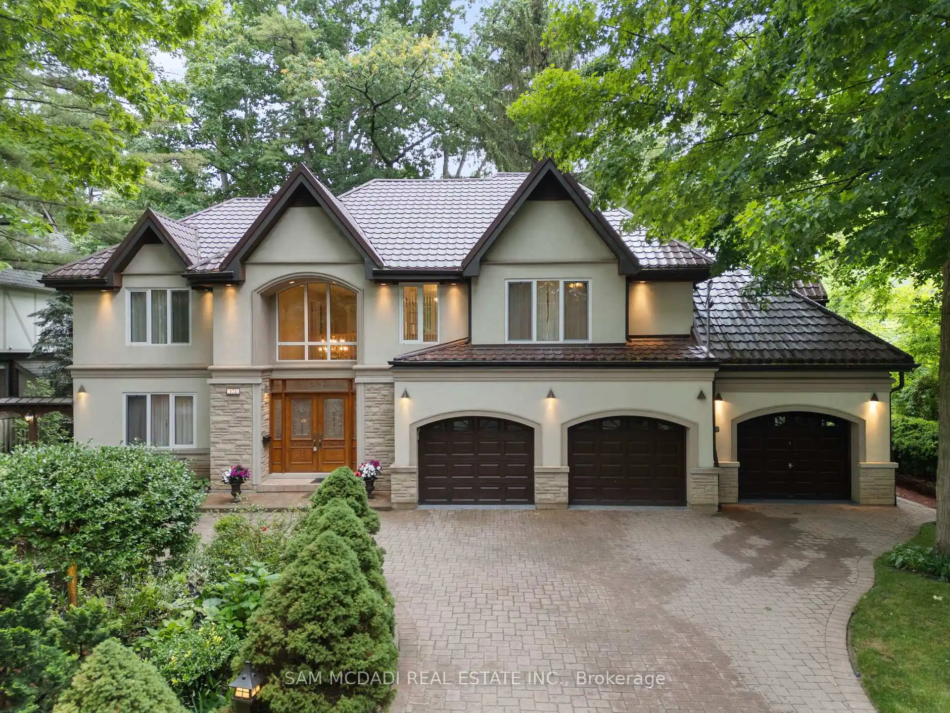 Tucked within the prestigious enclave of Lorne Park Estates, 978 Tennyson Avenue presents an exceptional opportunity to reside in one of South Mississauga's most exclusive and storied communities. Designed for both day-to-day comfort and elevated entertaining, the home features over 4,000 sq. ft. of finished living space, with wide-plank hardwood floors, and marble on the main floor, detailed crown moulding, recessed lighting, and a welcoming fireplace anchoring the family room. At the heart of the home, the chef's kitchen is appointed with granite countertops, generous cabinetry, and overlooks a breakfast nook with walkout access to the rear patio, creating seamless indoor-outdoor flow. A bright solarium with a 7-person hot tub offers year-round relaxation, while the layout is ideal for multigenerational living or hosting guests. Above, the spa-like primary suite includes a walk-in closet, 5-piece ensuite, and private balcony, complimented by three additional bedrooms, each with their own ensuite/semi-ensuite. The finished lower level extends the living space with a wet bar, second laundry, and private entrance, perfect for in-laws or future income potential. Surrounded by expansive acres of private woodlands, this elegant residence offers access to residents-only amenities including a private beach, scenic walking trails, tennis court, fire-pit, park, and playground, all set within a peaceful, family-friendly setting. Notable features include an aluminum roof, three garages, and a 450 sq. ft. patio. Ideally situated on a quiet private street just moments to top-ranked public and private schools, Port Credit, GO Transit, and major highways including the QEW and 403.