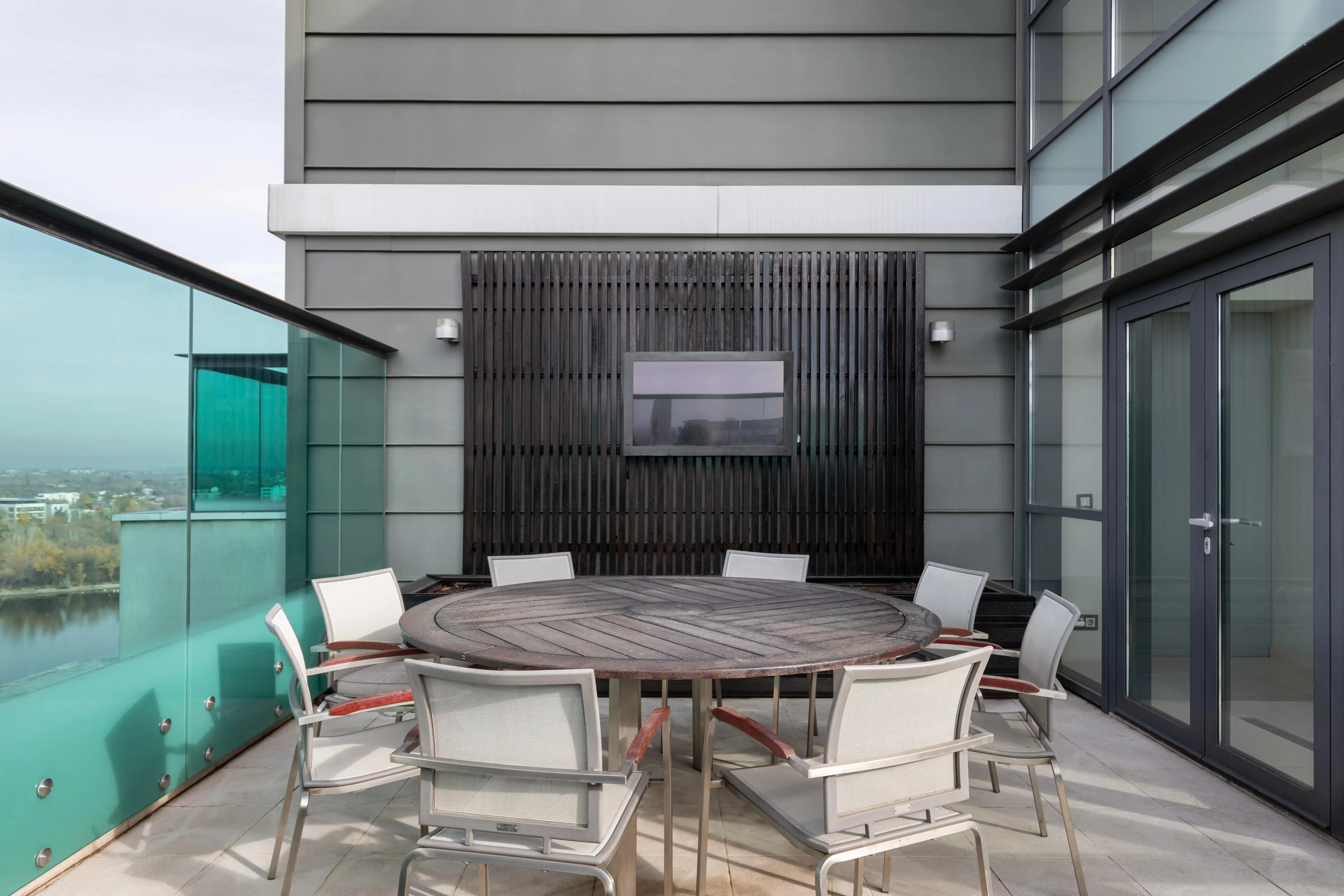 Located in Emerald Residences, Bucharest, this extraordinary 500 sqm (~5381.96 sq ft) duplex penthouse redefines high-end living with unparalleled lake and city views.General OverviewElevators: Two Shindler elevators with card-access control, ensuring exclusive and secure entry into the penthouse.Bedrooms: 4 spacious and elegantly designed suites.Bathrooms: 4 high-end designer bathrooms featuring Gessi fixtures.Living Areas: Expansive, flooded with natural light through top-to-bottom Schüco windows offering breathtaking lake views.Smart Home System: Gira home automation, allowing full control via smartphone or remote.Windows & Curtains:Top-to-bottom Schüco windows with electric curtains (Somfy) for effortless light and privacy control.Exclusive Features & AmenitiesPatios & Outdoor LivingFront Patio: Overlooks the lake, featuring:Two large inox (stainless steel) umbrellas with retractable shade sails from Velombra - CorradiSunbeds, a designer lounge area, and an outdoor dining space.Commercial-grade Jacuzzi by Jacuzzi for ultimate relaxation.Pergola with Corradi retractable shade for a sleek, adaptable outdoor experience.Back Patio:High-end inox summer kitchen, featuring a fully equipped outdoor cooking station.Garden area and large dining table for al fresco gatherings.Defrosting patio technology ensures usability year-round.Glass railings raised to 6ft with built-in ambient lighting for enhanced safety and aesthetics.Kitchen & AppliancesCustom Miele appliances, including:Espresso machineTwo refrigeratorsTwo freezersWine refrigeratorDishwasherSoft-closing shelving system instead of traditional doors for a sleek, modern look.Design Elegance:Barisol stretch ceiling with integrated chandeliers.Large electrical doors leading to the patio.Motion-sensor doors for the living room, master bathroom, and walk-in closet.Smart Home & High-Tech FeaturesDoors:All first-floor doors are electric with sensor-based glass opening for a seamless and modern feel.Security:Bulletproof, fire-resistant entry doors by Gasperotti – the highest standard for safety.24/7 security presence at both the front and back of the complex.Music & Entertainment:Bowers & Wilkins surround sound system throughout the entire house, including hallways and every room.Indoor & outdoor entertainment system.Smart TVs in every room, including the kitchen and patios.Luxury & High-Tech LivingSecurity & PrivacyBulletproof entry doors at all three entrances.24/7 security presence at both front and back of the complex.Entertainment & ComfortIndoor & Outdoor sound system for a seamless audio experience.Smart TVs in every room, including the kitchen and patio.Italian high-end furniture by Lago and Pininfarina-designed master bedroom.Dining and living areas feature Italian marble tables and finishes.Premium Flooring & FixturesCameron 3cm thick high-end hardwood flooring throughout.Large granite tiles in select areas.Decorative hidden radiators for aesthetic appeal.Advanced Climate ControlHeated & cooled floors throughout.Two rooftop chillers for efficient AC & heating.All radiators are inox (stainless steel) and hidden behind decorative elements for an unobtrusive aesthetic.Unique AdditionsPersonal crane on the roof for easy furniture movement.25 designer chandeliers illuminating the space.Outdoor protective metal curtains for privacy and security.Unparalleled Views & Outdoor ExperienceSunrise & lake views from the front patio.Sunset & city skyline views from the back patio.Sunrise over the lake & Sunset city views from the patios complete this penthouse’s magic, making it a one-of-a-kind masterpiece in Bucharest.