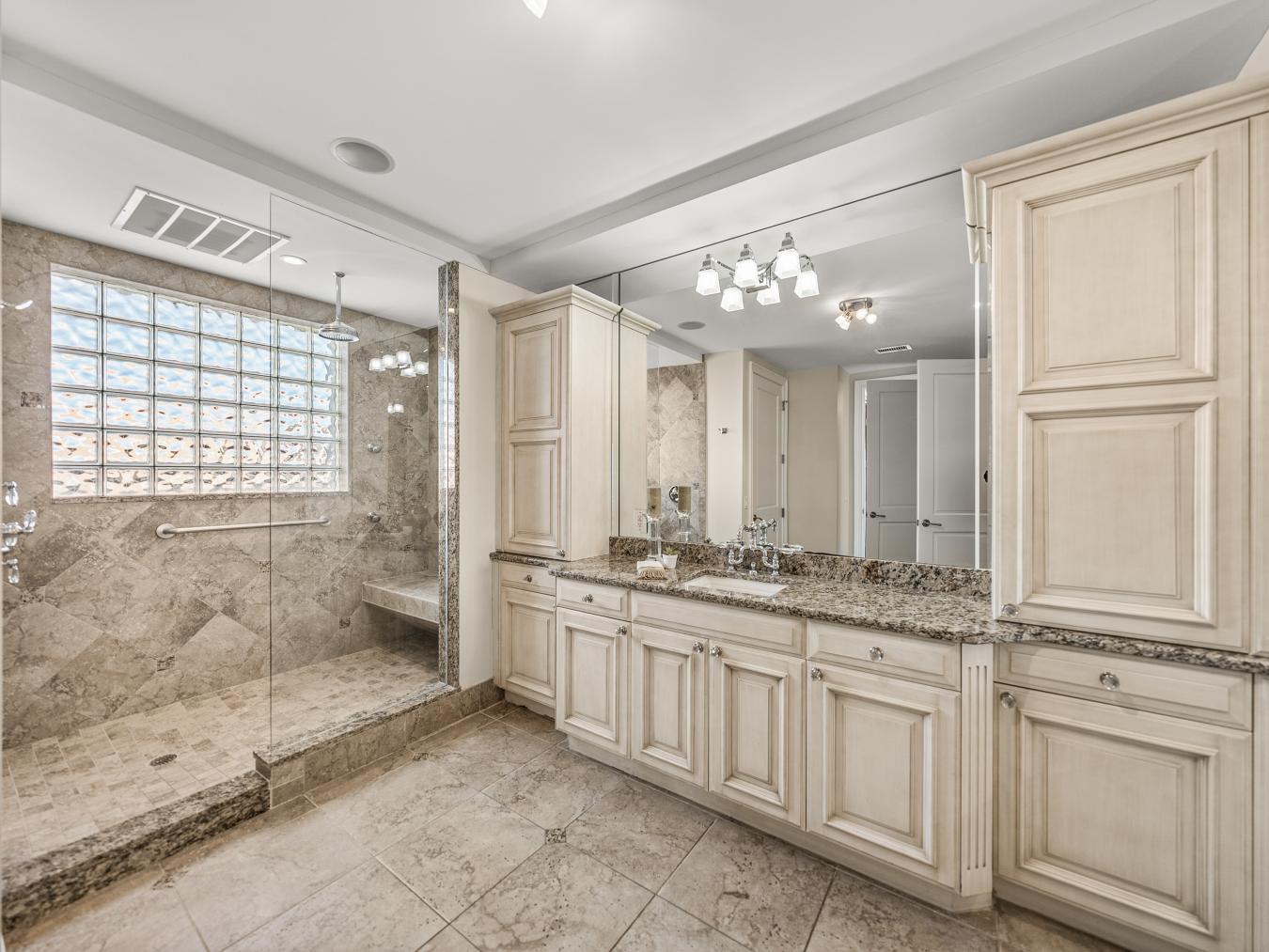 Expansive and Glamorous UES Duplex with Private Outdoor Space Measuring over 3,000 interior square feet and boasting an unbelievable five private outdoor spaces, this sensational duplex combines the scale of a townhouse with the light, views, and elevation of a high-floor home on the Upper East Side-housed in an impeccably run full-service condo with amenities. Every room opens to greenery or skyline vistas. Balconies extend from each bedroom, with additional terraces off the living and dining rooms-rare in any Manhattan residence. To the west, tree-lined 84th Street offers a glimpse of the Park. The main level is designed for entertaining, with fluid transitions that define the living, dining, lounge, and kitchen spaces while preserving an airy, loft-like openness. Light and views flow poetically across the rooms and out to multiple terraces-ideal for relaxing in the sun or grilling. At the heart of the home, the chefs kitchen is anchored by an oversized L-shaped island with seating for six, complemented by a banquette dining nook. Dark-stained cabinetry with stainless-steel accents conceals an appliance garage, built-in spice rack, and abundant storage. Appliances include a Sub-Zero 30" Classic Refrigerator, Wolf six-burner range and oven, Miele dishwasher, and multiple Sub-Zero beverage drawers. The adjoining formal dining room spans nearly 18 feet and opens to a balcony with an electric grill. With space for large gatherings and two Sub-Zero wine refrigerators, the main level was designed for entertaining. Completing this level is a secondary suite generous enough to rival many primaries. This flexible suite includes a home office with built-ins and a spacious guest bedroom or alternative primary with sitting area. The floor also features a discreet powder room and an additional bedroom with a full bath and dressing room. A dramatic floating staircase with a sculptural steel railing anchors the living space and leads gracefully to the upper level, basking in double-height city views. On the upper landing, a built-in desk for two, bathed in natural light, serves as a central home office hub, while a proper laundry closet with a Miele washer/dryer and shelving adds convenience. The primary suite is a private sanctuary of exceptional scale, framed by a terrace and a windowed seating area that invites slower starts to the day-perfect for coffee, reading, or even a light-filled mini gym or lounge. Expansive custom storage, including a walk-in closet, enhances both functionality and elegance. Two full bathrooms complete this retreat, a rare luxury in any home. One offers a Jacuzzi soaking tub and glass stall shower set beside a large window overlooking the city. The second features a walk-in shower and generous counter space. Both include radiant heated floors and sophisticated tilework. Across the landing, another generous bedroom with a windowed en-suite bathroom and excellent storage completes the upper level. Additional highlights include hammered metal sinks, curated architectural lighting, City Quiet Windows in the bedrooms, a generous pantry, and multiple walk-in closets. 401 East 84th Street offers the convenience of a full-time staff and resident manager, paired with a collection of amenities- all with no additional amenity fees. Residents enjoy a rooftop deck, fitness center, laundry facilities, childrens playroom, and a versatile event space. The lobby was newly updated as well. The Dunhill all moments from the Q train, the neighborhoods dining scene, Carl Schurz Park, and top-rated private and public schools. Note: Buyer responsible for a reserve fund contribution equal to three months of common charges, due at purchase application submission. This sale uniquely includes ownership of 4 private storage units.