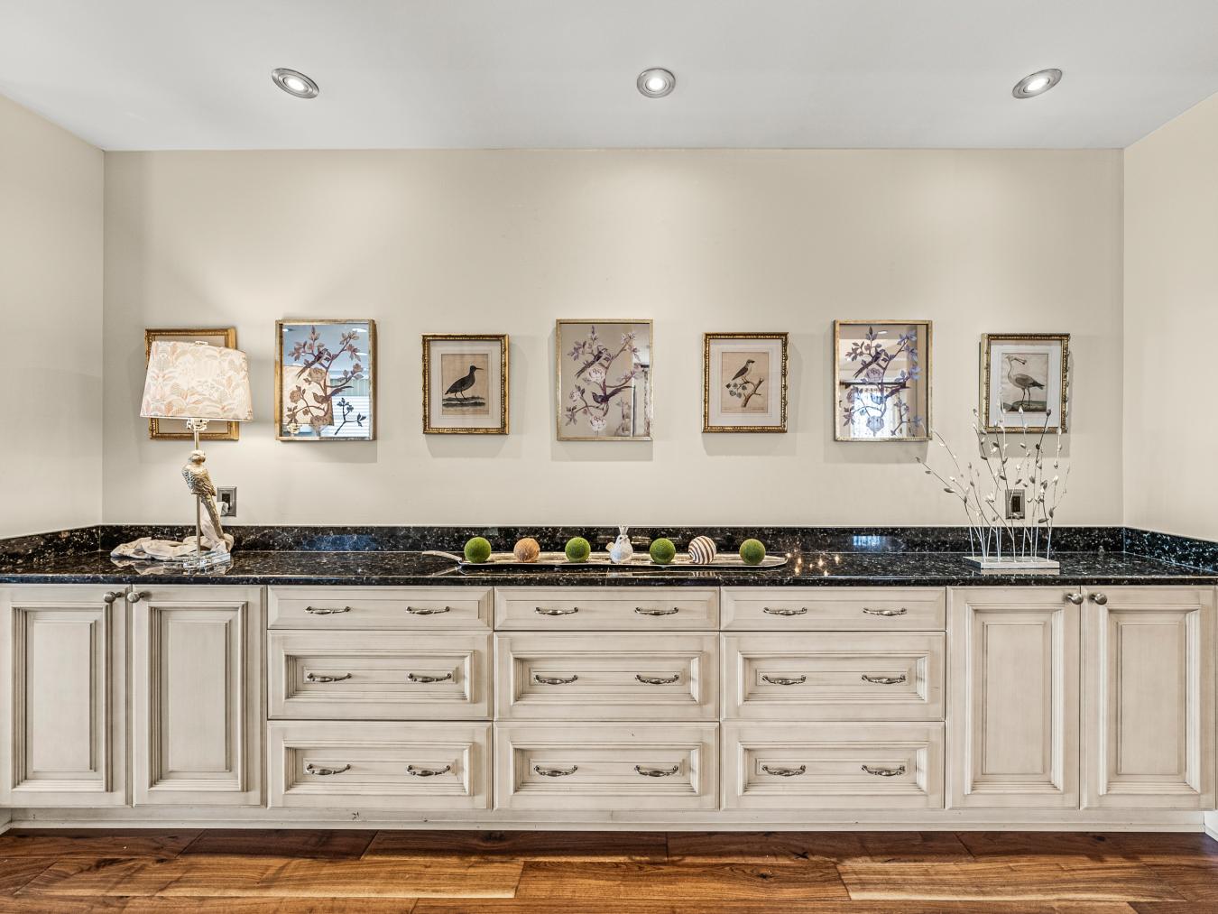 Stunning Custom Ranch with Basement on Waterfront Lot - No HOA! This custom-built home offers exceptional craftsmanship and thoughtful design throughout. Enjoy lake living with your own private dock and the freedom of no HOA restrictions. The main level features an open floor plan ideal for entertaining, showcasing a gourmet kitchen with custom cabinetry, quartz countertops, and top-of-the-line appliances including a 48" smart commercial-style gas range with 6 burners, electric griddle, true convection oven, a 30" side-by-side refrigerator, and a 30" side-by-side freezer. The spacious primary suite includes a luxurious bath and an oversized walk-in closet, along with a secondary bedroom conveniently located on the main level. Step out to the covered back deck overlooking the water - the perfect spot for morning coffee or evening sunsets. The lower level offers even more space with two additional bedrooms, multiple flex rooms, a large great room, and a full bar area complete with refrigerator, sink, and quartz countertops - ideal for hosting and entertaining. A total of four garage spaces - a three-car garage plus an additional side-entry one-car garage - provide ample room for vehicles, storage, or car enthusiasts. Every detail has been carefully curated by a professional designer with selections that are truly too numerous to list. This home blends elegance, functionality, and comfort in a serene waterfront setting.