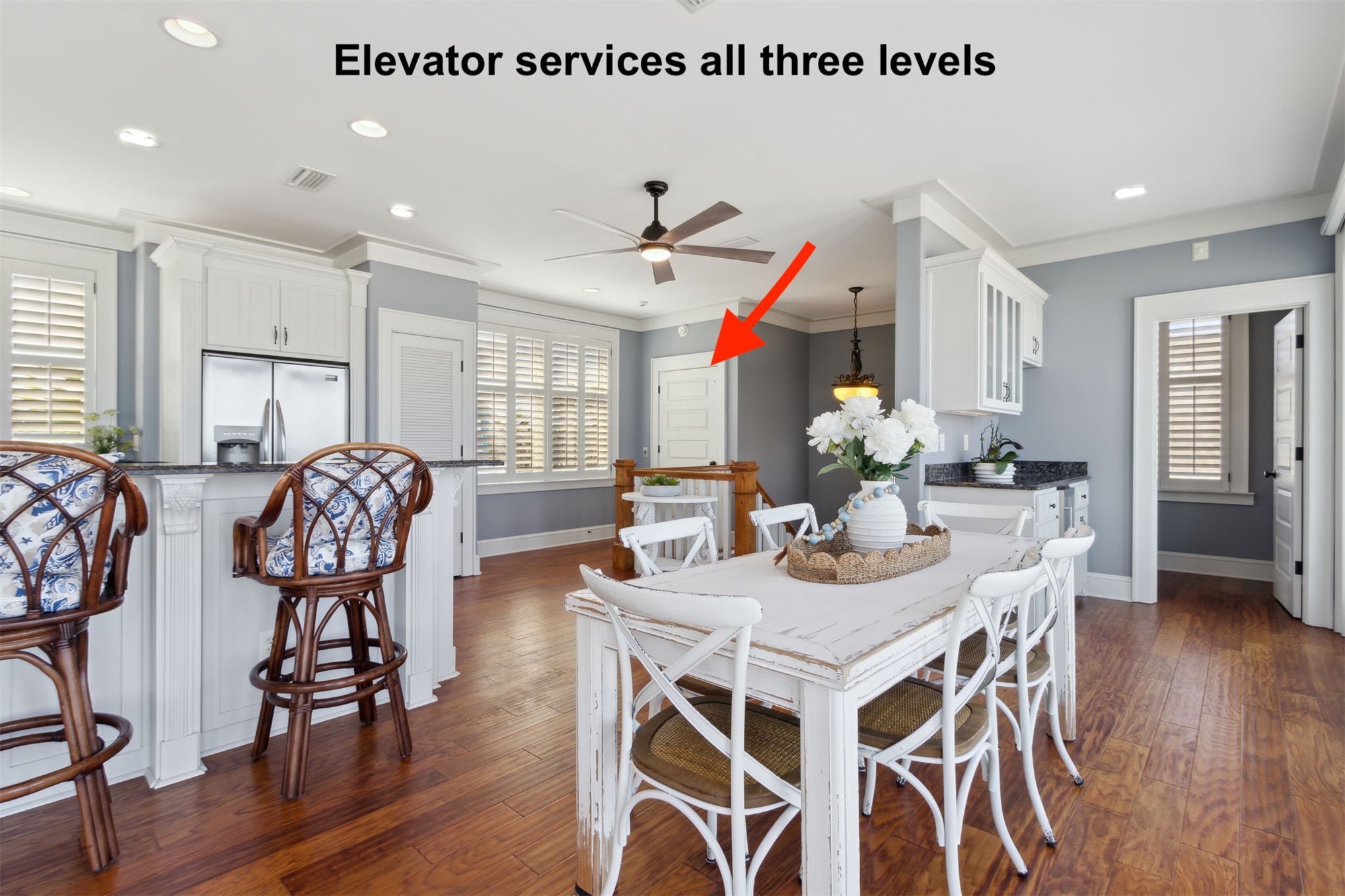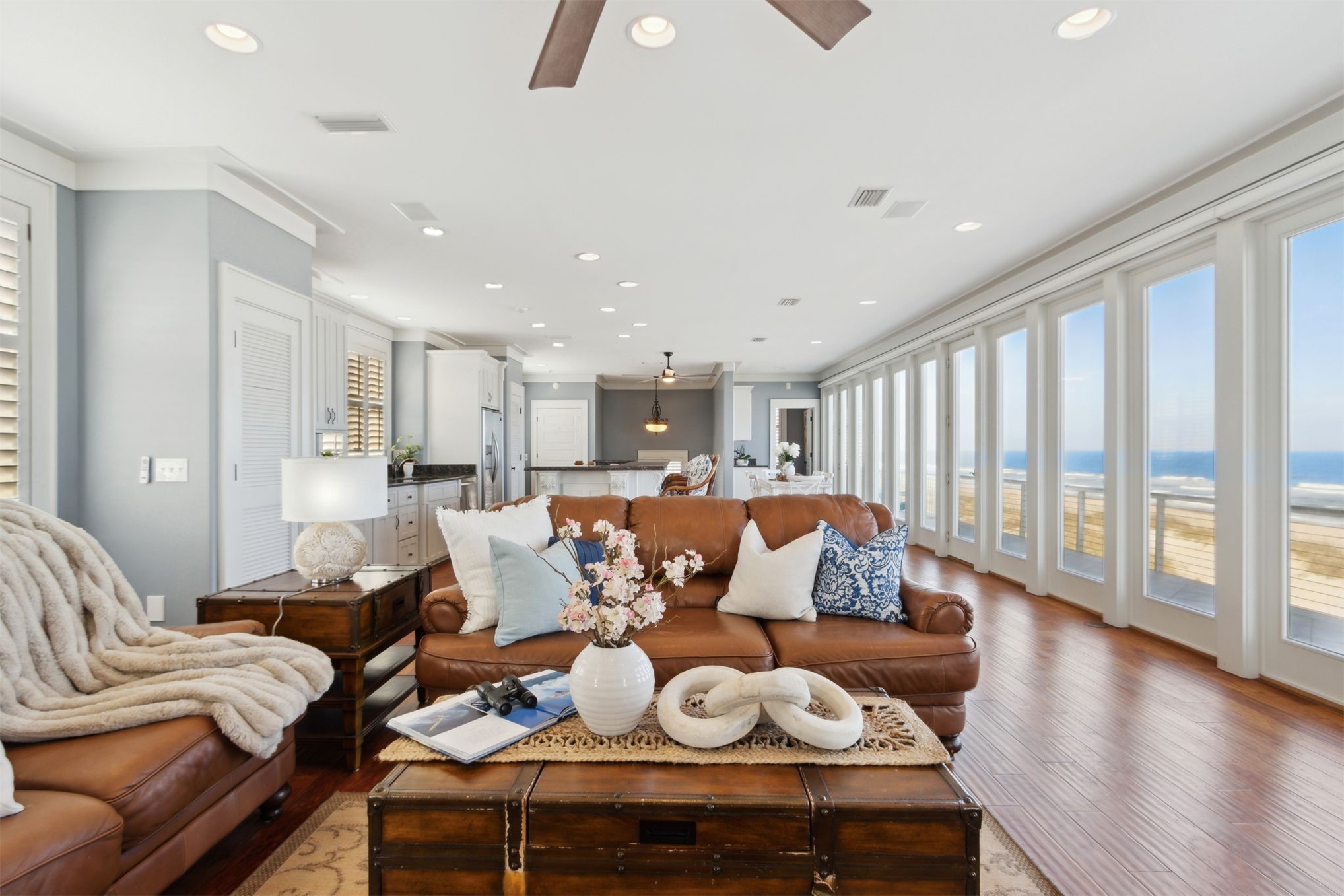 Impeccably maintained, this OCEANFRONT MASTERPIECE boasts 75 FEET OF DIRECT OCEAN FRONTAGE and a GENEROUSLY SIZED LAYOUT WITH BEDROOMS THAT SLEEPS 10. Built with a CEMENT BLOCK, HARDYBOARD EXTERIOR and NEWER HVACs & GALVANIZED METAL ROOF, it boasts both a majestic presence and incredible durability against the elements. No long boardwalks, no hauling beach gear, this is true oceanfront living. Unlike many oceanfront areas further down the road, THIS HOME IS POSITIONED ON A NON-DRIVABLE SECTION OF BEACH, OFFERING UNINTERRUPTED VIEWS, NATURAL DUNES, AND A FAR MORE PRIVATE COASTAL EXPERIENCE. Spanning a well-designed layout, IT MAXIMIZES OCEAN VIEWS AT EVERY LEVEL effortlessly connecting all living space by a PRIVATE ELEVATOR for convenient access. The top floor main living area is designed for relaxed coastal living, with a WALL OF FLOOR-TO-CEILING GLASS DOORS THAT FRAME JAW-DROPPING OCEAN VIEWS AND OPEN ONTO A SPRAWLING DECK, perfect for sunrises and stargazing. The airy OPEN-CONCEPT layout flows beautifully from kitchen to dining to living, with all spaces oriented toward the ocean. The CHEF'S KITCHEN features a large eat-in island, premium white cabinetry, granite counters, and a wet bar for easy entertaining. All BEDROOMS ARE OVERSIZED AND FEATURE AN ENSUITE BATH, ALONG WITH PANORAMIC OCEAN AND BEACH VISTAS. STYLISH FURNISHINGS ARE NEGOTIABLE and create a fun beachy vibe, while premium finishes add touches of luxury and indulgence. ENJOY 10 FOOT CEILINGS, GAS FIREPLACE AND NO CARPET—ONLY WARM CHERRY-HUED PLANK FLOORING for low-maintenance beachside living. LOCATED JUST ONE WALKABLE MILE FROM DINING AND ENTERTAINMENT, this turn-key coastal retreat is designed for joy, relaxation, and lifelong memories.
