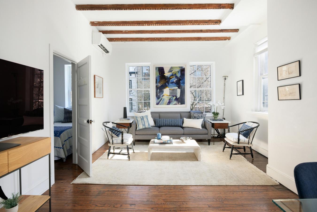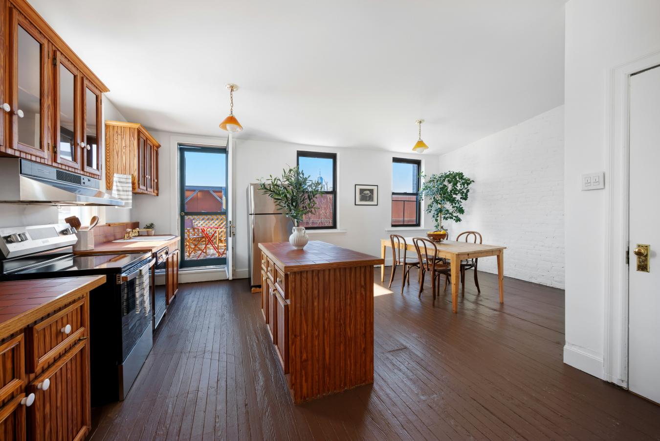 Built in Greek revival style during the early 1800s, The Landmark Preservation Commission recognized this row of Vinegar Hill townhouses as a protected Historic Landmark District in 1997. On this charming cobble stone street, 54 Hudson Avenue is a townhouse that provides a clear view into the past for your best days ahead. 54 Hudson Avenue is a multi-use townhouse consisting of two charming floor through residential apartments, a classic storefront/office, a fully equipped art studio, and lovely garden. The mechanicals are located in the sub cellar. Once used as a set for Boardwalk Empire, this light filled, open layout storefront offers many options for use. The vintage features include a bay window, pressed relief decorative ceilings, and crown moldings. School house lighting fixtures, and custom stainless steel shelving add an efficient, contemporary touch. The mechanicals are upgraded to current standards. They include a fully renovated bathroom and a high quality, split central air-conditioning system. The storefront is ready for business, classes, or for your own personal use. This warm and inviting space provides a perfect home to set up your shop, art studio, exercise studio, or office. Or, collect market rate income by renting out the store. Extend your business into the garden seasonally, keep the garden as your personal sanctuary, or both. The artist studio is located directly below the storefront. The open space has direct access to the garden and street. Specifically designed for a sculpture and pottery studio, the open floorplan has many uses to suit your needs. This space is equipped with all new electric and plumbing, and split central air conditioning. Additionally, the studio is upgraded with ceramic tile floors, high end lighting, a large double stainless steel sink, and an additional renovated bathroom. It is all set up, and ready to use. The brand-new mechanicals to service this home are in the sub cellar, below the artist studio. As Electricity was not available at the time this townhouse was built, each apartment has large windows for maximum natural light. Each apartment has a thoughtful kitchen layout including updated appliances. The second floor apartment maintains an open floorplan. The bathroom is fully renovated with high end fixtures and a washer/dryer. Original woodwork and doors are carefully preserved. Natural light and brownstone charm. The top floor residential apartment has high beamed ceilings, a restored vintage bathroom, and a private deck with skyline views. This is a townhouse that integrates home and work, separated by floors. This historic property is ideal for private use, live/work, or an investment property, in full or in part. High quality materials are combined with original historic charm inside and outside. Light filled throughout, where workspace will feel like home. Each residential apartment is ready for occupancy. The two apartments can be combined into a spectacular duplex, if desired. Near Brooklyn Heights and the world class Brooklyn Bridge Park, you can experience the great new shops and restaurants close by in Dumbo, Fort Greene, and Downtown Brooklyn. The peace and tranquility at 54 Hudson Avenue remains the same.