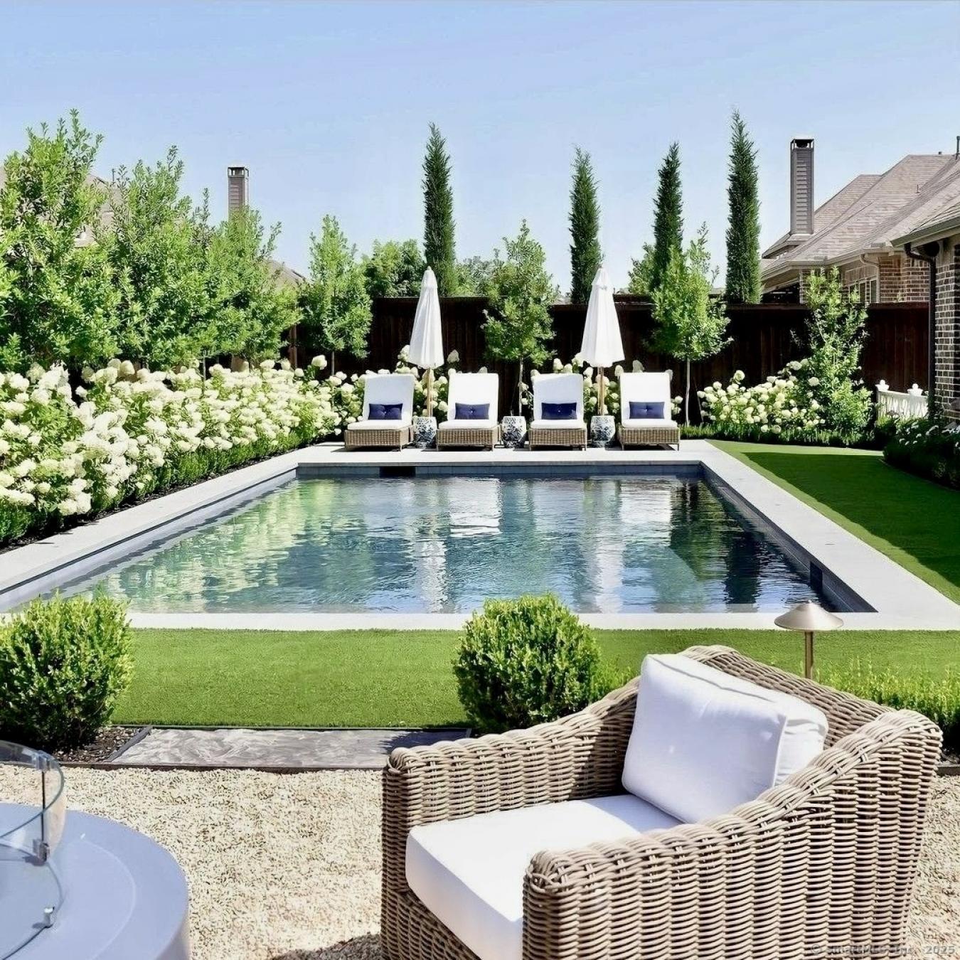 Luxurious features & private lush, landscaped grounds await..... This distinctive home has golf views on three sides. Large, newly resurfaced & tiled pool w/waterfall spa. Spacious bluestone patio w/lush landscape. Pool Cabana w/beverage station great for entertaining w/electric fireplace & TV. Seperate pool bath & O/S shower. New Gas Firepit w/separate patio.