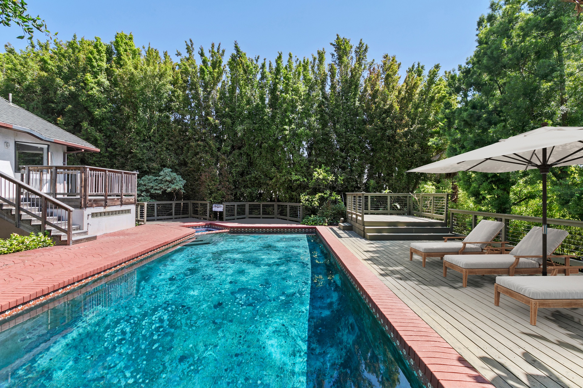 Elegance, Privacy, and Comfort in the Heart of Encino. Nestled in one of Encino's most coveted neighborhoods, this exquisite gated estate sits on a generous 0.41 ACRE LOT, epitomizing luxury living. With 6 spacious bedrooms and 6 bathrooms, this residence blends refined style with everyday comfort—ideal for sophisticated entertaining and peaceful retreatStep inside to experience a beautifully designed floor plan balancing functionality and comfort. The residence features a formal dining room perfect for elegant dinner parties and a cozy casual dining area for daily gatherings. At the heart of the home, a custom bar serves as a striking centerpiece for effortless entertaining. Additional highlights include two fireplaces and a luxurious primary suite with dual walk-in closets for ample storage and convenience.The home features two separate staircases for privacy and versatility. One leads to a private office or bonus room with a bathroom above the garage—perfect for remote work, creative space, or guest accommodations. The second staircase leads to four well-appointed bedrooms, each with its own bathroom, providing a comfortable and practical layout.The expansive backyard offers potential for an Accessory Dwelling Unit (ADU), with the rear facing a quiet cul-de-sac—allowing a separate private entrance. Whether a guest house, rental unit, or multi-generational living, the possibilities are endless.The gourmet kitchen flows seamlessly into both formal and informal living spaces, bathed in natural light from oversized windows and elegant doors opening to the tranquil outdoors.Outside, enjoy resort-style living on your private 0.41-acre lot, complete with a sparkling pool, jacuzzi, lush landscaping, and a spacious patio perfect for al fresco dining or relaxed lounging. A two-car garage and generous driveway provide ample parking for family and guests.Located minutes from acclaimed restaurants, schools, and boutique shopping. Don't miss this incredible opportunity to own a home with such exceptional features. Contact us today to schedule your private showing and start envisioning your new home!!