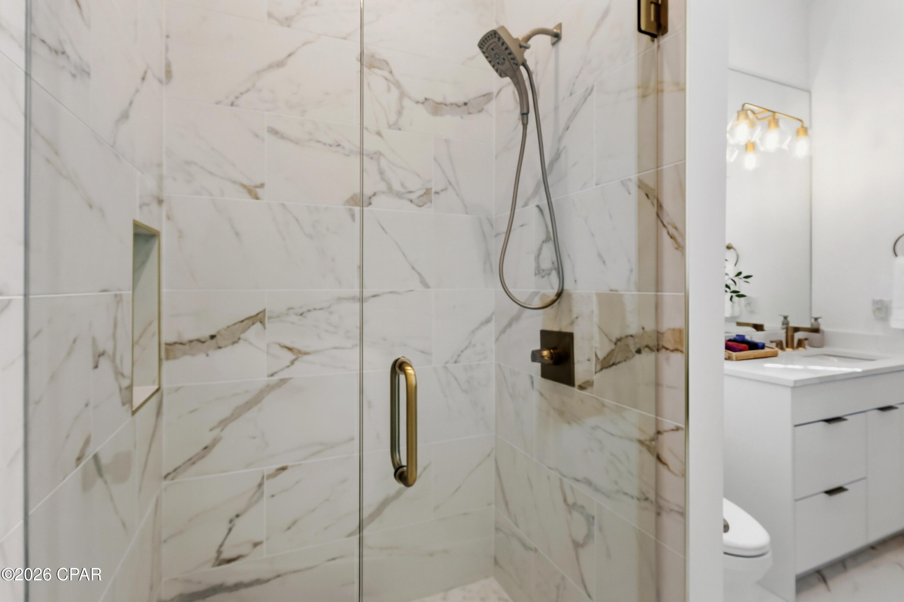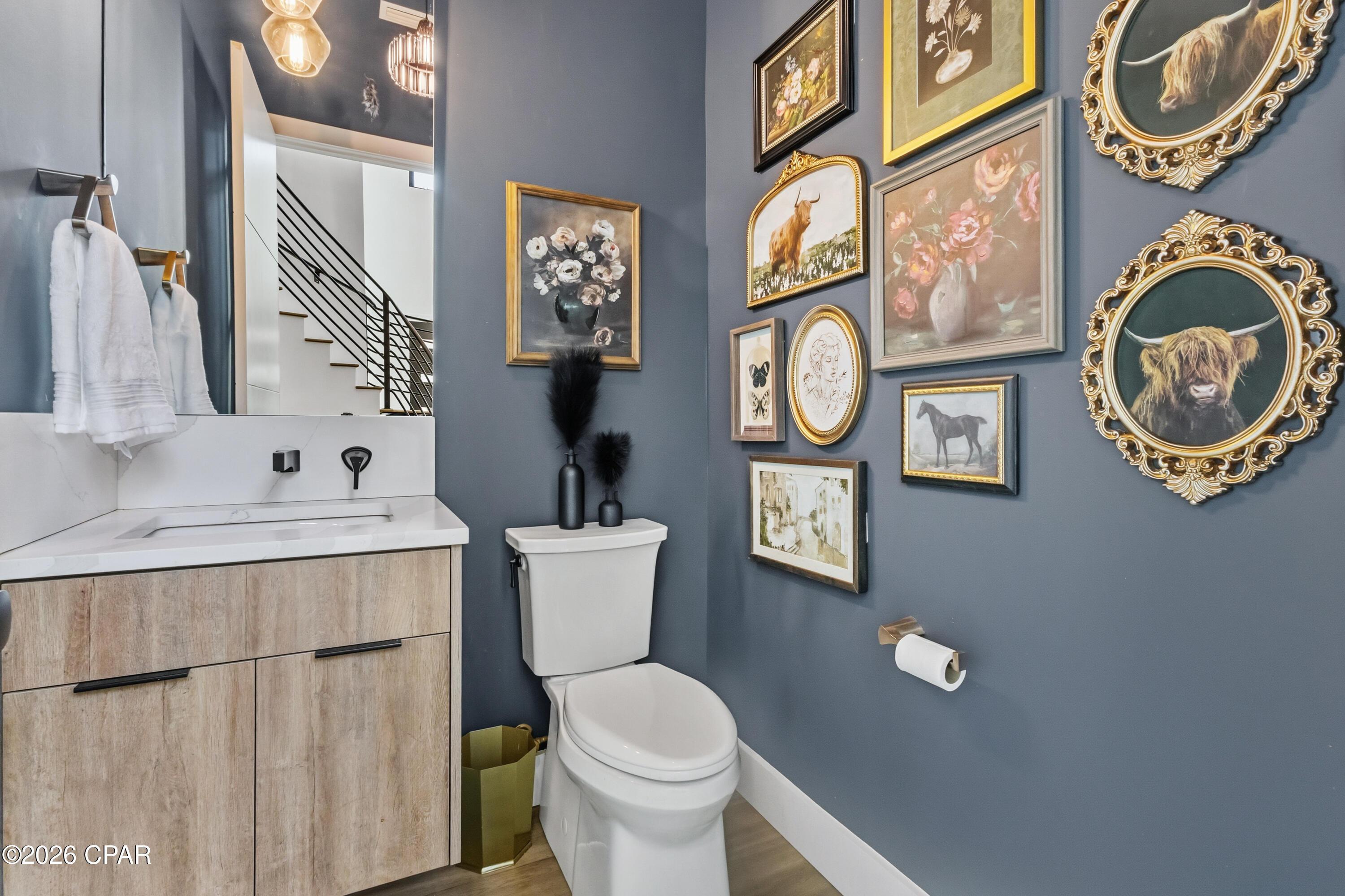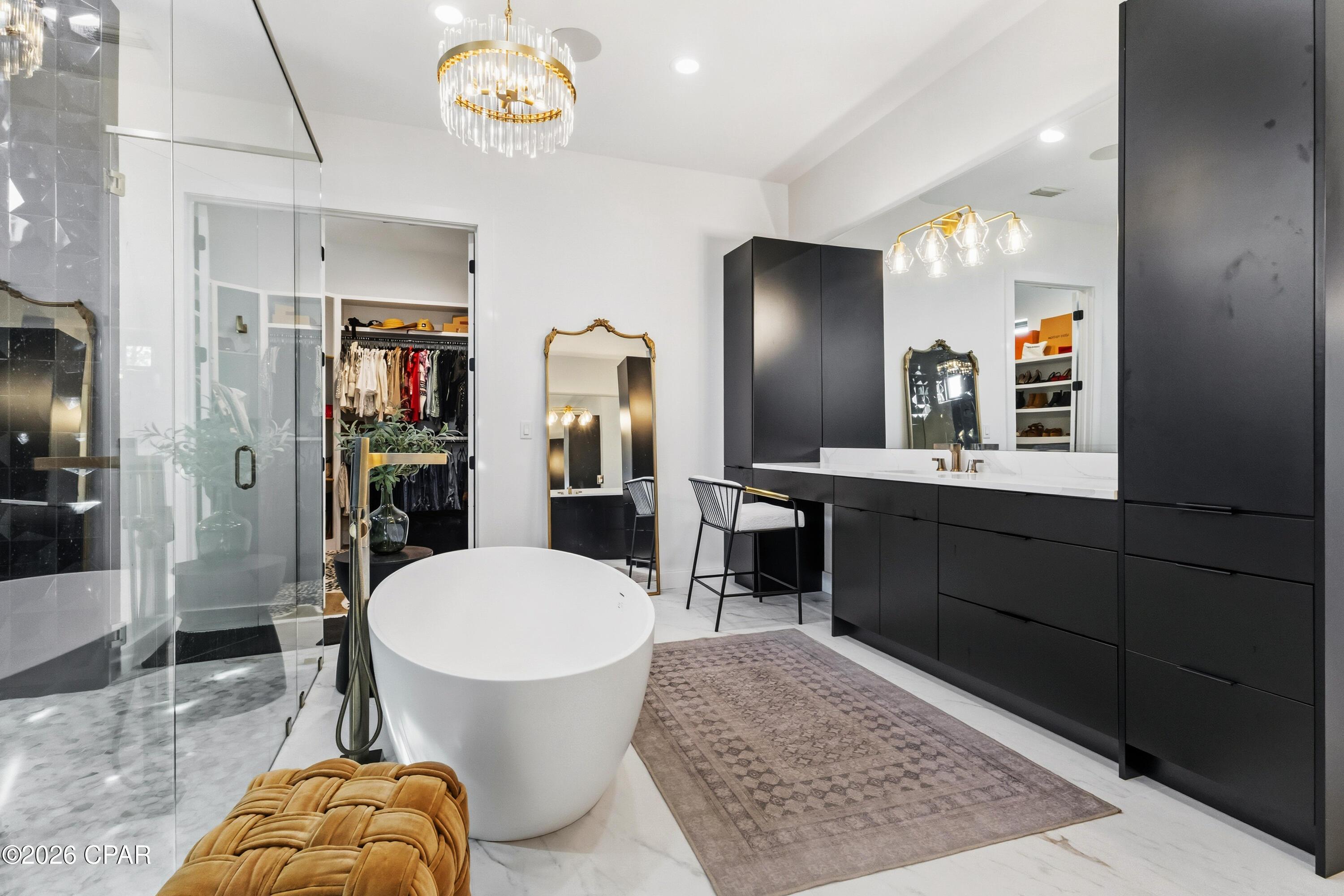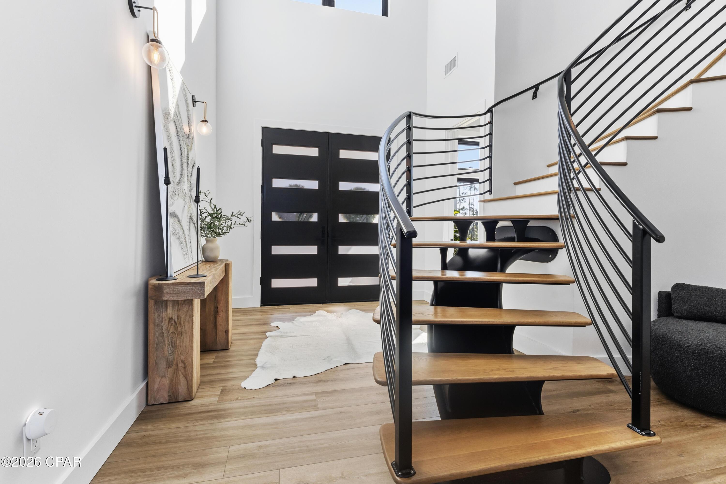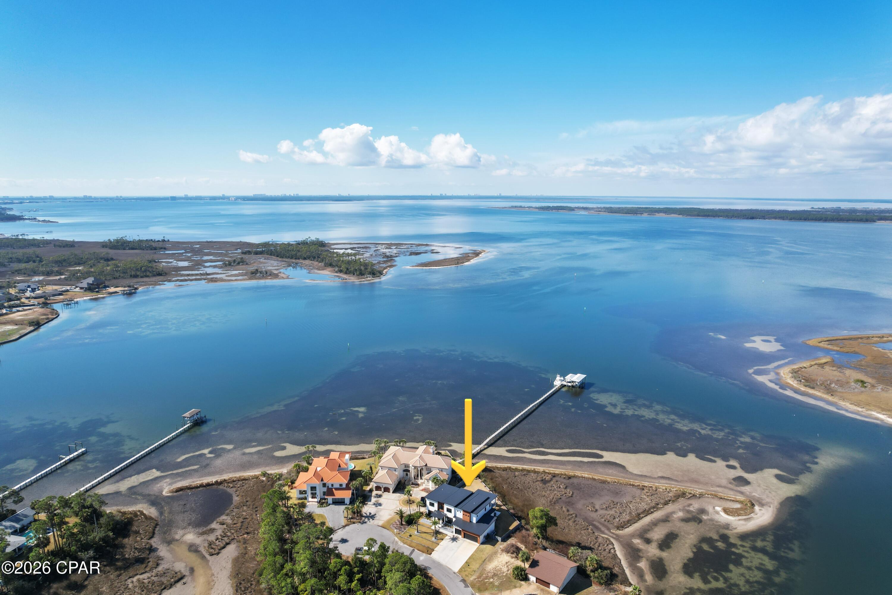 Experience refined waterfront living in this stunning, modern, two-story home perfectly positioned on the bay in Lynn Haven. Designed to maximize comfort and views, this expansive residence offers deep water access and unobstructed sunset views. Upon stepping outside youre greeted with a spectacular bay front pool overlooking the water that creates a truly unforgettable backdrop for everyday living. The interior of this home features upscale appliances, designer fixtures, and clean modern finishes throughout. A perfect blend of luxury with family functionality. The first level features an office, downstairs bedroom and bathroom, and a den that could transform to a formal dining room for buyers. The master bedroom with balcony will transport you to a vacation style oasis with a large bathroom, his and her closets, soaking tub and a glamourous shower. Two more bedrooms accompany the primary upstairs and feature custom woodwork and would rival the primary with ample space, separate shower, soaking tub and views. Generous living spaces and a seamless indoor, outdoor flow make this home perfect for entertaining. This prime waterfront property delivers the best of coastal living while being in the desirable Lynn Haven community.