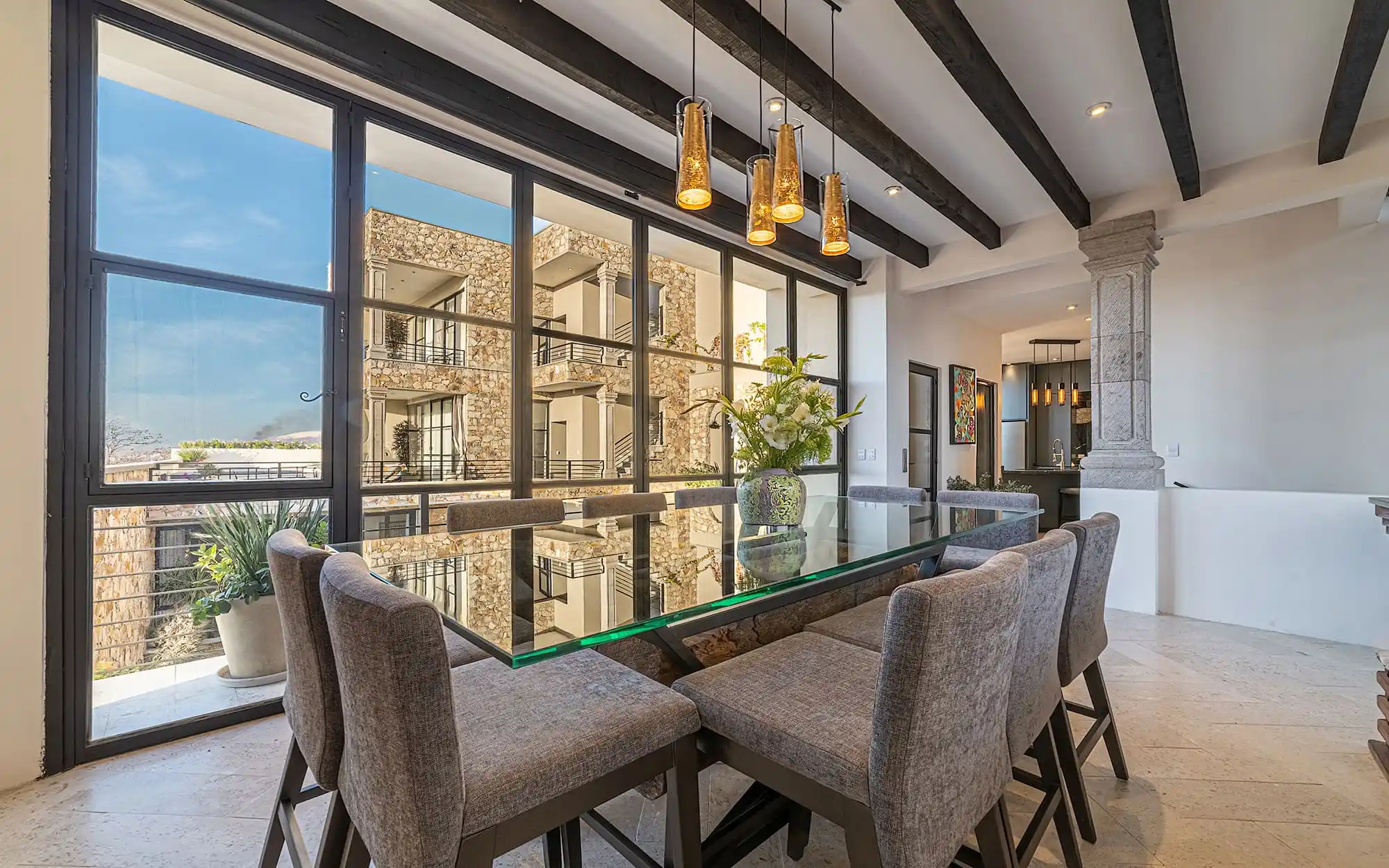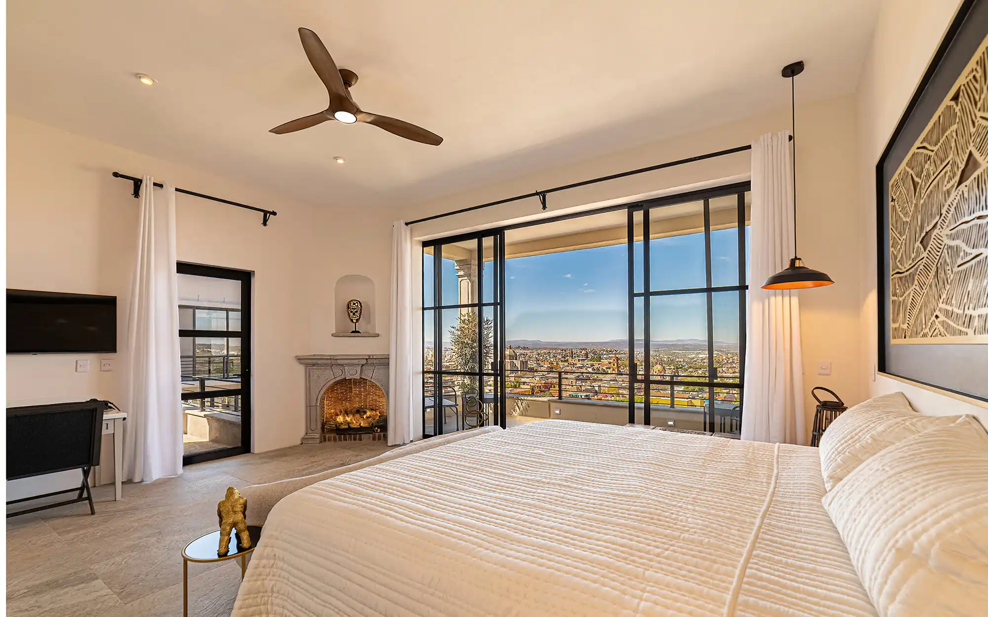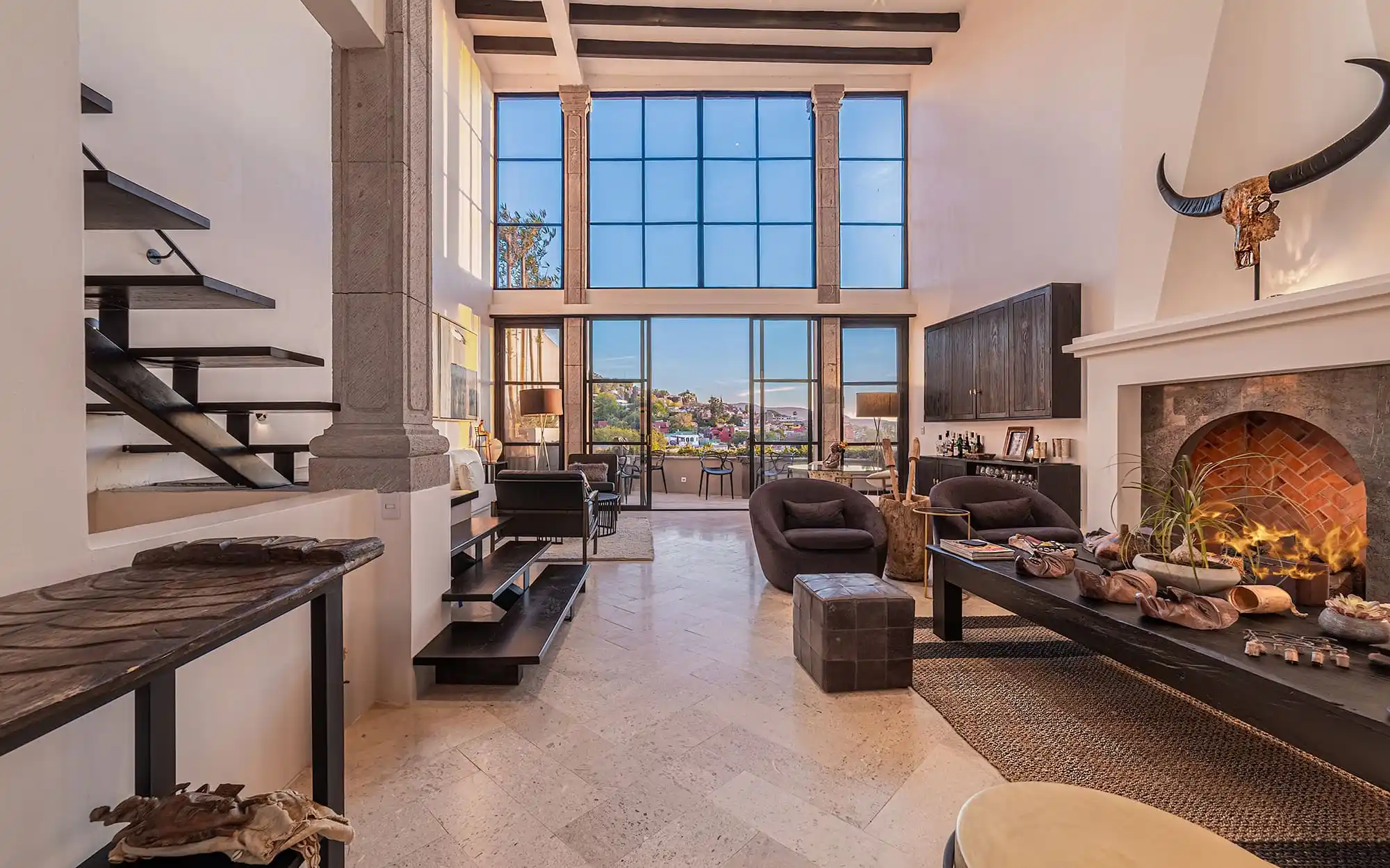 Imagine city-wide vistas of the entire city of San Miguel de Allende from your own Xanadu-like resort setting, all within walking distance of the Jardin, our town square—that’s Casa Celestial! If you like the concept of living on Cloud Nine—with the views to match—this is the estate you need to see with me tomorrow! Casa Celestial boasts an abundance of resort-like amenities: heated LED-lit pool with wall-fountain waterscaping; covered outdoor family room—living, dining, game/TV area—with adjacent butler’s kitchen; city-wide vistas from eight different terraces, one being the tallest in the entire neighborhood; two elevators servicing garage to roof terrace; beamed-ceiling double-height living room with great-room layout; floor-to-ceiling windows in most bedrooms; mini-splits in every bedroom; and upgraded hotel-quality furnishing throughout, inclusive. Three of the six bedrooms can easily serve as primary bedrooms—some with a wine fridge and an outdoor jacuzzi boasting city-wide sunset views—and the main bedroom is accessed via a glass elevator, adjacent to the marble dual-sink bathroom with a sculptural tub and separate shower. All rooms—even the kitchen—boast sliding or accordion doors maximizing the home’s indoor-outdoor lifestyle. And the roof terrace is unsurpassed for protected city-wide views three-stories above the neighboring home—the BASE jumper in your family could wingsuit from the roof to the Jardin in seconds! Naturally, Casa Celestial boasts all the technical and mechanical amenities expected from this demographic: commercial-grade glass elevators; full house filtration accompanied by reverse osmosis in the kitchen; automatic pool filtering with a sand capture system; electric-door garage; mini-splits throughout…the list is extensive, we’ll point them out on tour! Come join me for your own Walk in the Clouds—I’ll substitute for Keanu—and we’ll enjoy that Napa Cabernet on the roof terrace at sunset, butterfly wings are optional. You won’t want to leave until midnight…or until closing!