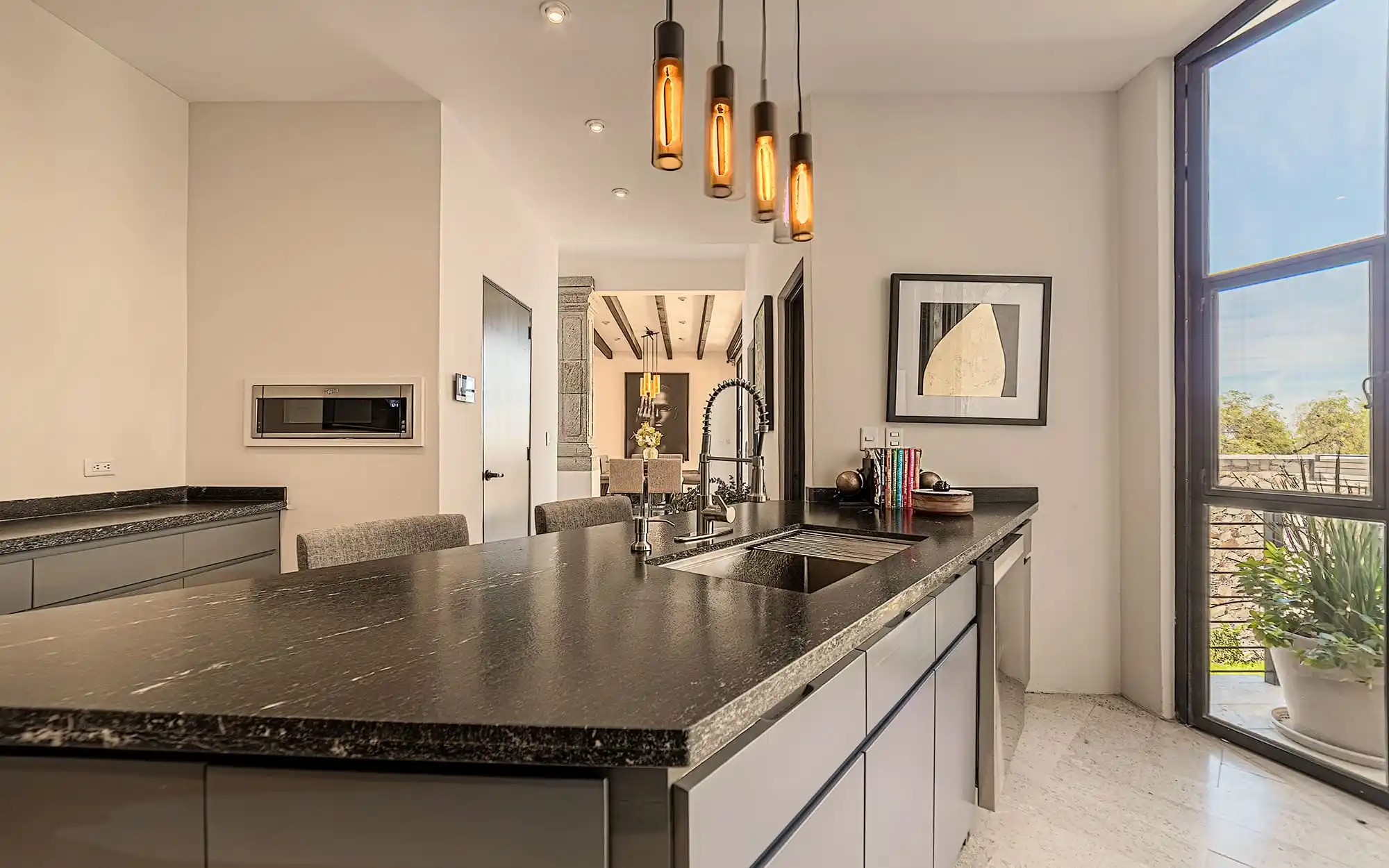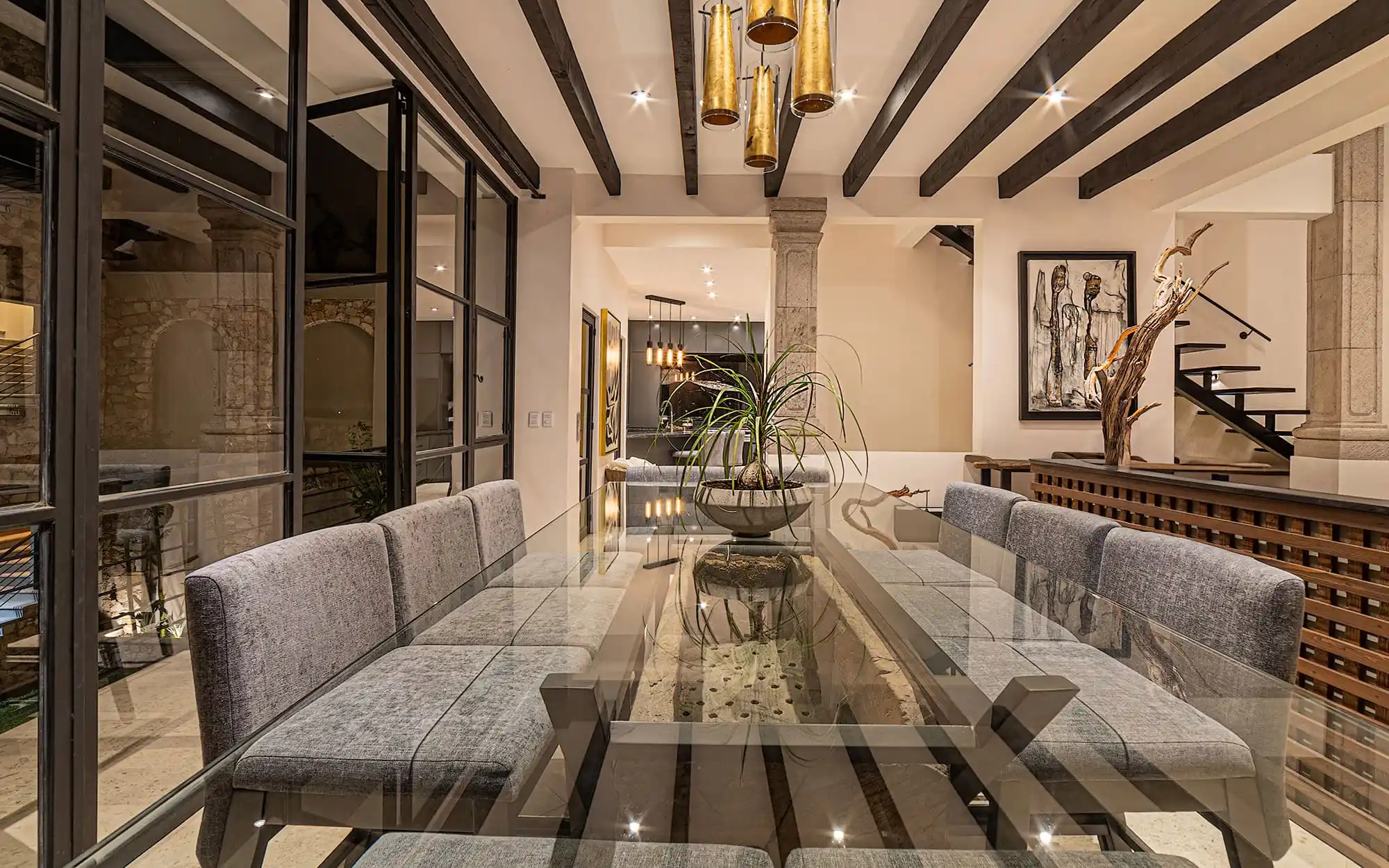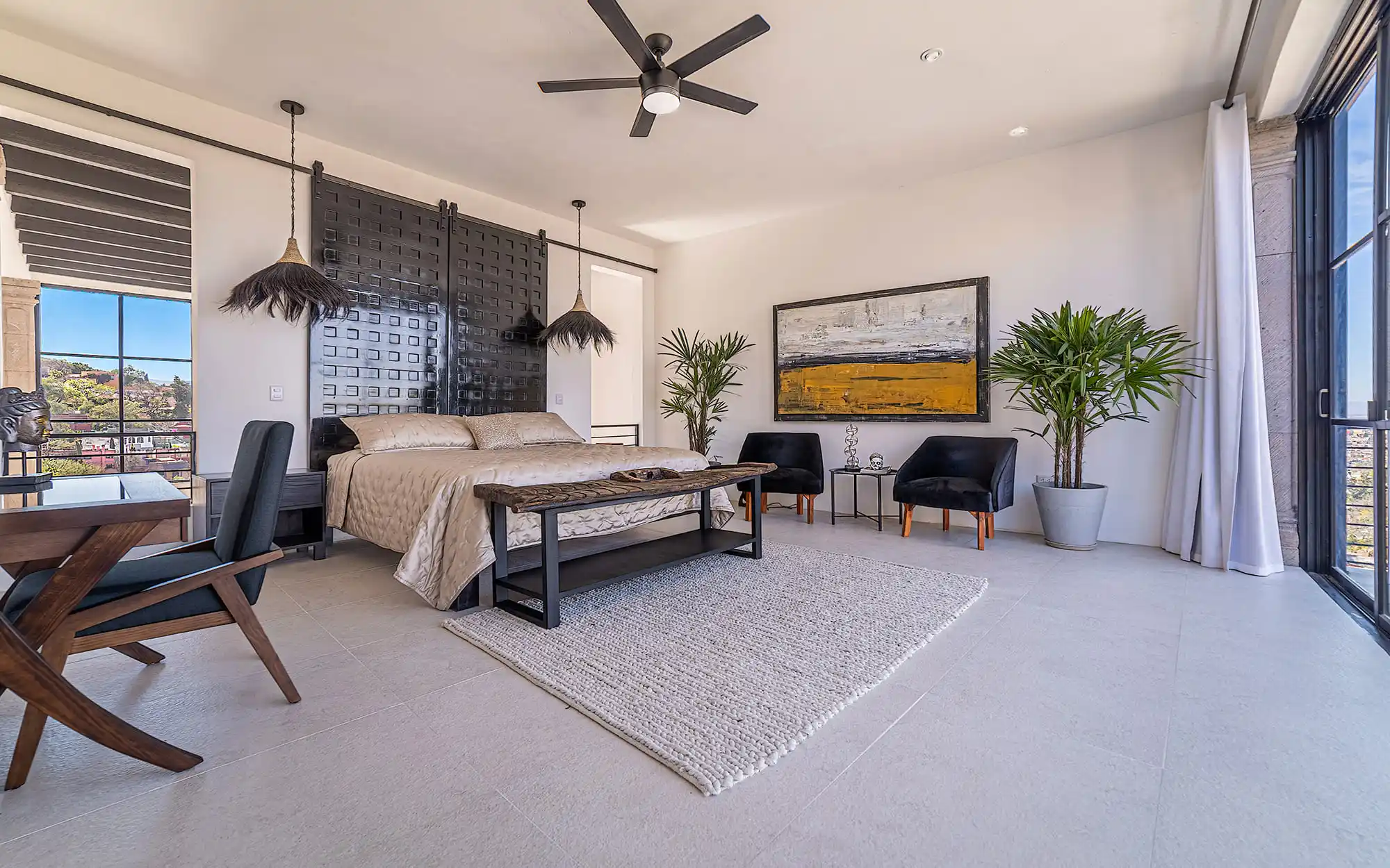 Imagine city-wide vistas of the entire city of San Miguel de Allende from your own Xanadu-like resort setting, all within walking distance of the Jardin, our town square—that’s Casa Celestial! If you like the concept of living on Cloud Nine—with the views to match—this is the estate you need to see with me tomorrow! Casa Celestial boasts an abundance of resort-like amenities: heated LED-lit pool with wall-fountain waterscaping; covered outdoor family room—living, dining, game/TV area—with adjacent butler’s kitchen; city-wide vistas from eight different terraces, one being the tallest in the entire neighborhood; two elevators servicing garage to roof terrace; beamed-ceiling double-height living room with great-room layout; floor-to-ceiling windows in most bedrooms; mini-splits in every bedroom; and upgraded hotel-quality furnishing throughout, inclusive. Three of the six bedrooms can easily serve as primary bedrooms—some with a wine fridge and an outdoor jacuzzi boasting city-wide sunset views—and the main bedroom is accessed via a glass elevator, adjacent to the marble dual-sink bathroom with a sculptural tub and separate shower. All rooms—even the kitchen—boast sliding or accordion doors maximizing the home’s indoor-outdoor lifestyle. And the roof terrace is unsurpassed for protected city-wide views three-stories above the neighboring home—the BASE jumper in your family could wingsuit from the roof to the Jardin in seconds! Naturally, Casa Celestial boasts all the technical and mechanical amenities expected from this demographic: commercial-grade glass elevators; full house filtration accompanied by reverse osmosis in the kitchen; automatic pool filtering with a sand capture system; electric-door garage; mini-splits throughout…the list is extensive, we’ll point them out on tour! Come join me for your own Walk in the Clouds—I’ll substitute for Keanu—and we’ll enjoy that Napa Cabernet on the roof terrace at sunset, butterfly wings are optional. You won’t want to leave until midnight…or until closing!