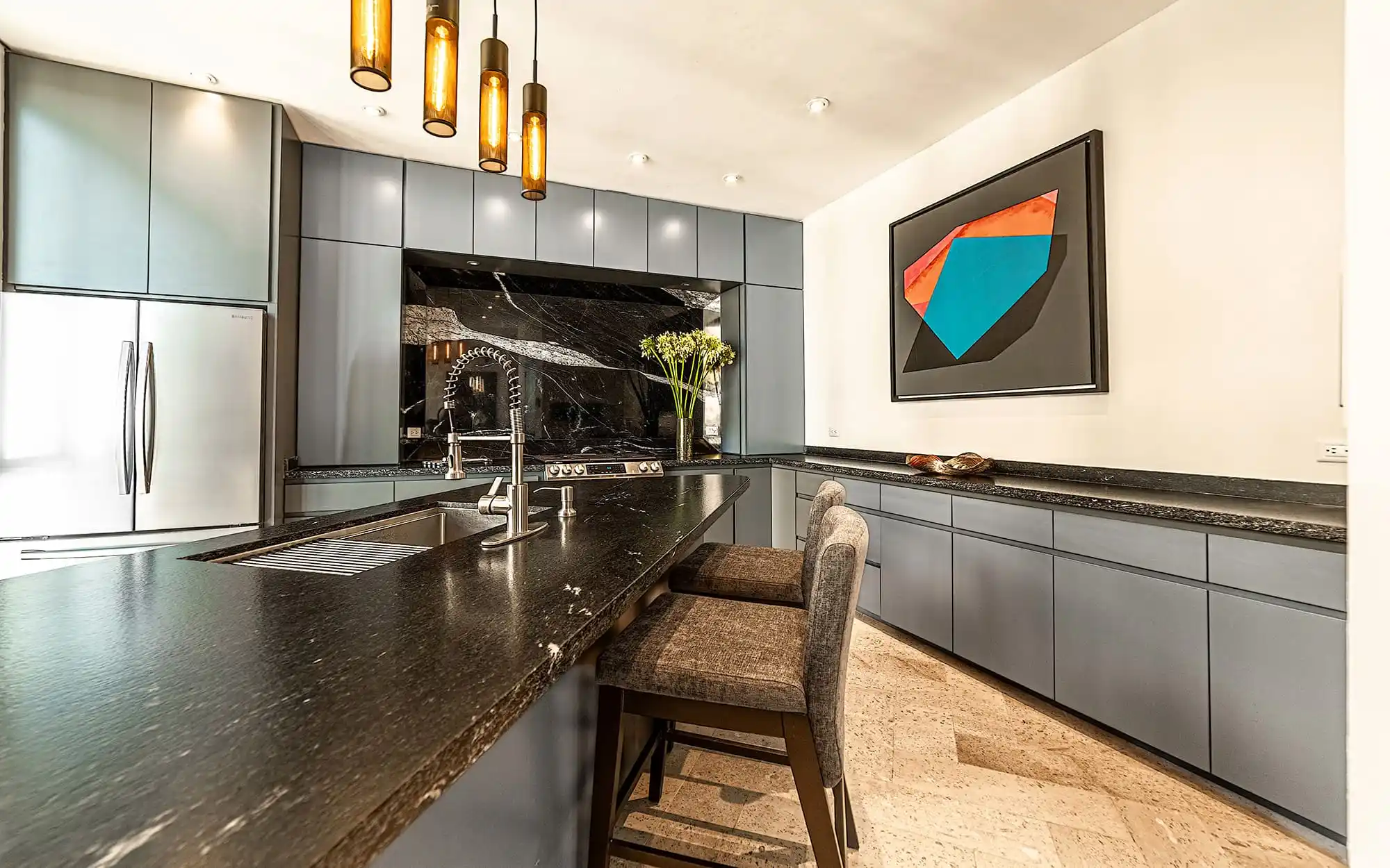 This luxurious condo in Beverly Hills is conveniently close to top-notch shops and eateries. It boasts an exclusive elevator accessible by keycard, opening directly into a spacious private foyer and the unit itself. This cutting-edge “smart” home features premium fittings and finishes, along with a 24-hour concierge service. Inside, you’ll find 3 bedrooms, 3.